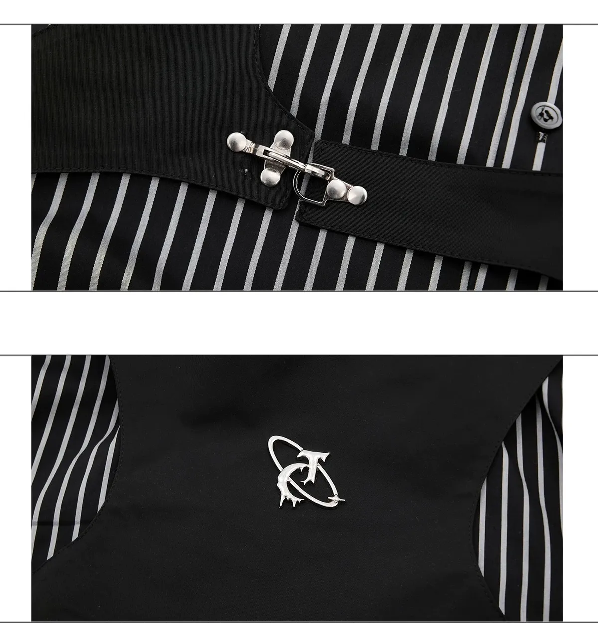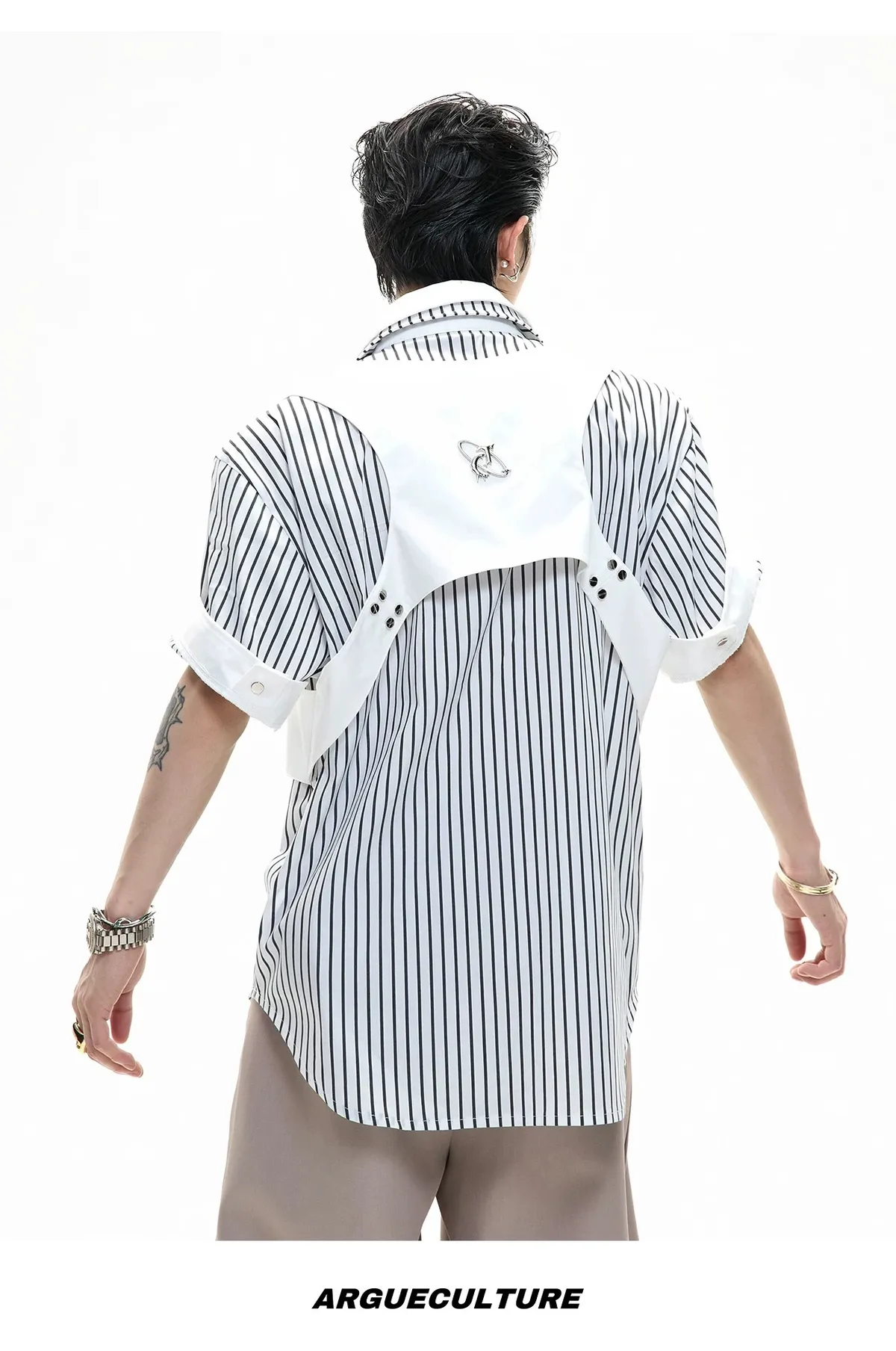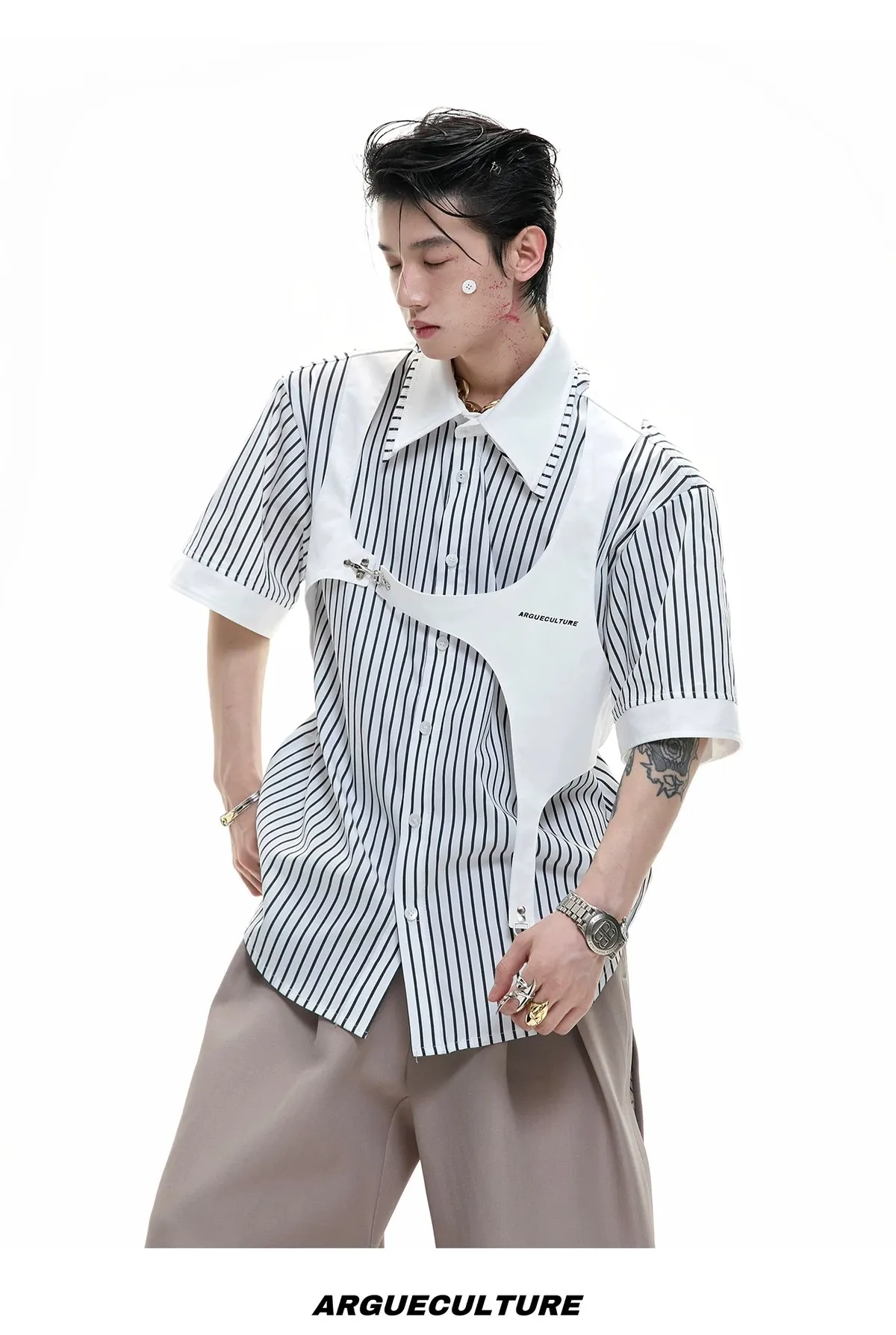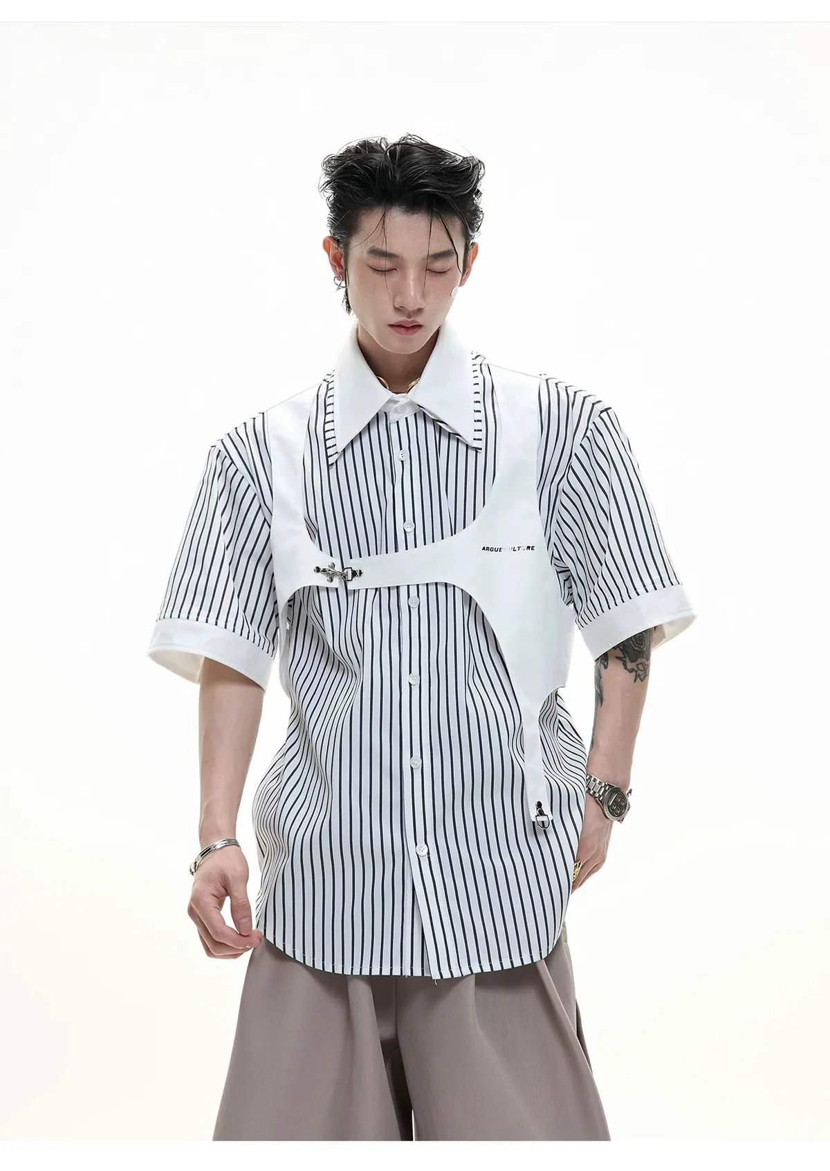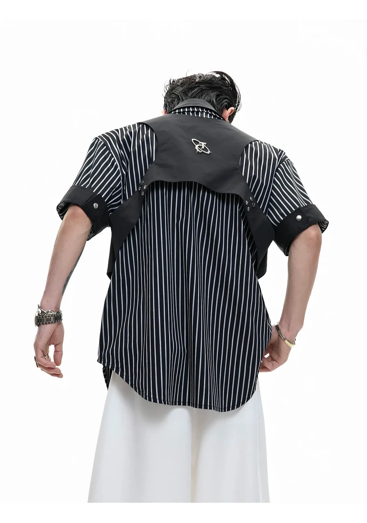 ARGUE 假兩件槍背帶 雙層條紋 襯衫(黑/白)