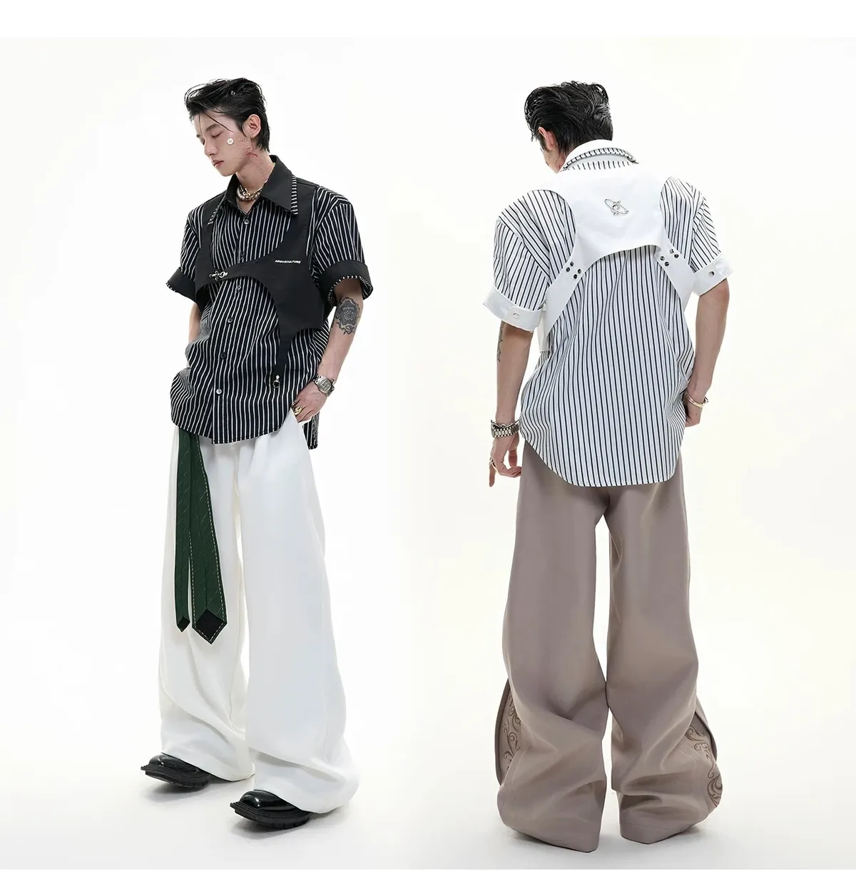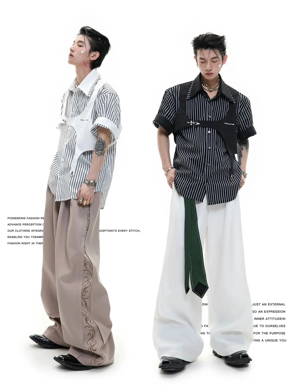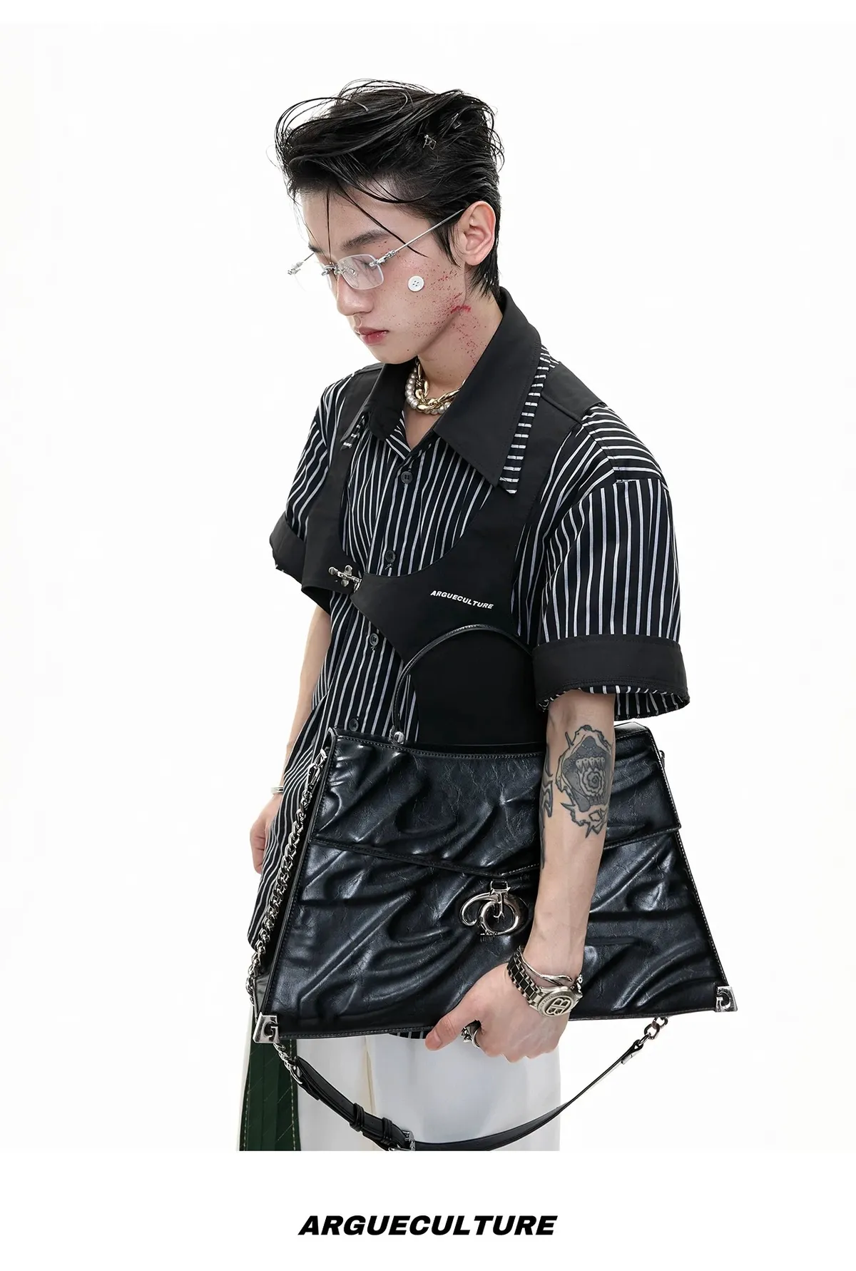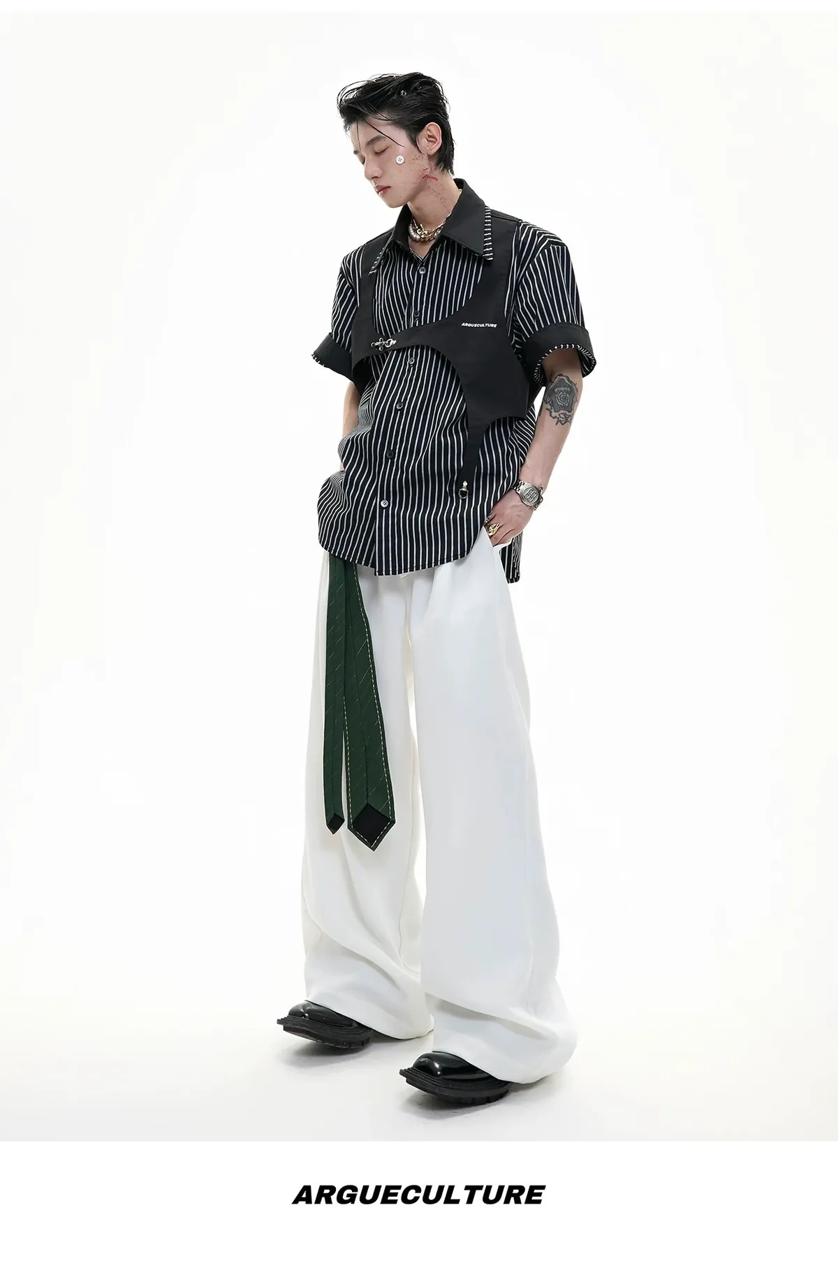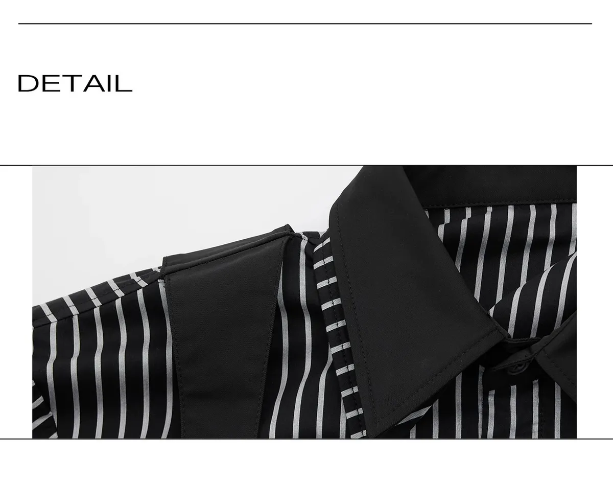 ARGUE 假兩件槍背帶 雙層條紋 襯衫(黑/白)
