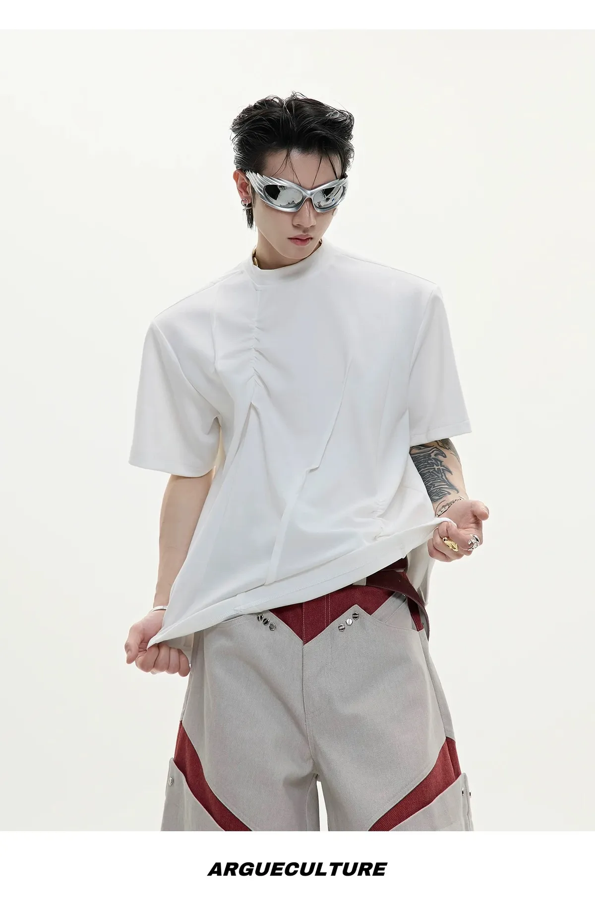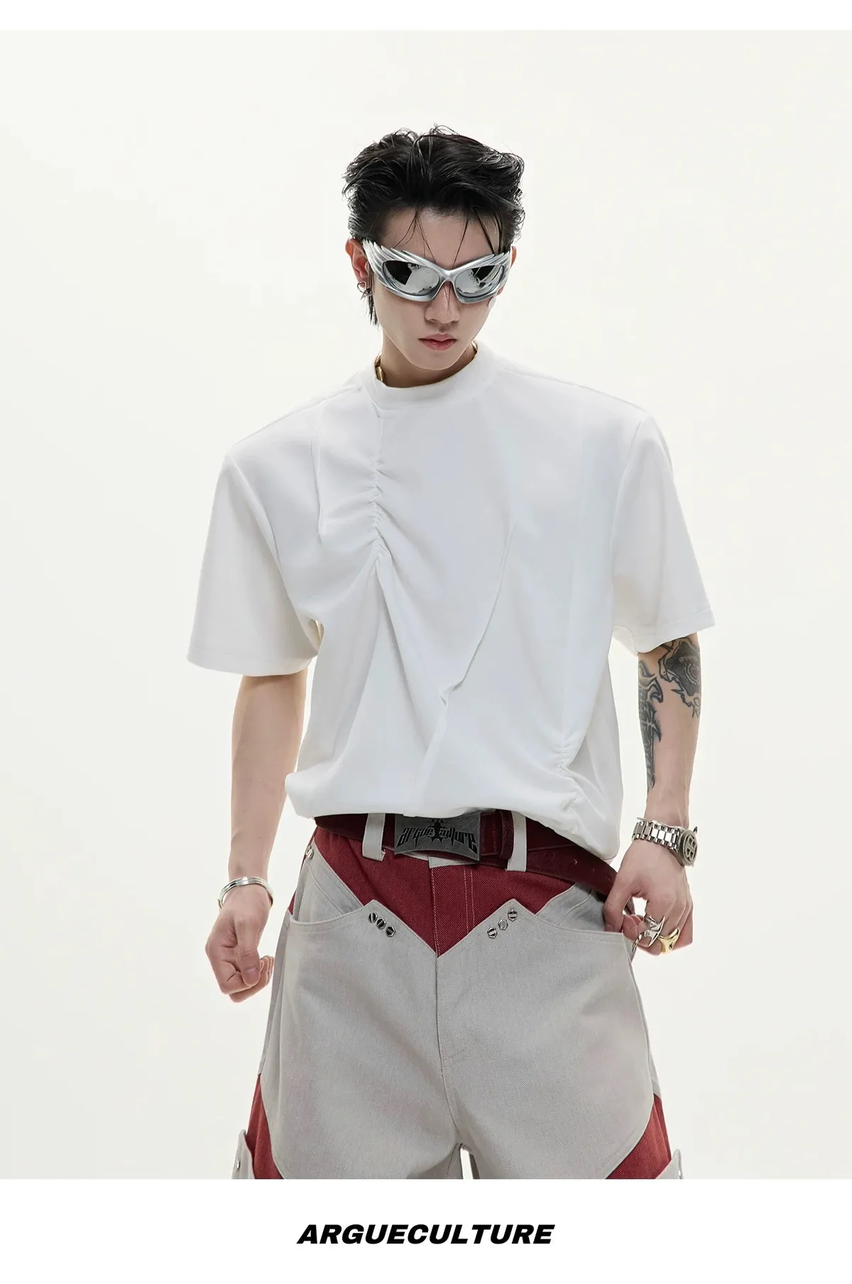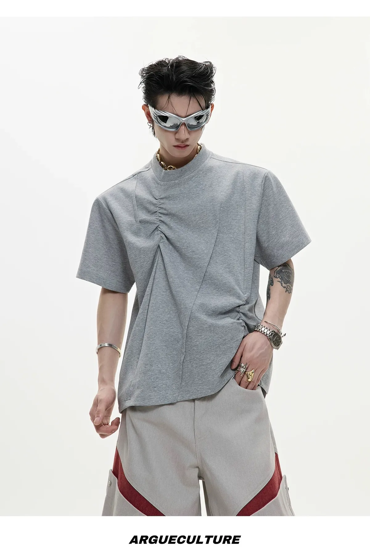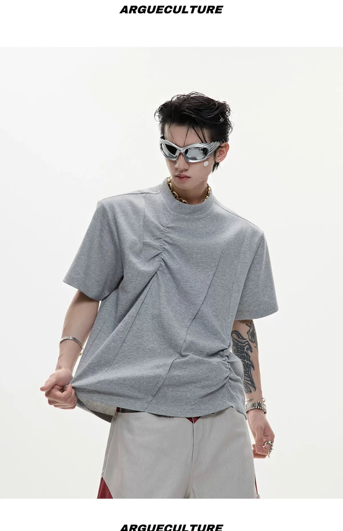 ARGUE 純色皺摺 透氣 短袖(黑/白/灰)
