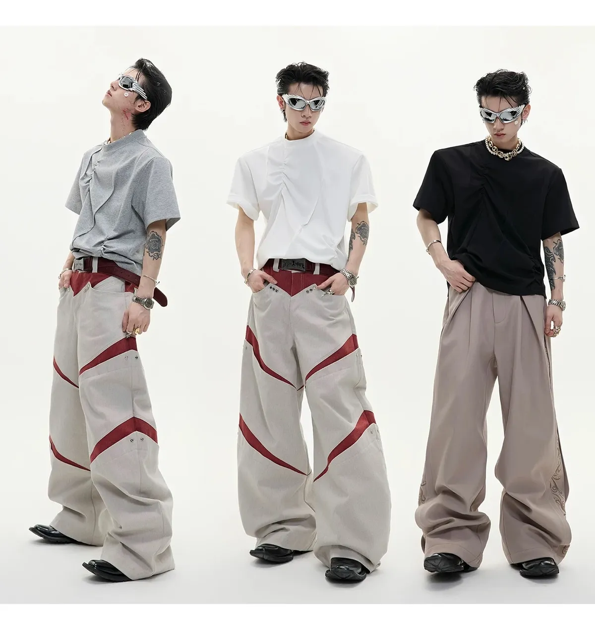 ARGUE 雙層褲頭 闊腿 西裝褲(黑/白)