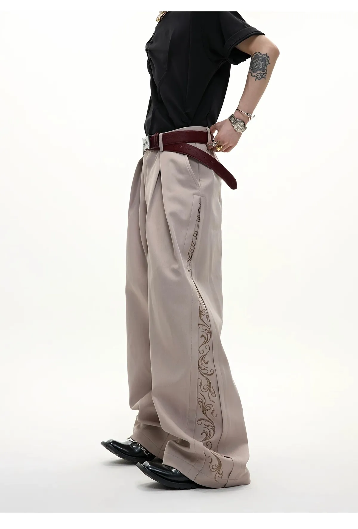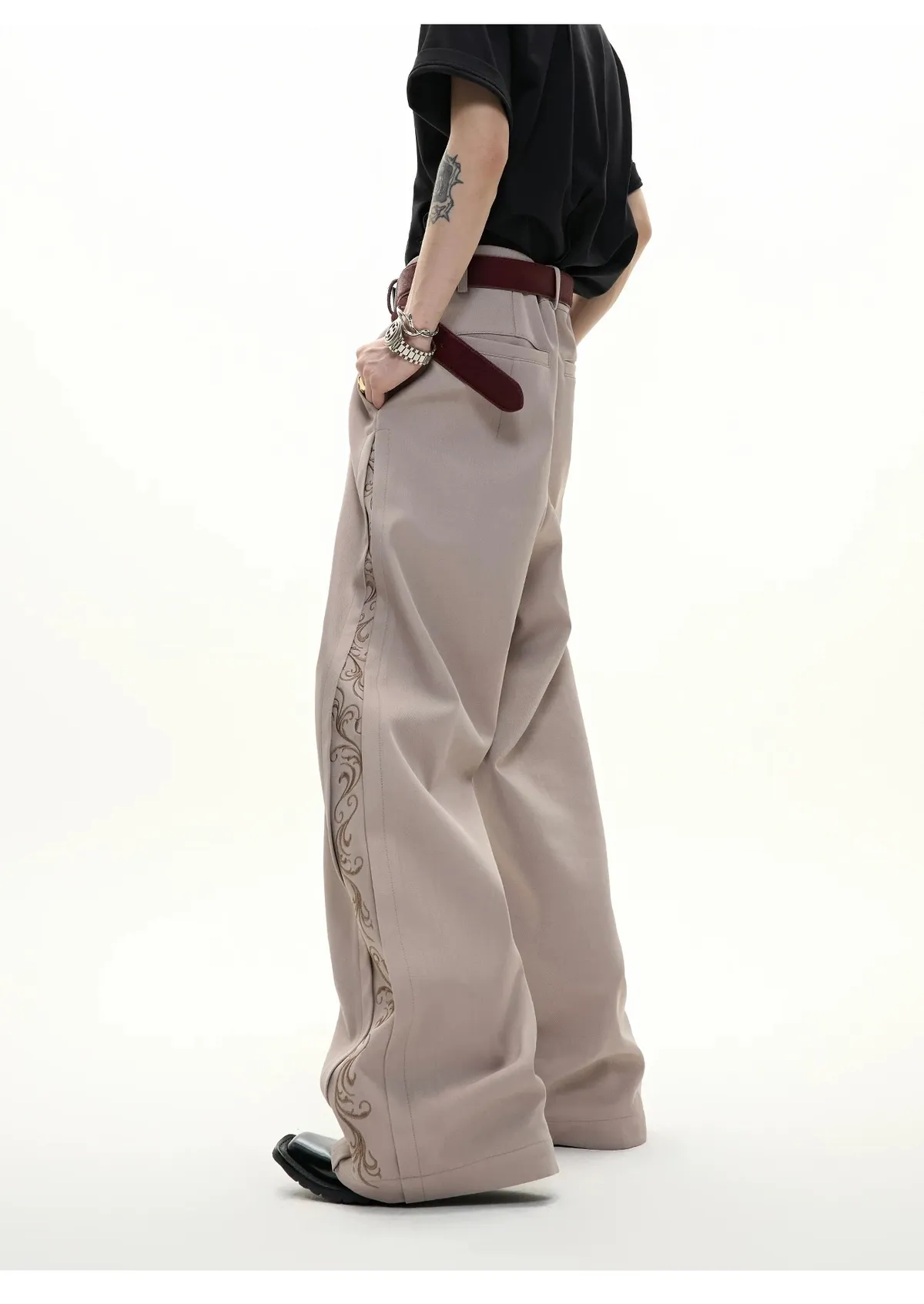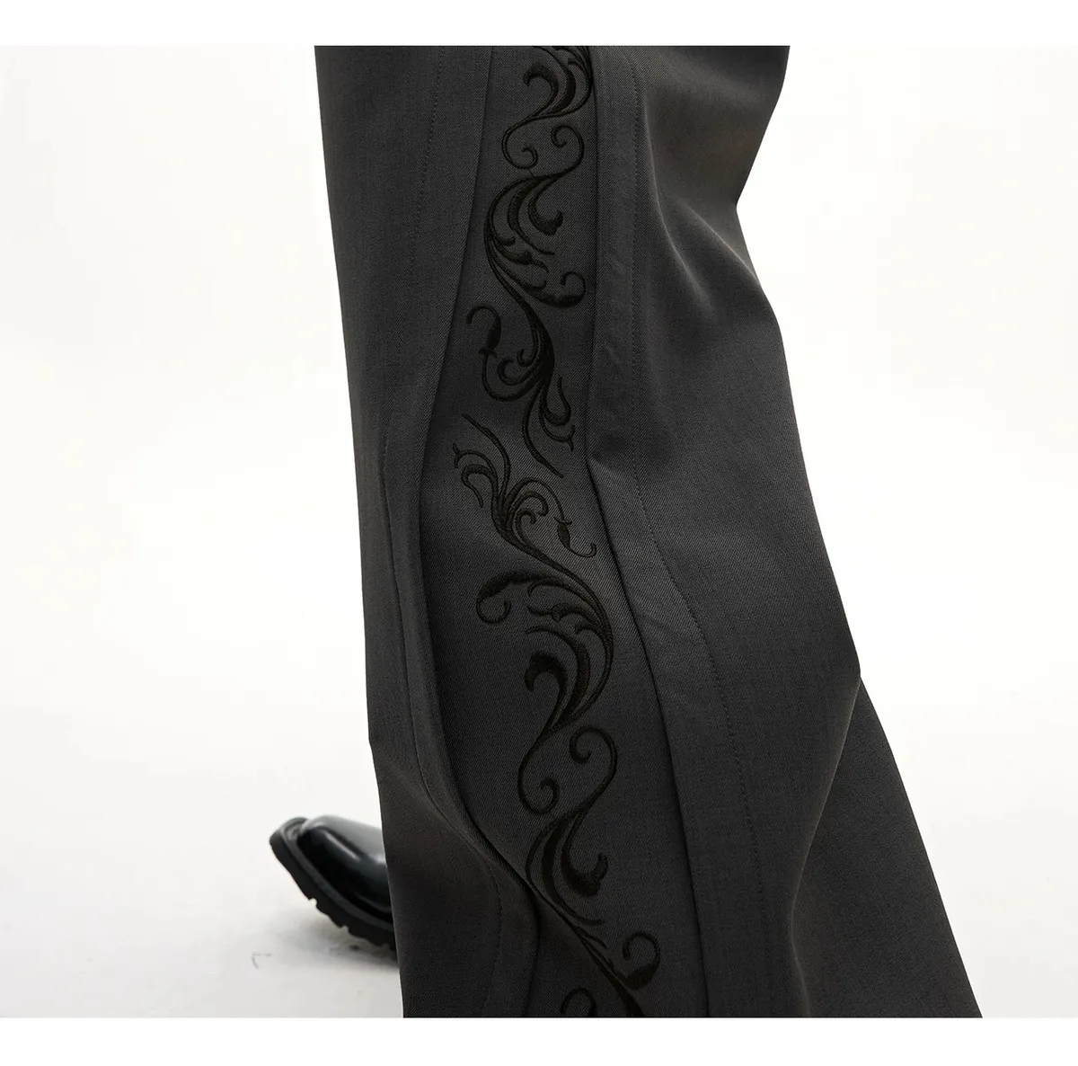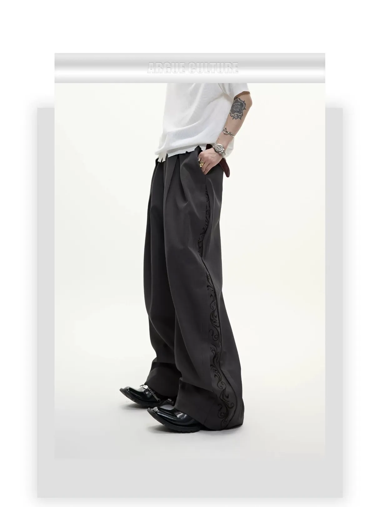 ARGUE 重磅剪裁 宮廷花紋刺繡 西裝褲(黑/暗灰/白/卡其)
