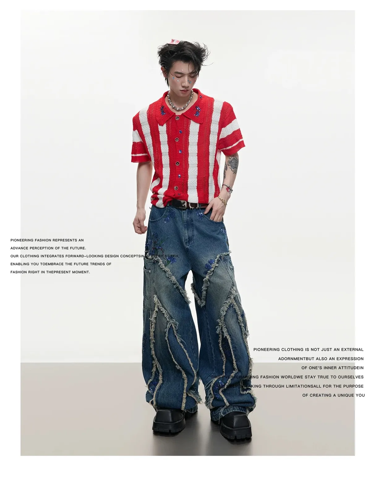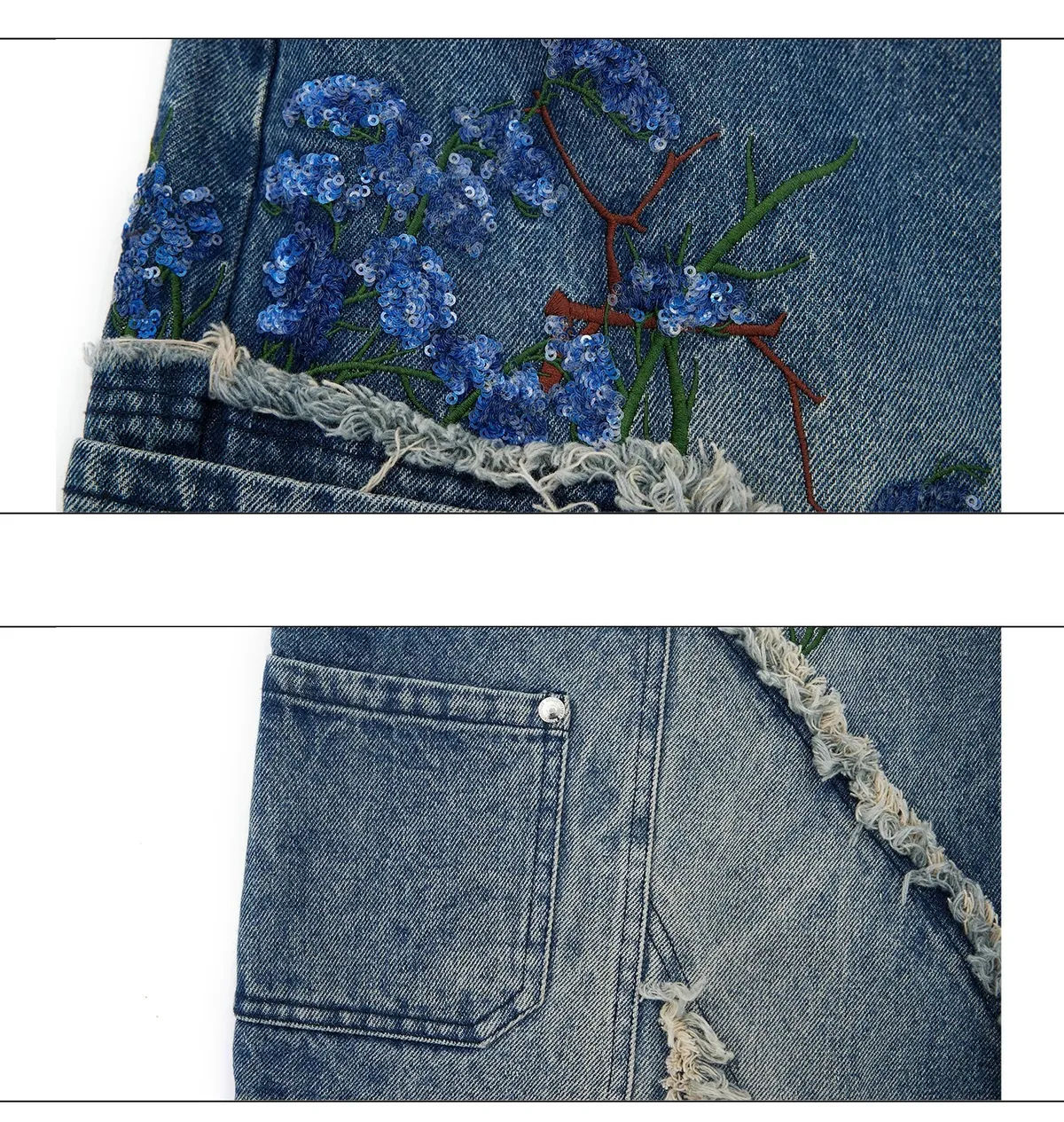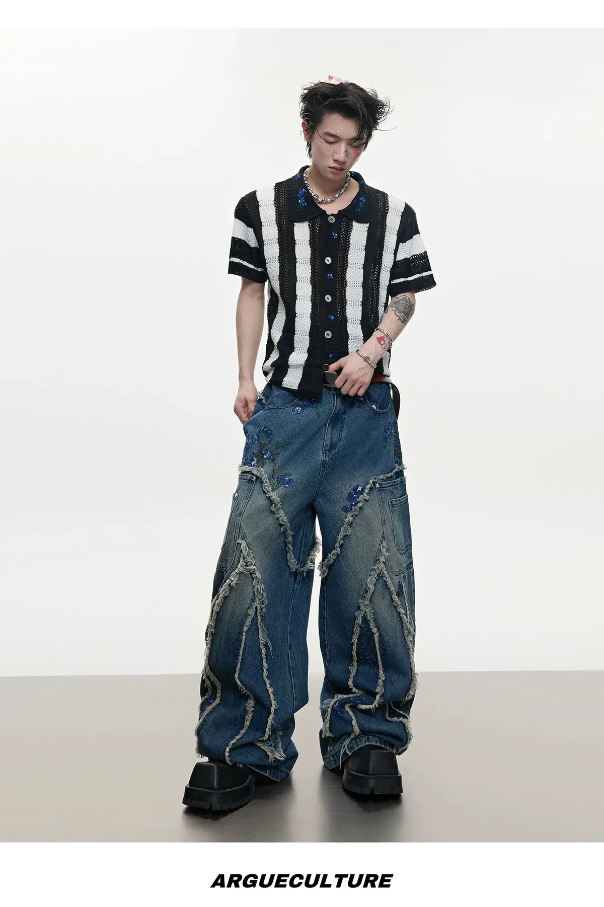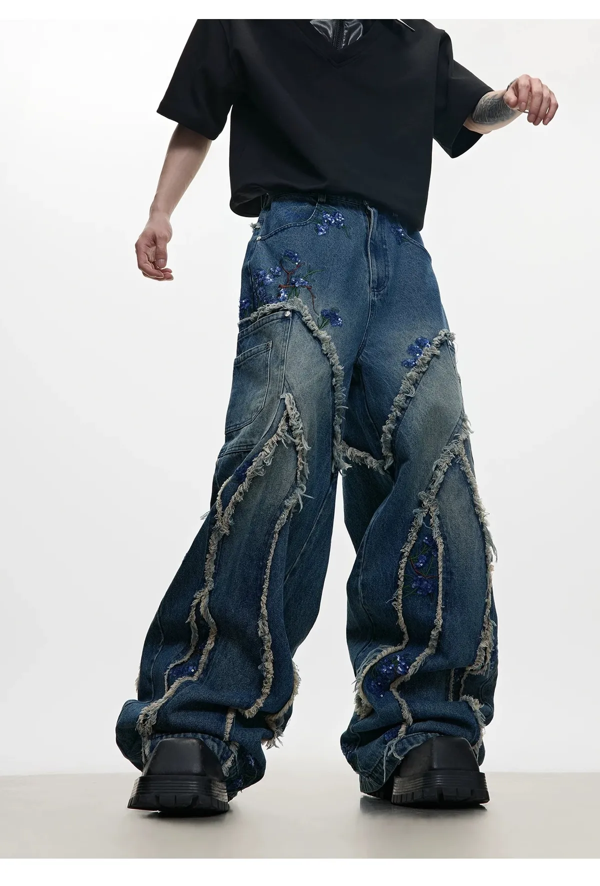 ARGUE 亮片刺繡 抽鬚 牛仔褲(藍色)