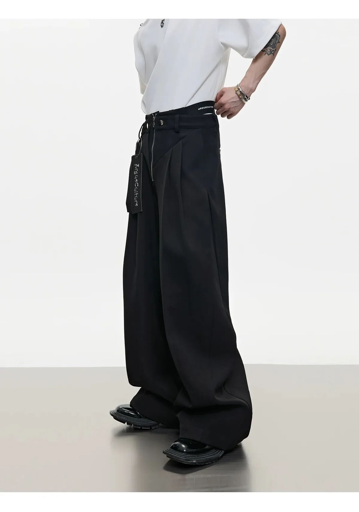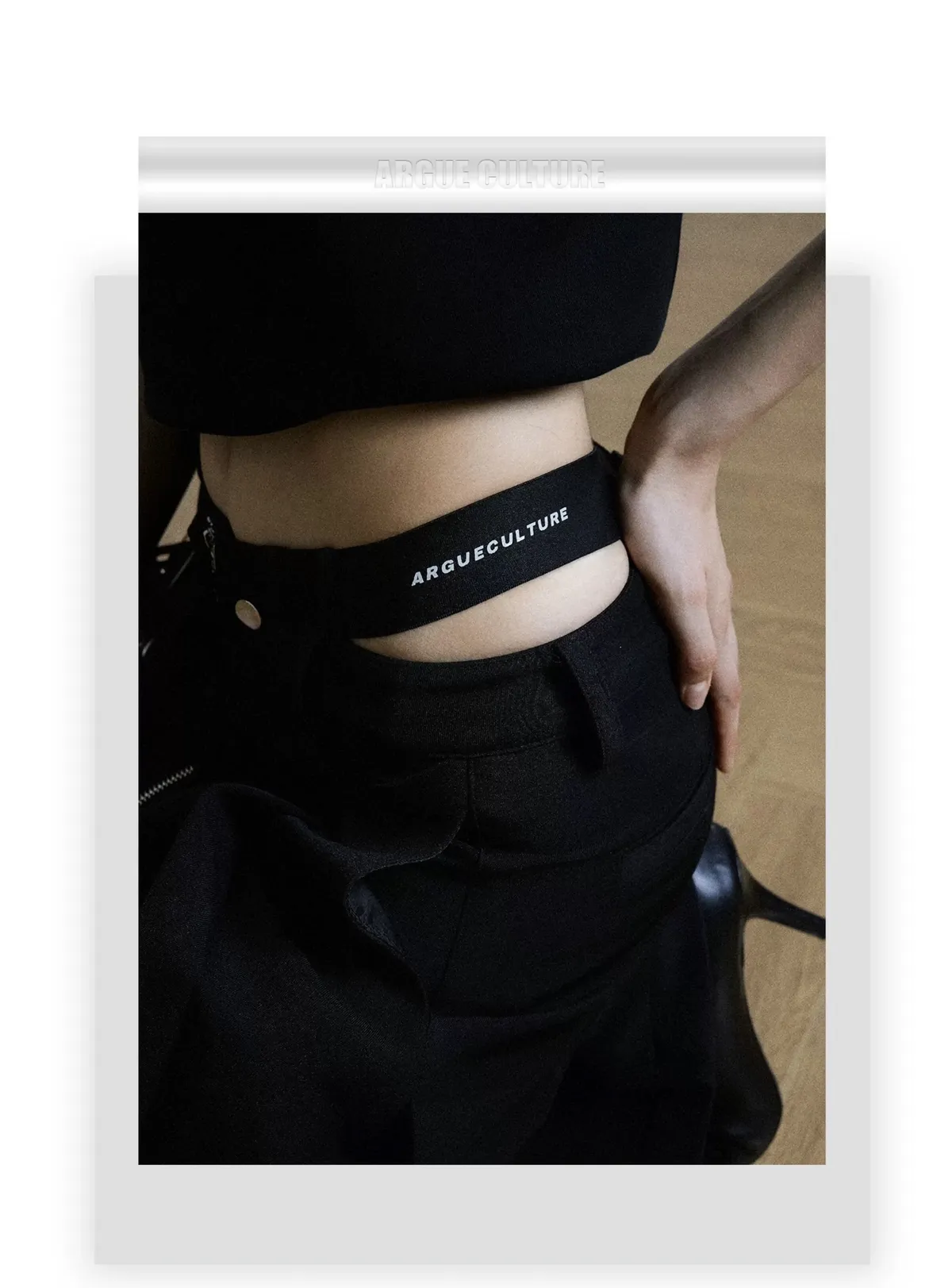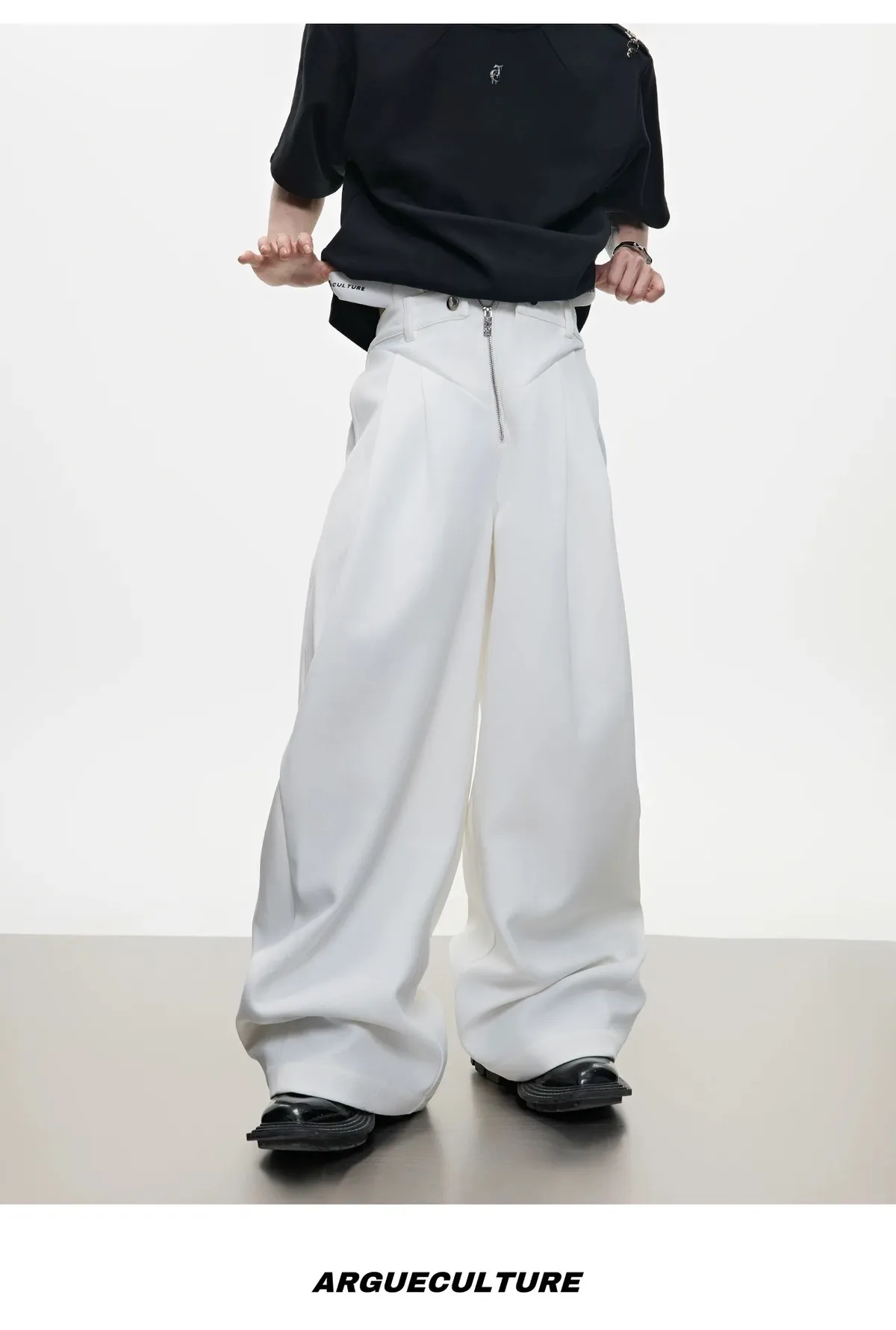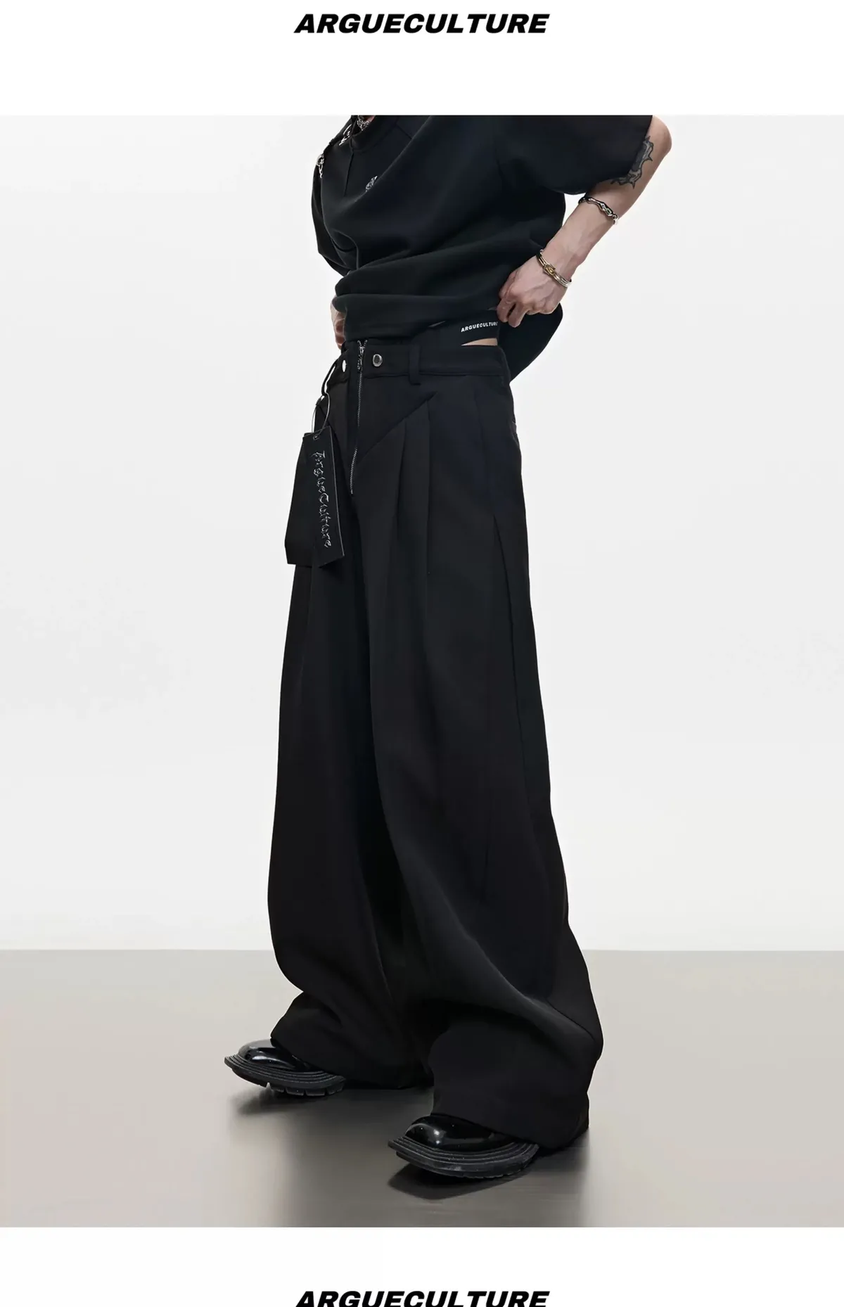 ARGUE 雙層褲頭 闊腿 西裝褲(黑/白)