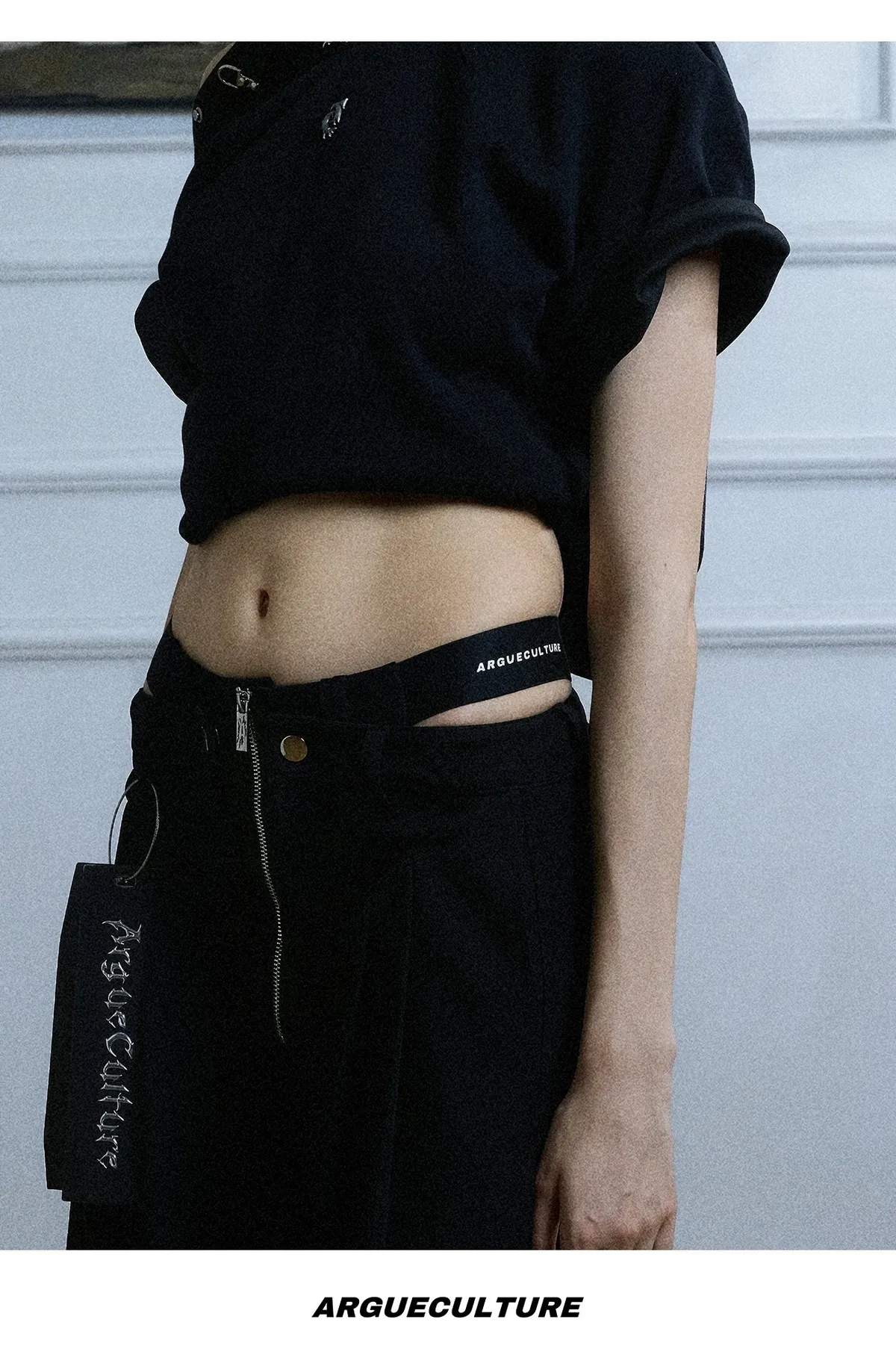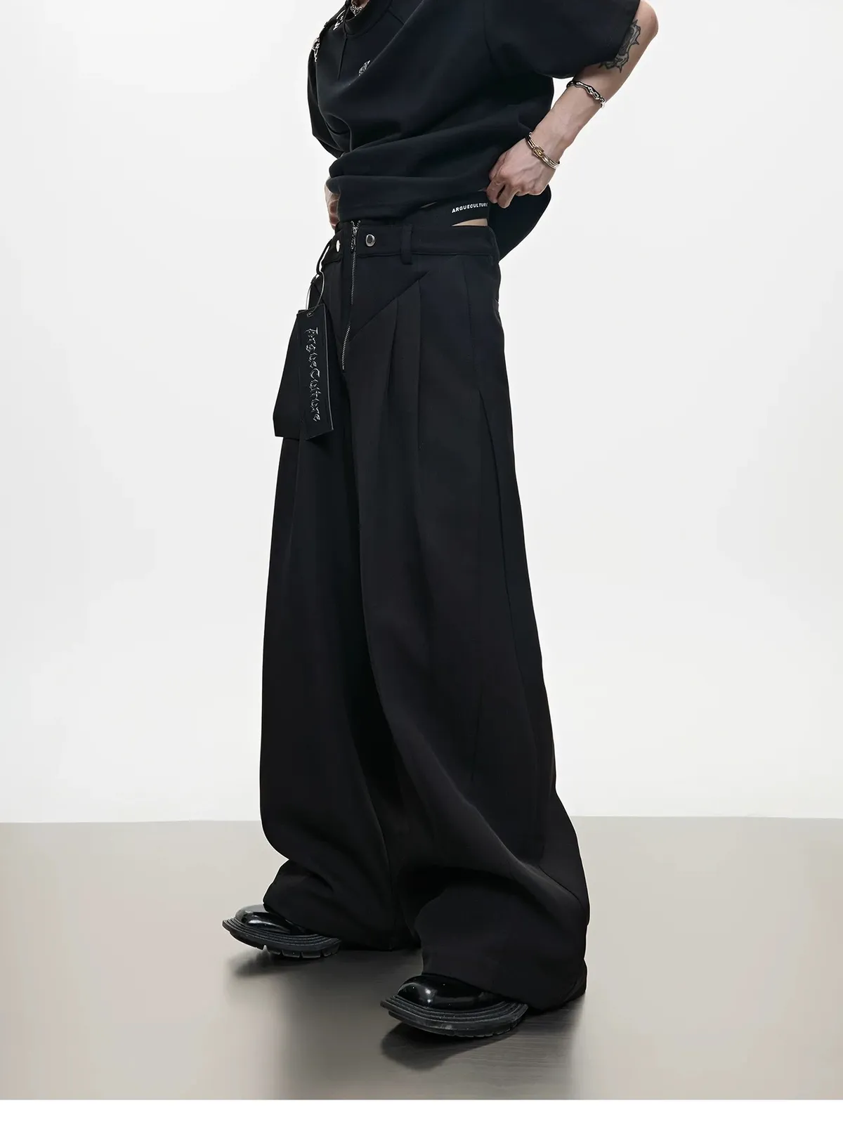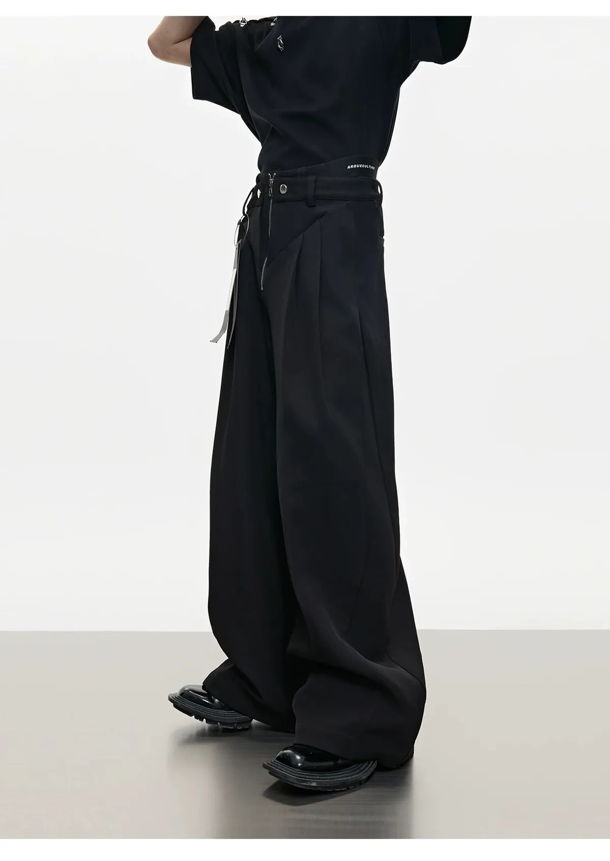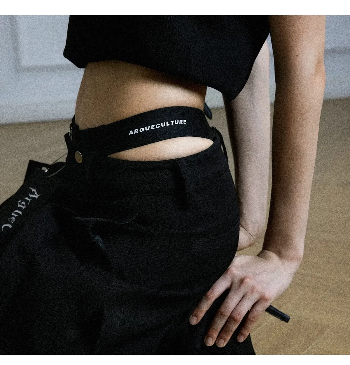 ARGUE 雙層褲頭 闊腿 西裝褲(黑/白)