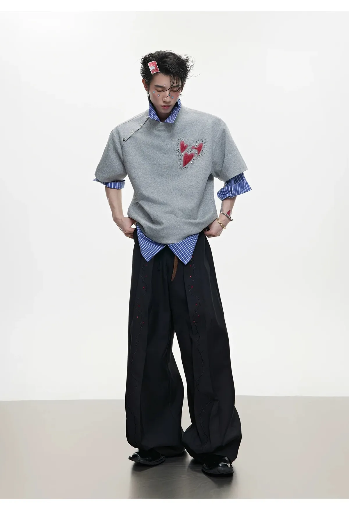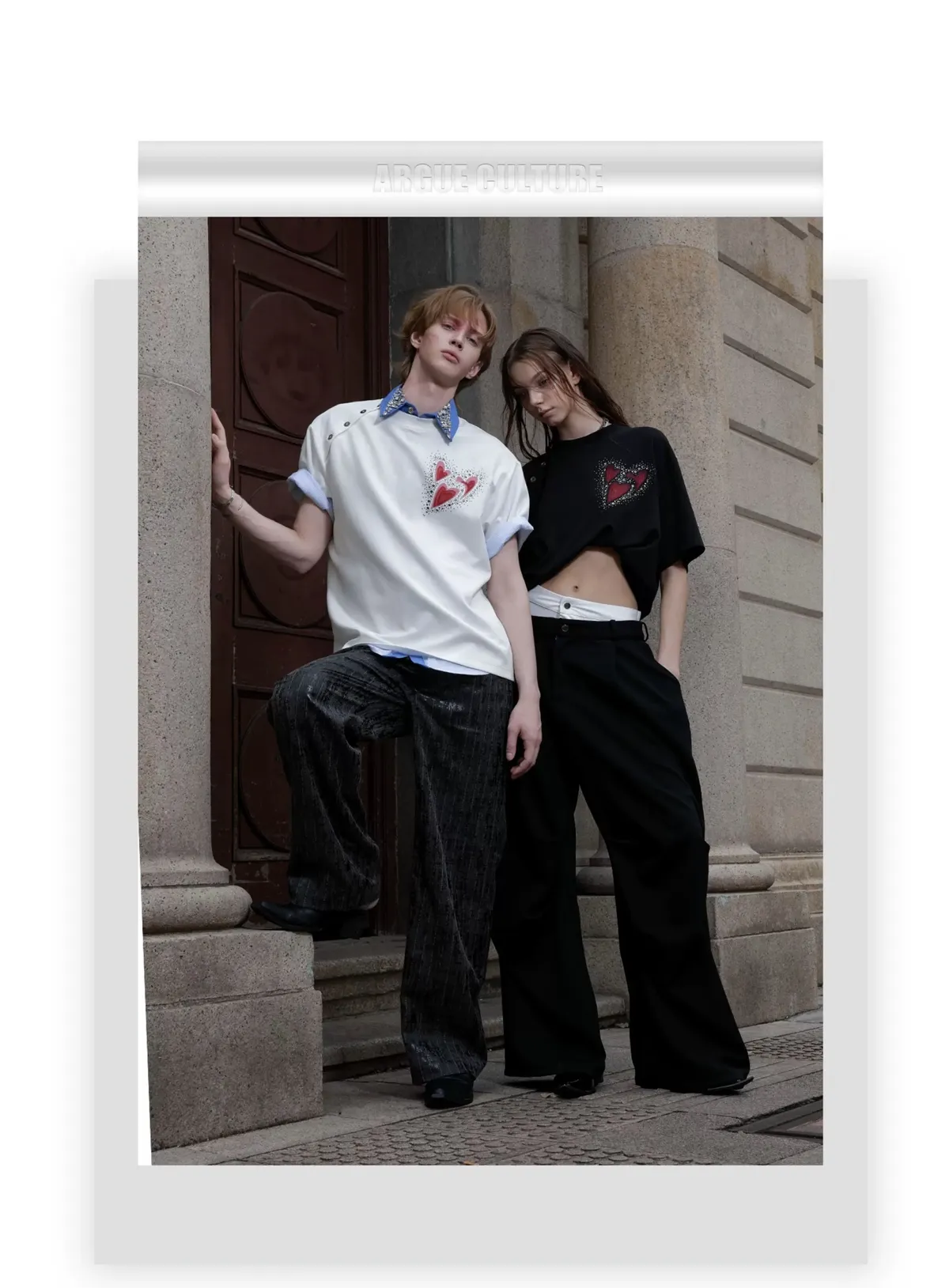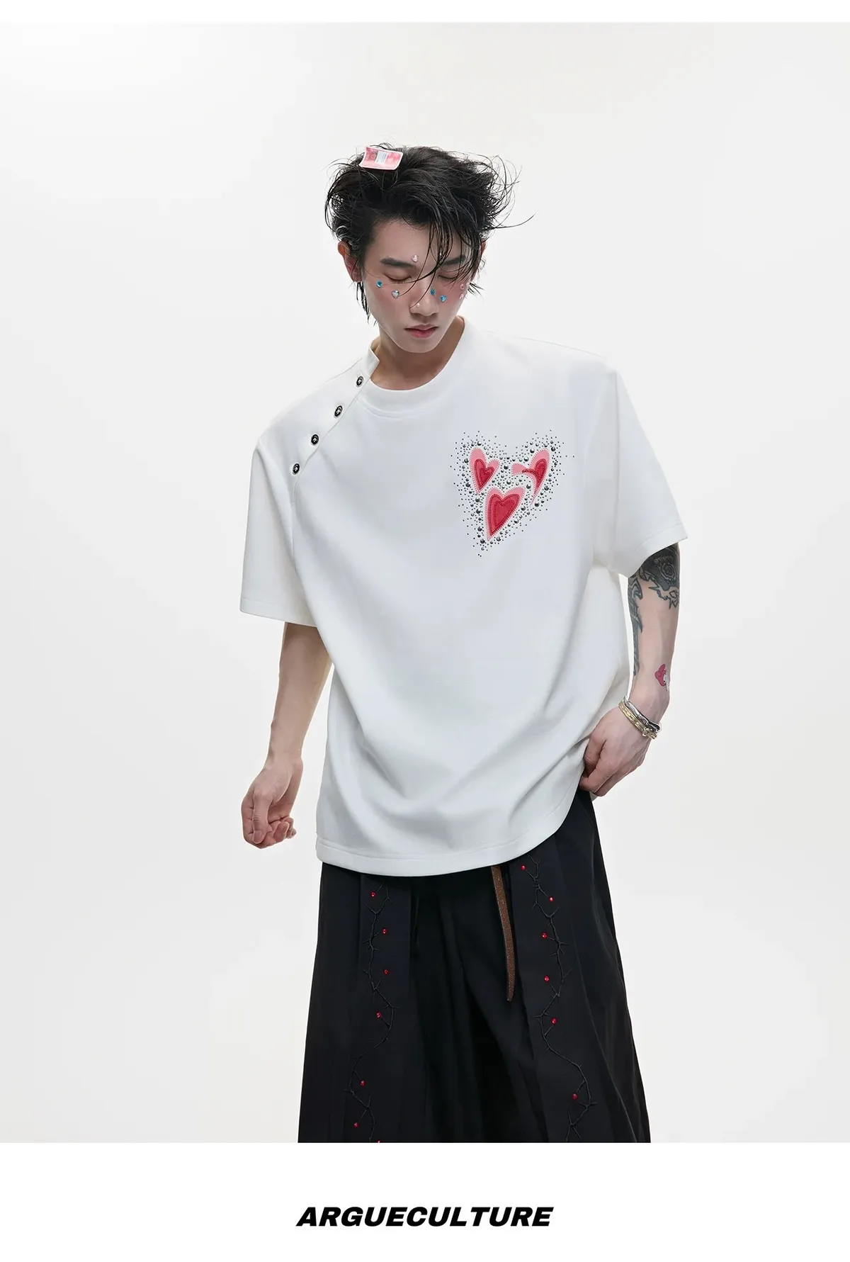 ARGUE 不規則領口 愛心 短袖(黑/白/灰)