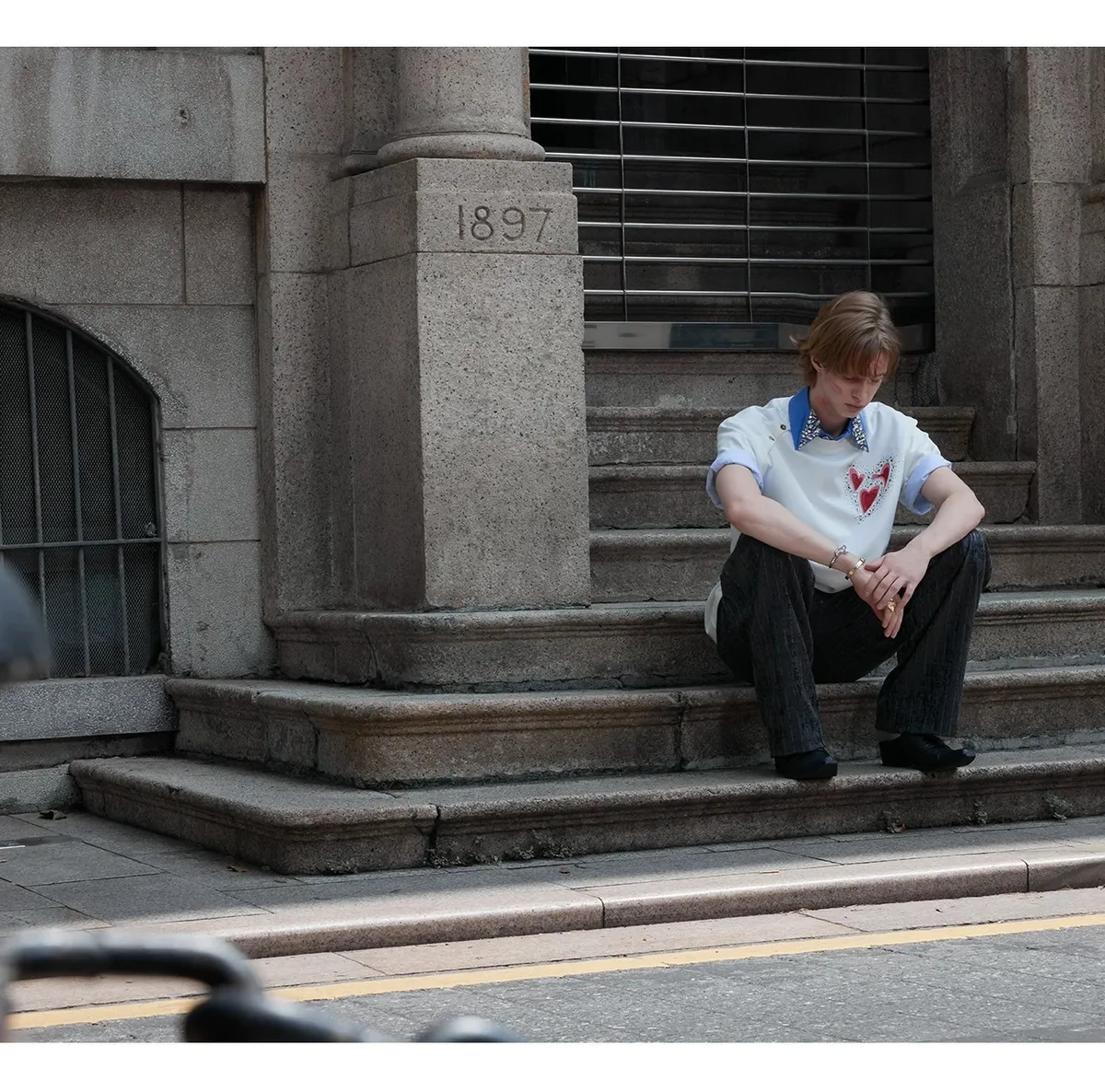 ARGUE 拼接燒花 金屬釘 設計感 短袖(白/黑)