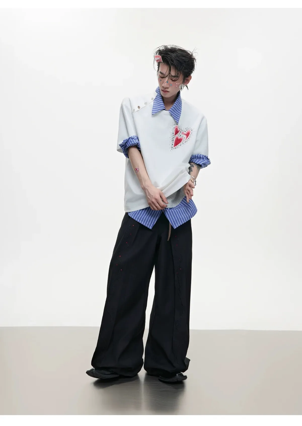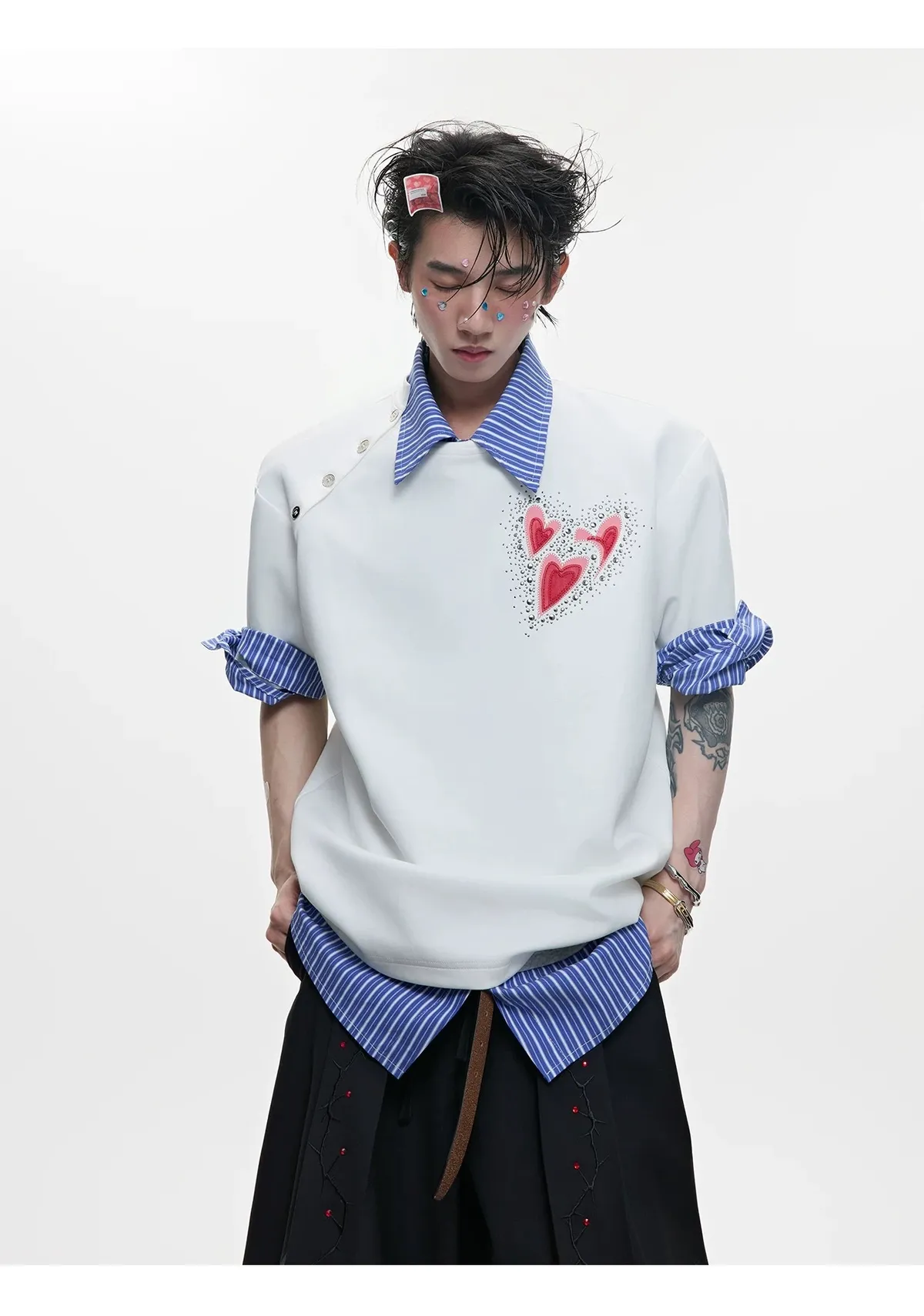 ARGUE 貴族感 假兩件拼接 襯衫短袖(黑/白/灰)
