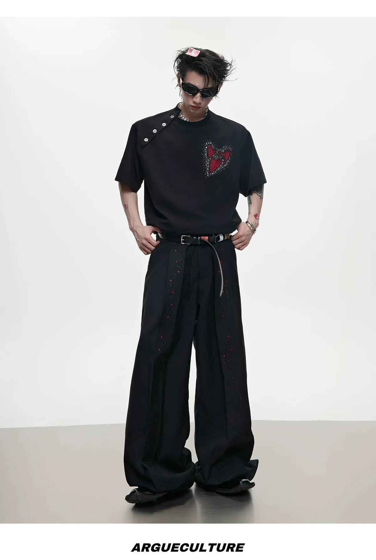 ARGUE 條紋卯釘 彎刀褲 西裝褲(黑/白)