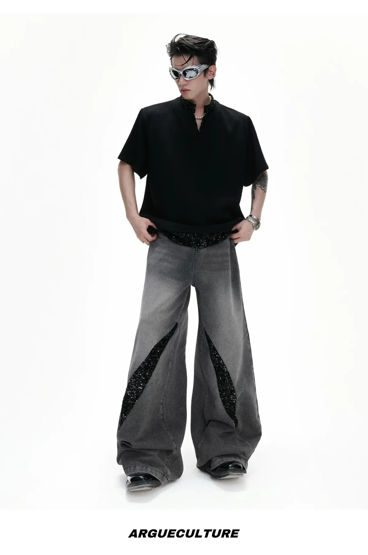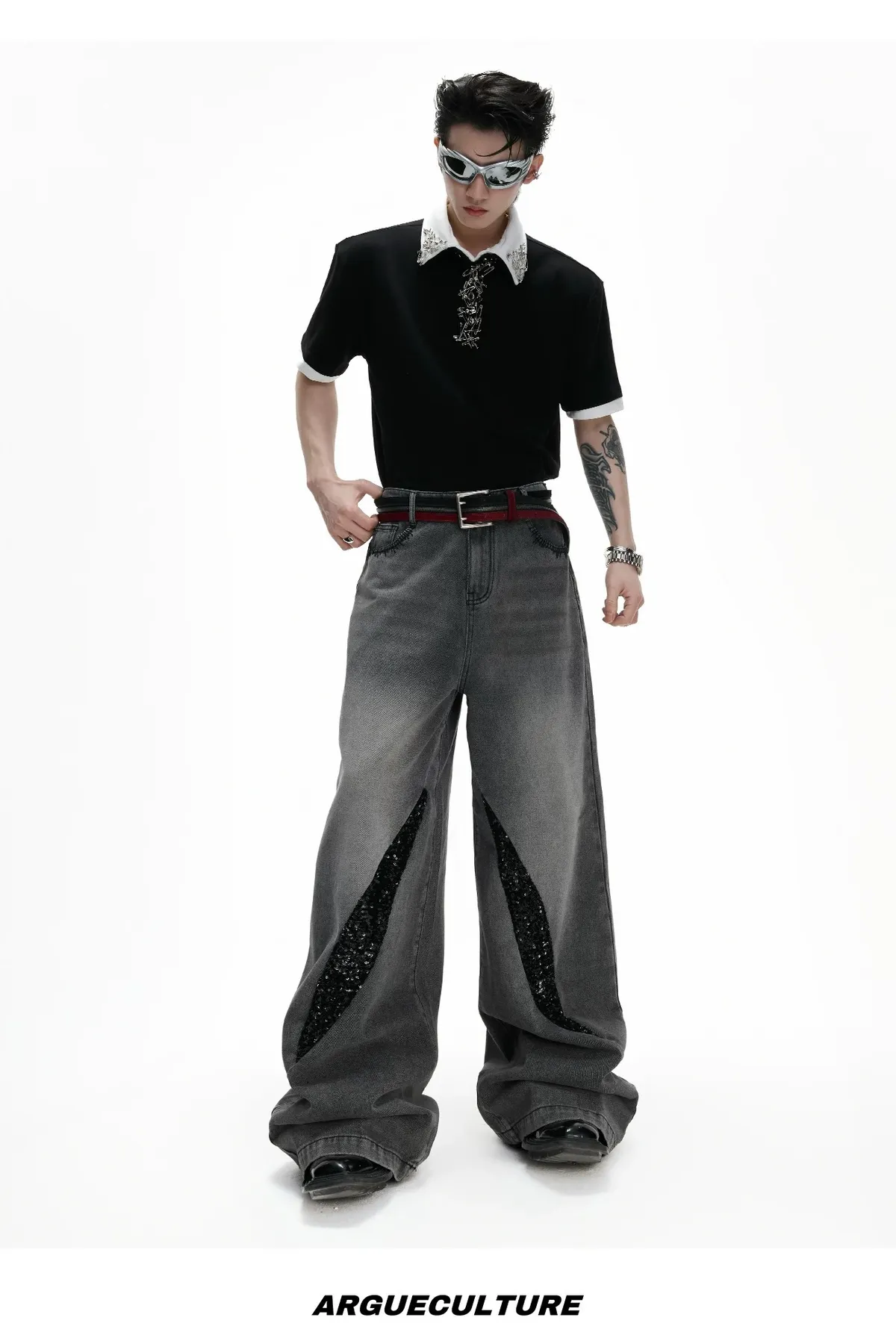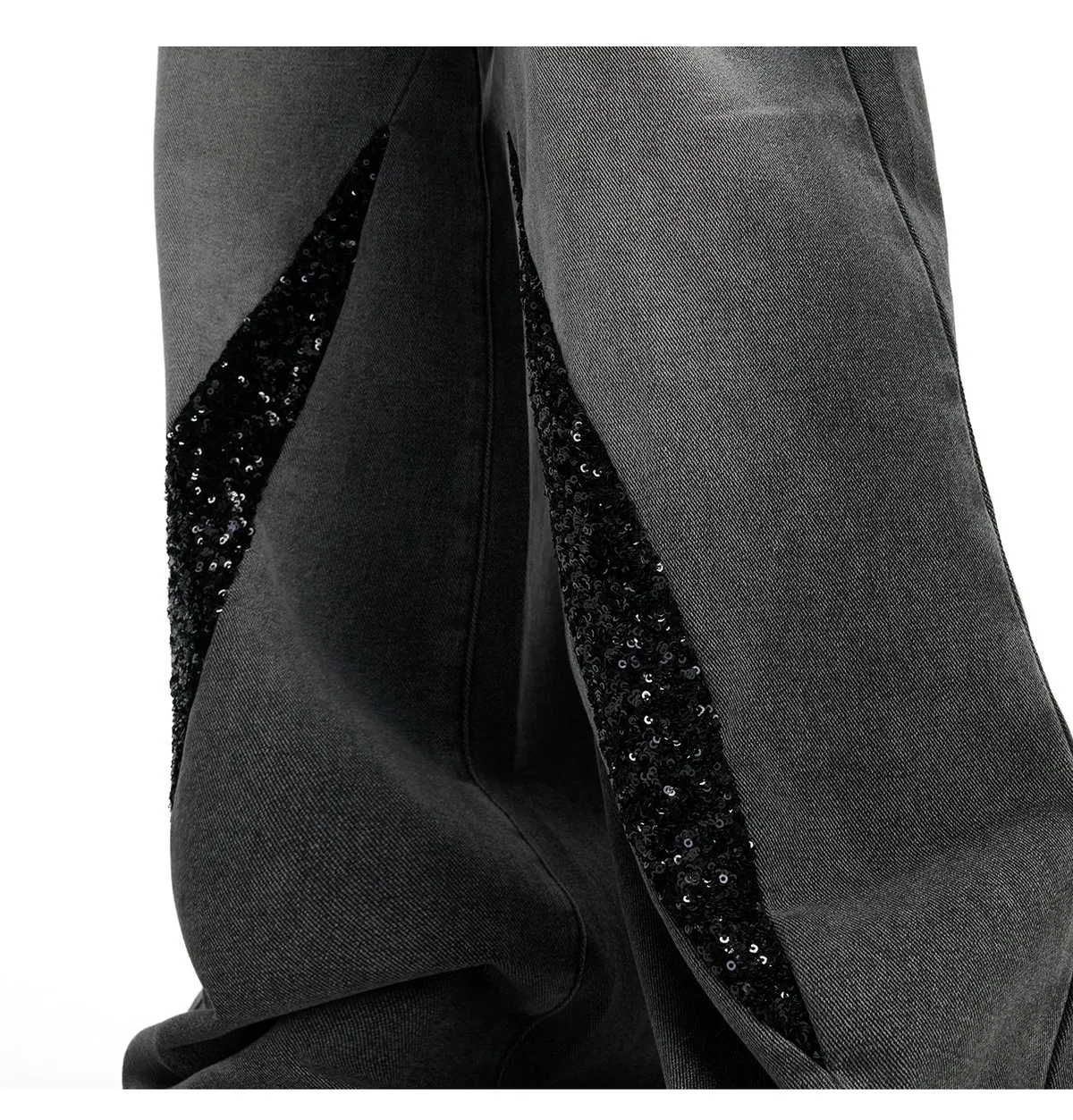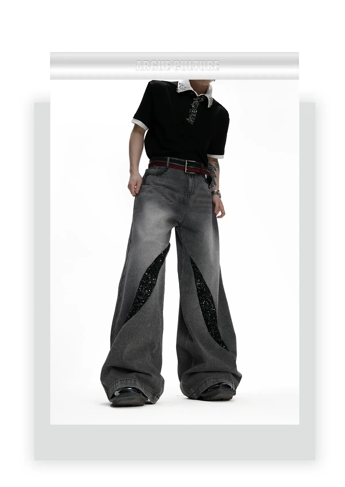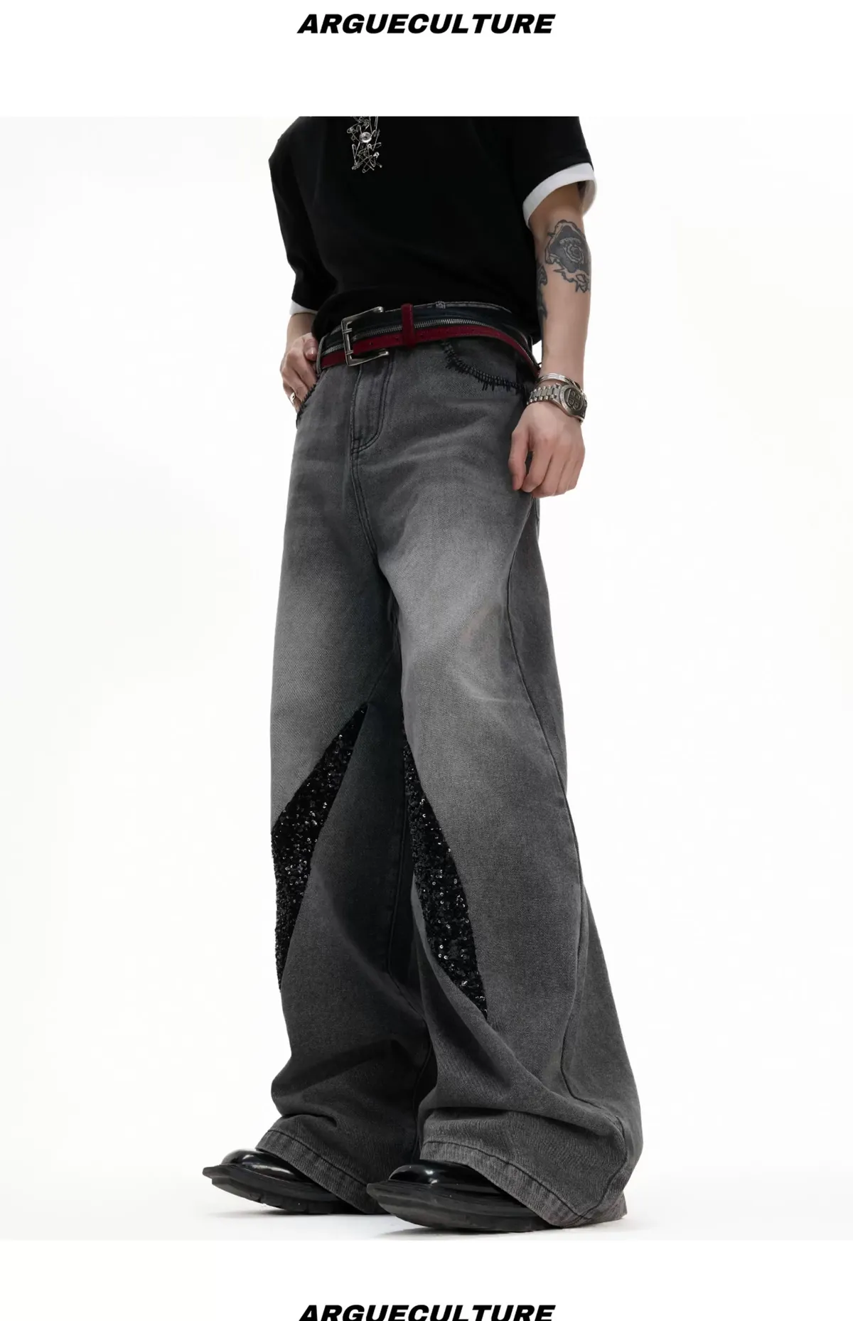 ARGUE 流光閃片拼接 水洗灰 牛仔褲(水洗灰)
