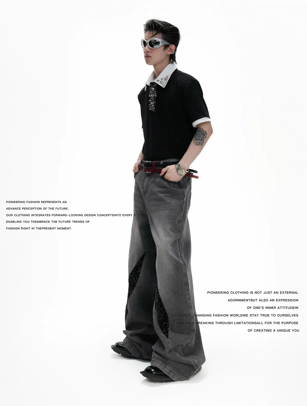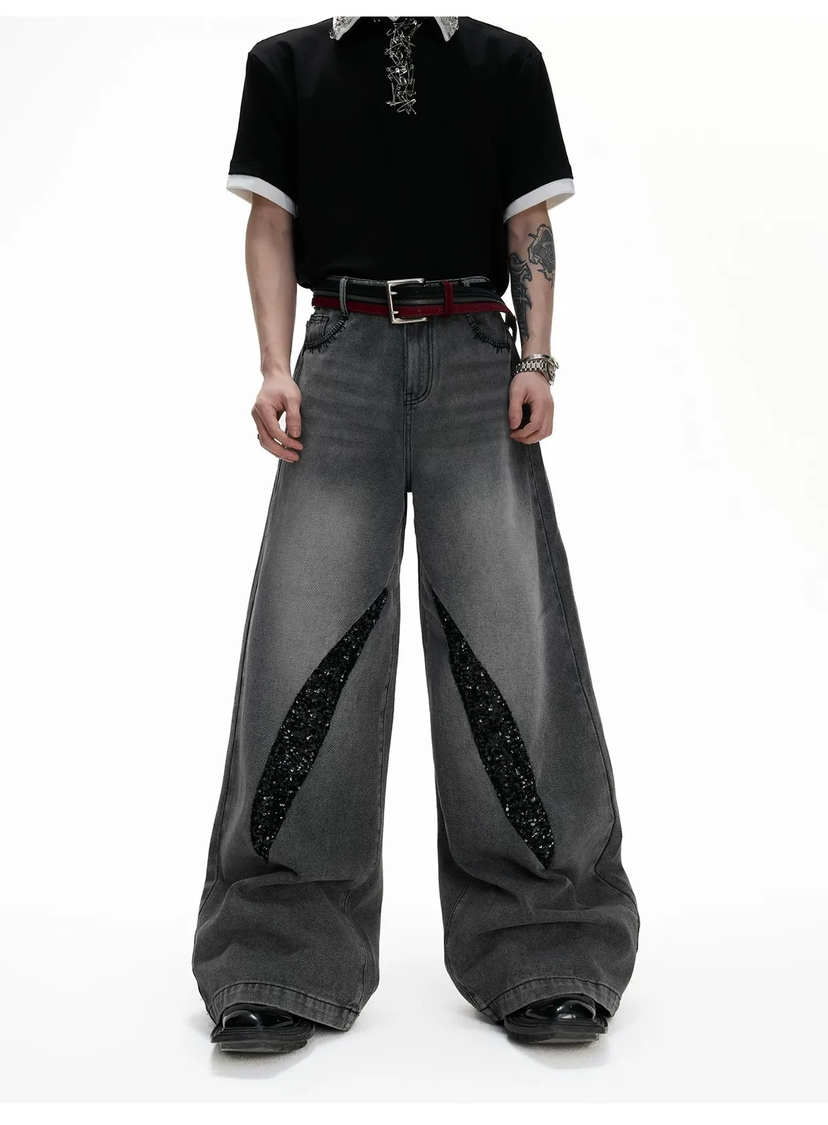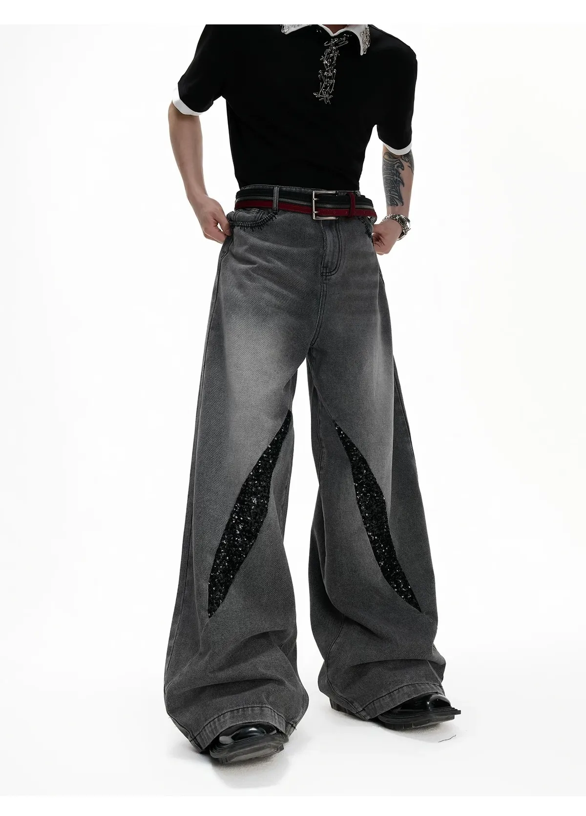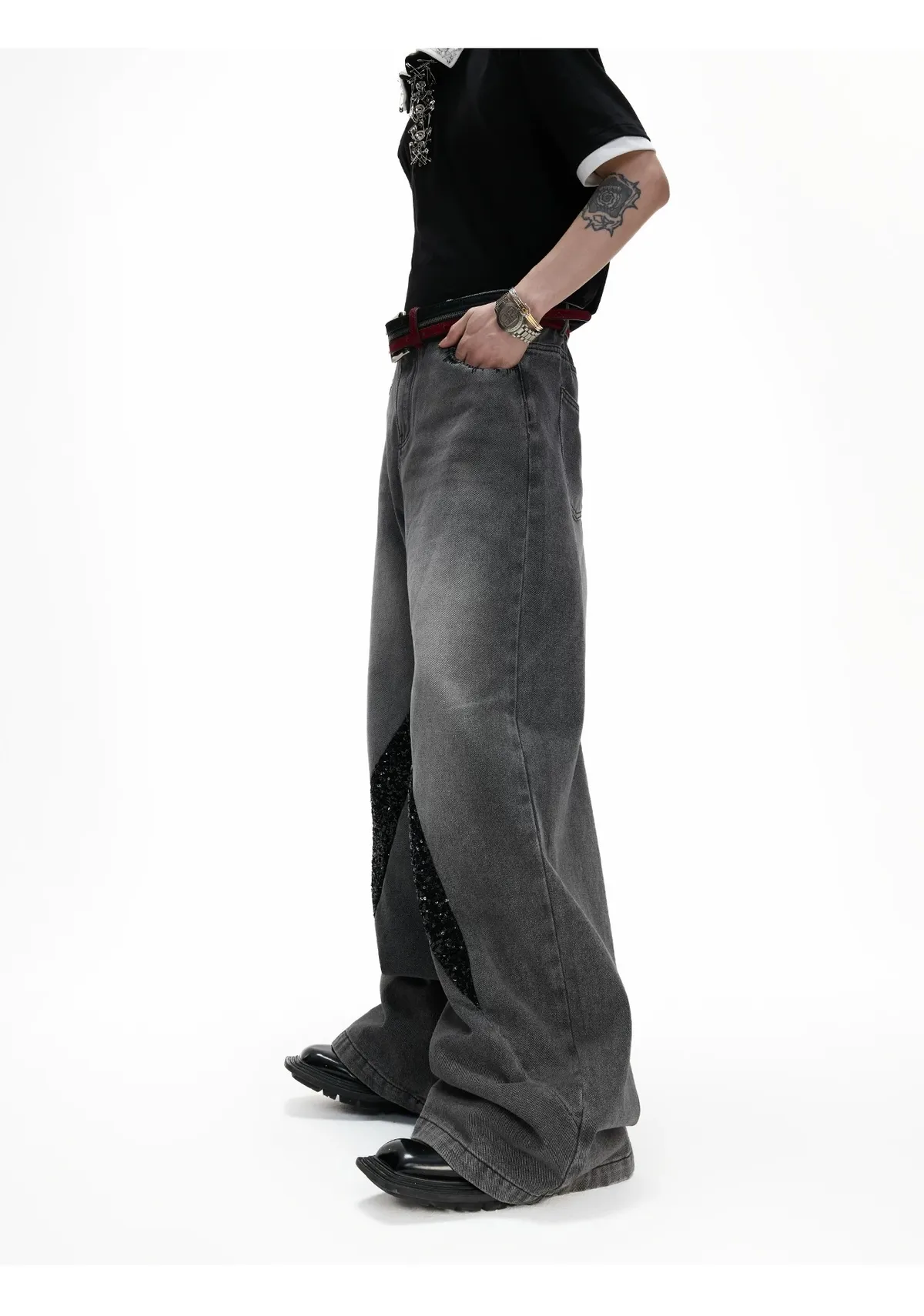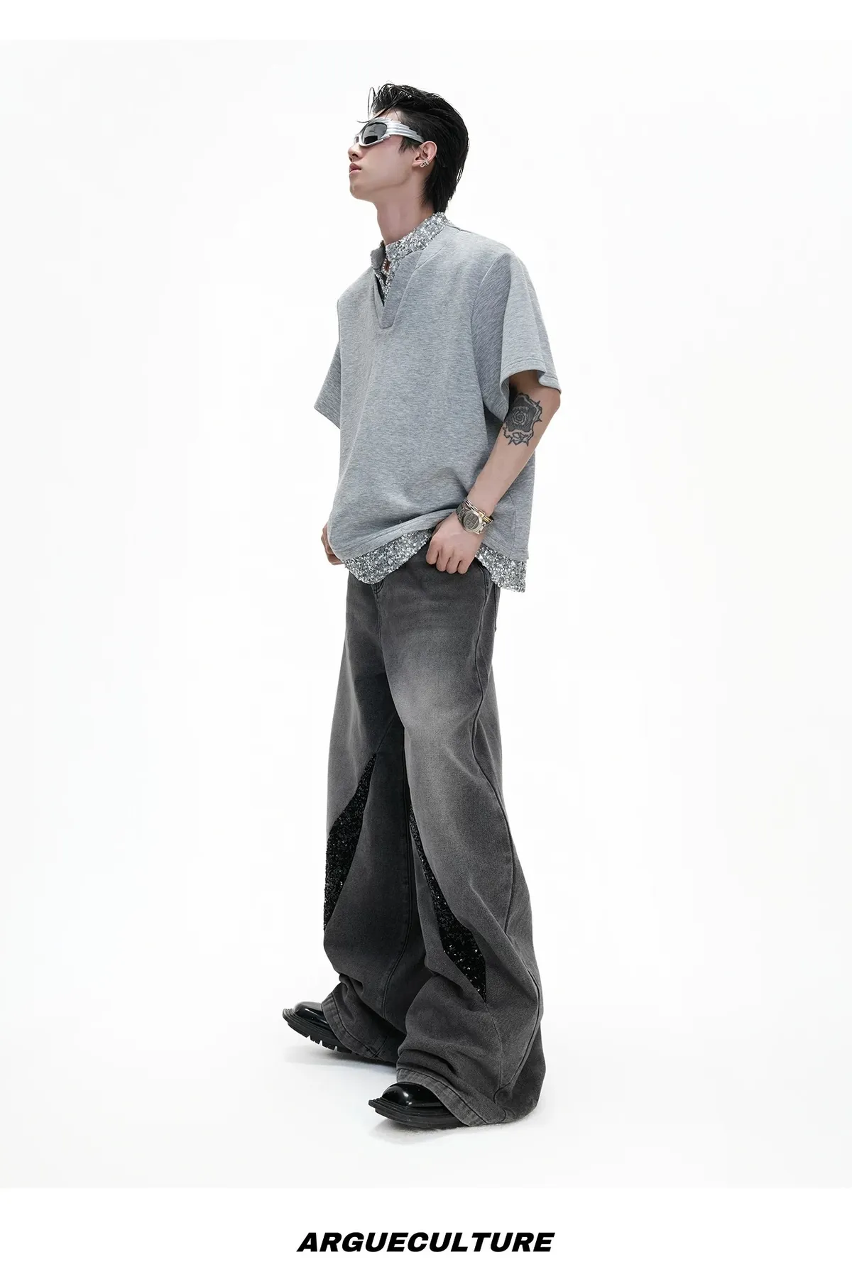 ARGUE 流光閃片拼接 水洗灰 牛仔褲(水洗灰)