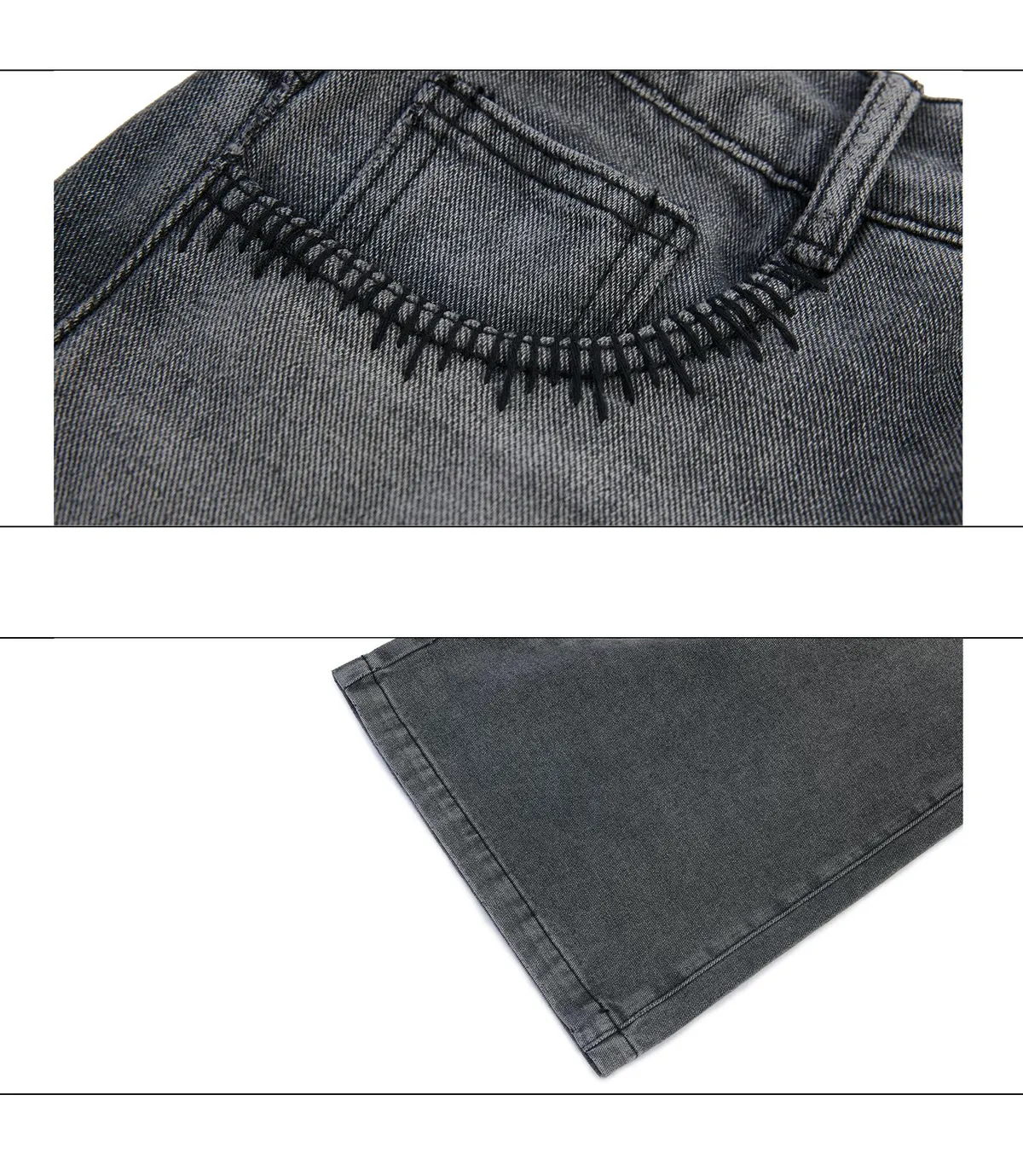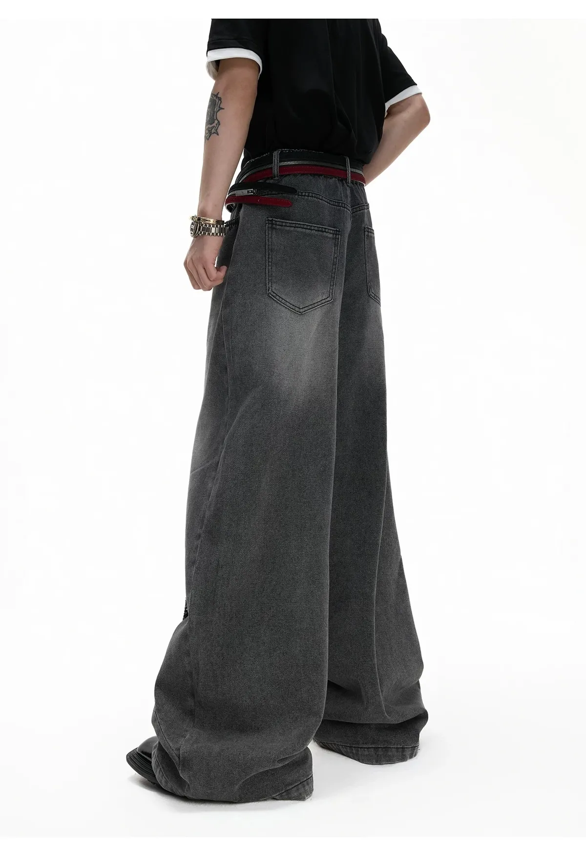 水洗漸層 潑漆 彎刀褲 牛仔褲(水洗灰色)