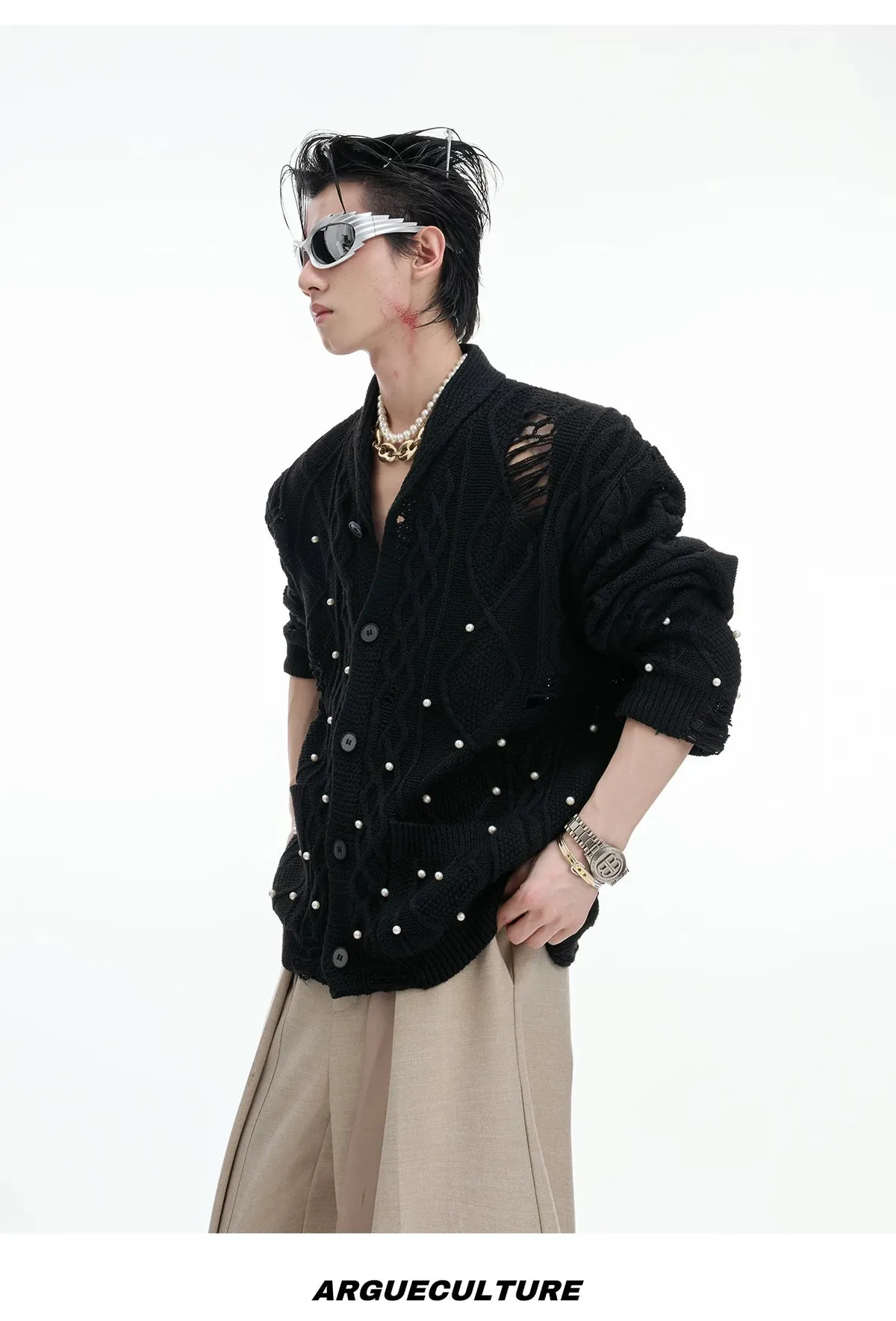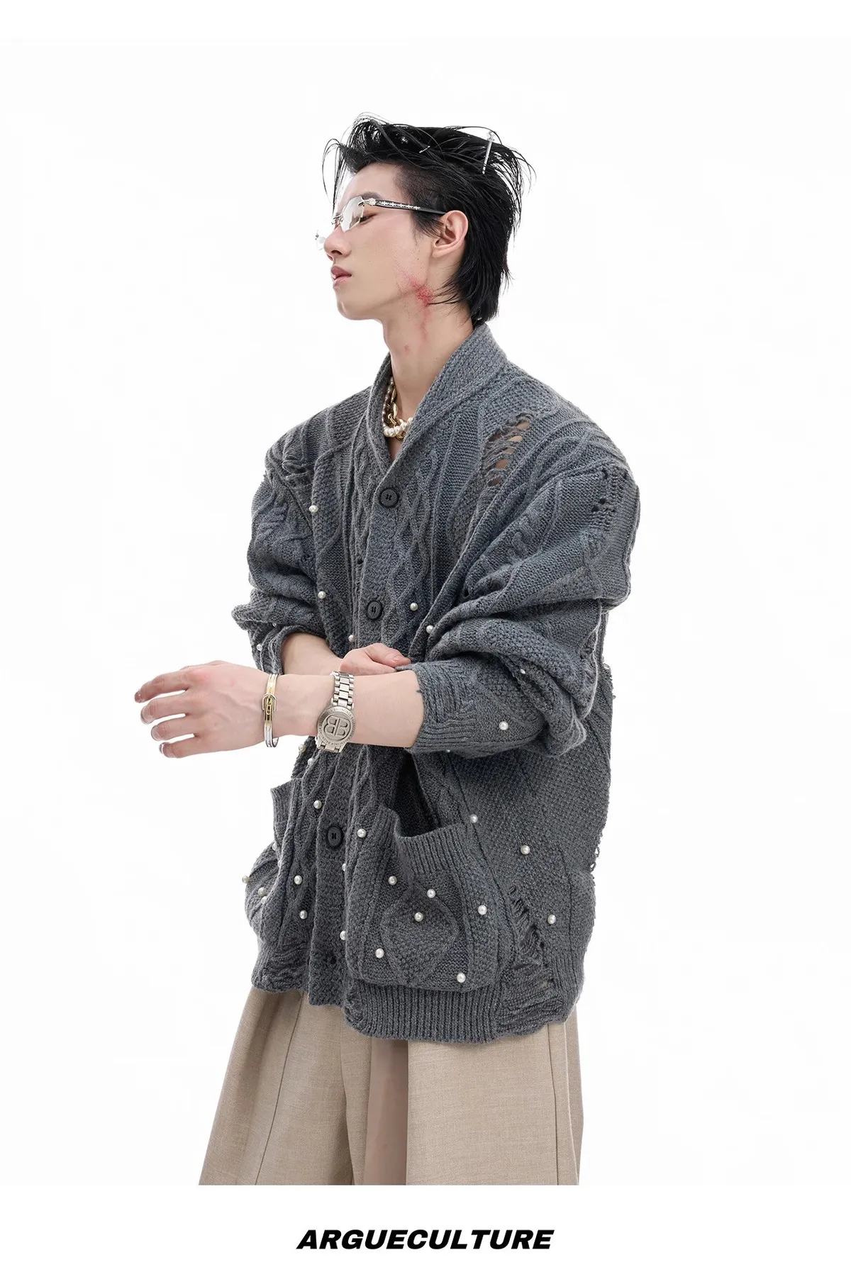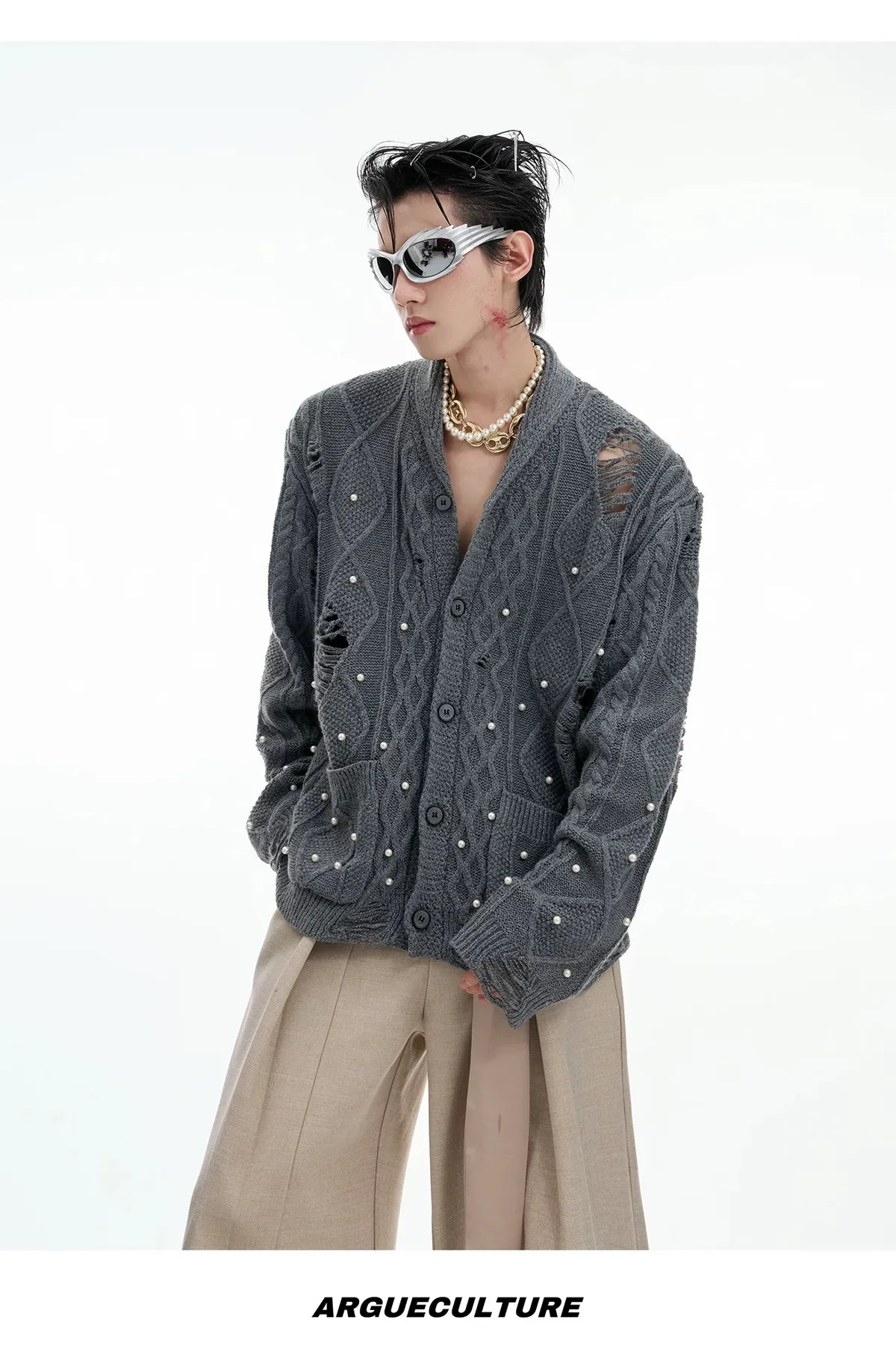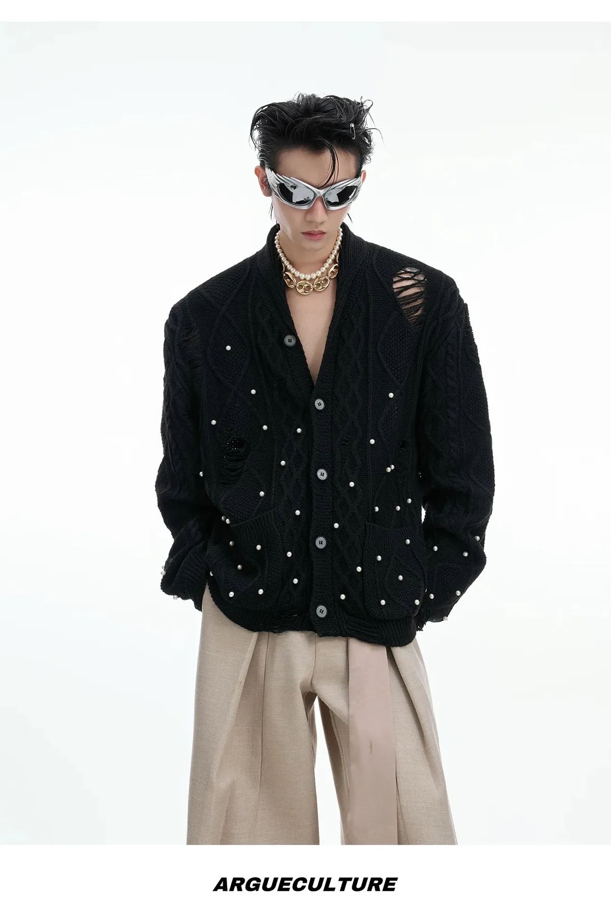 ARGUE 重工破壞 珍珠 針織外套(黑/白/灰)