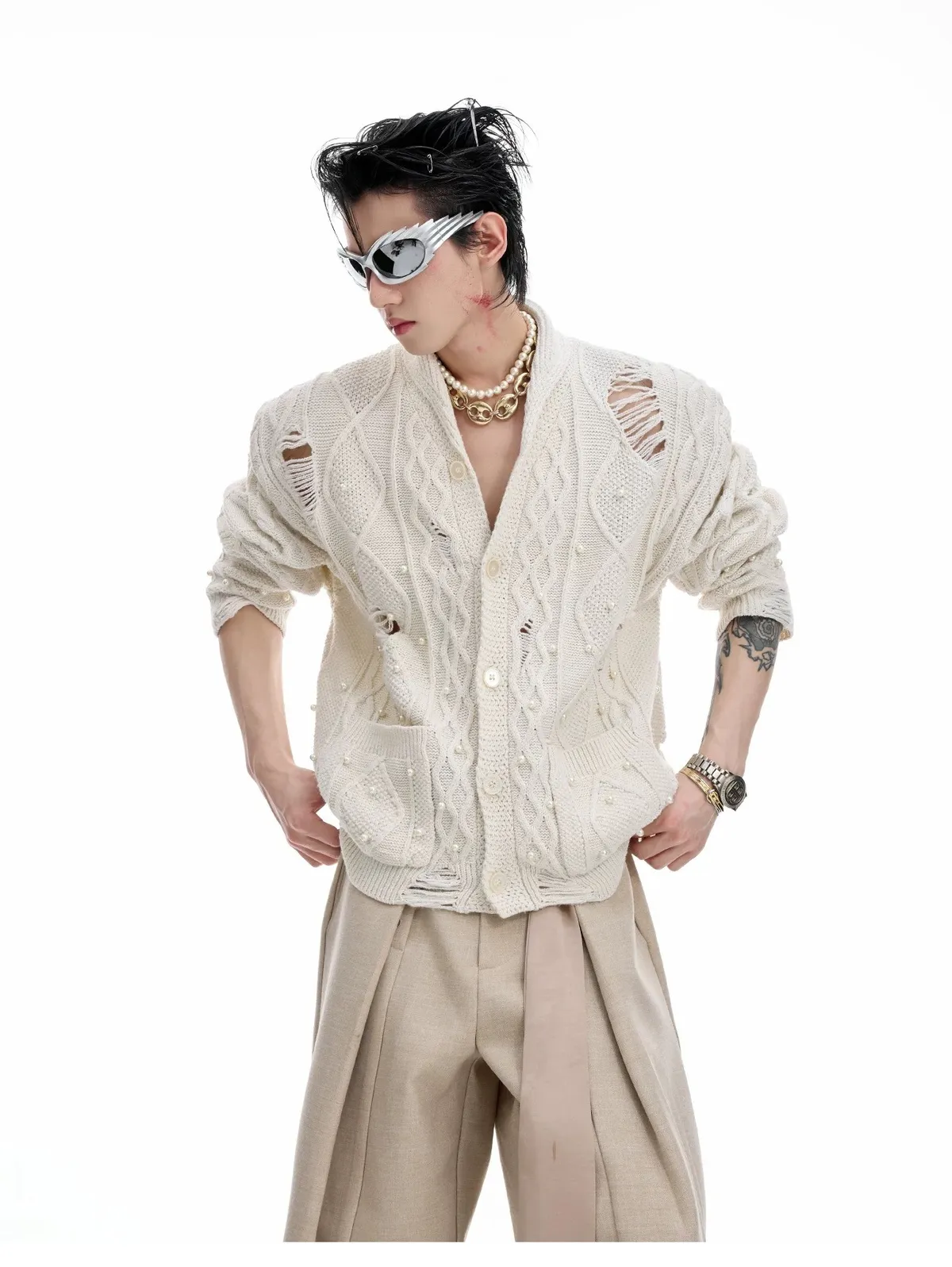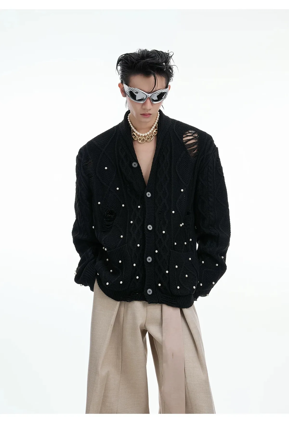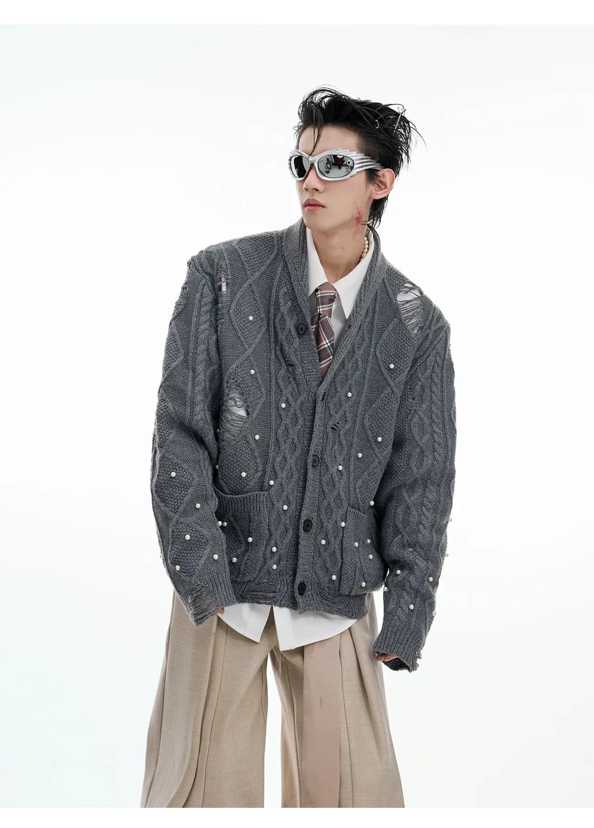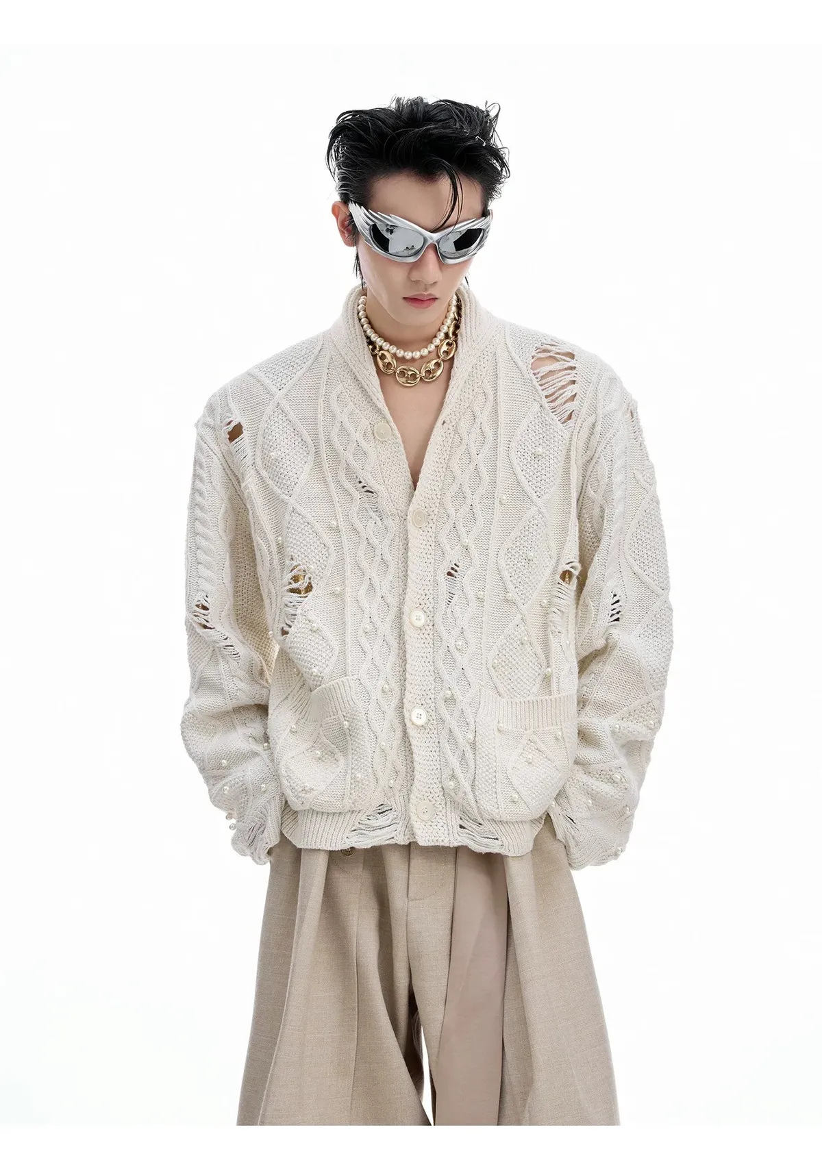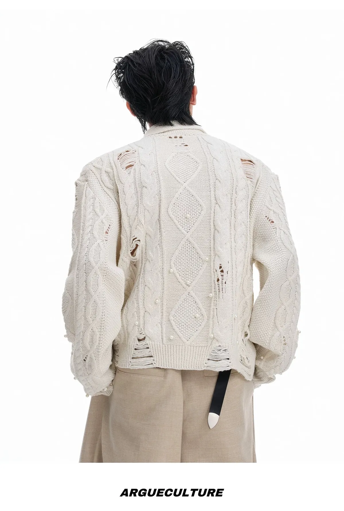 ARGUE 重工破壞 珍珠 針織外套(黑/白/灰)