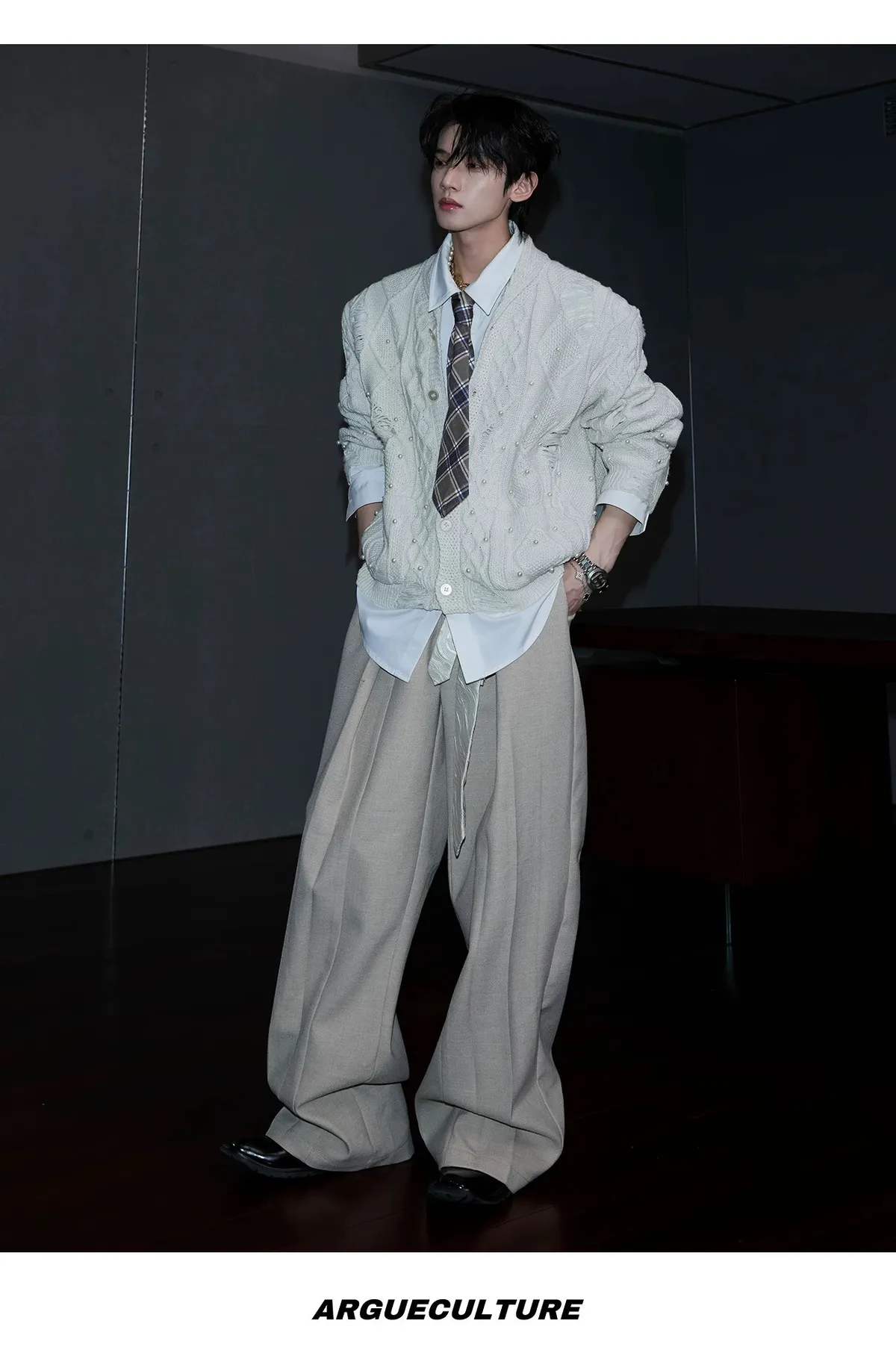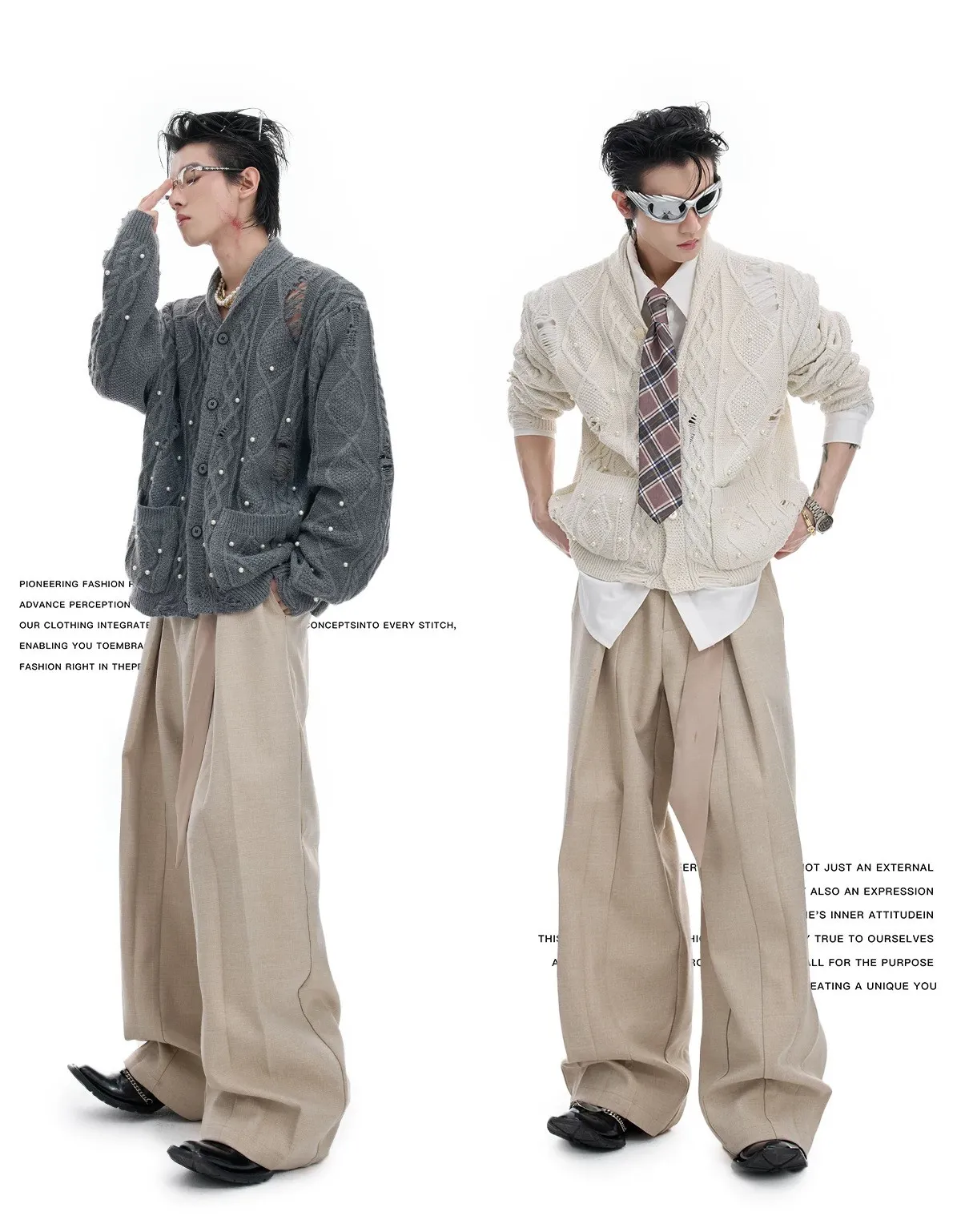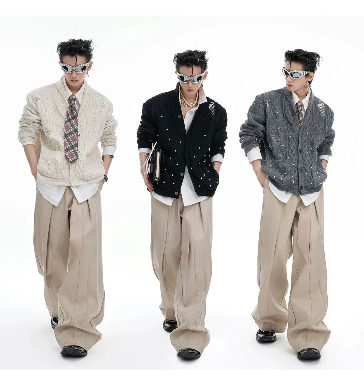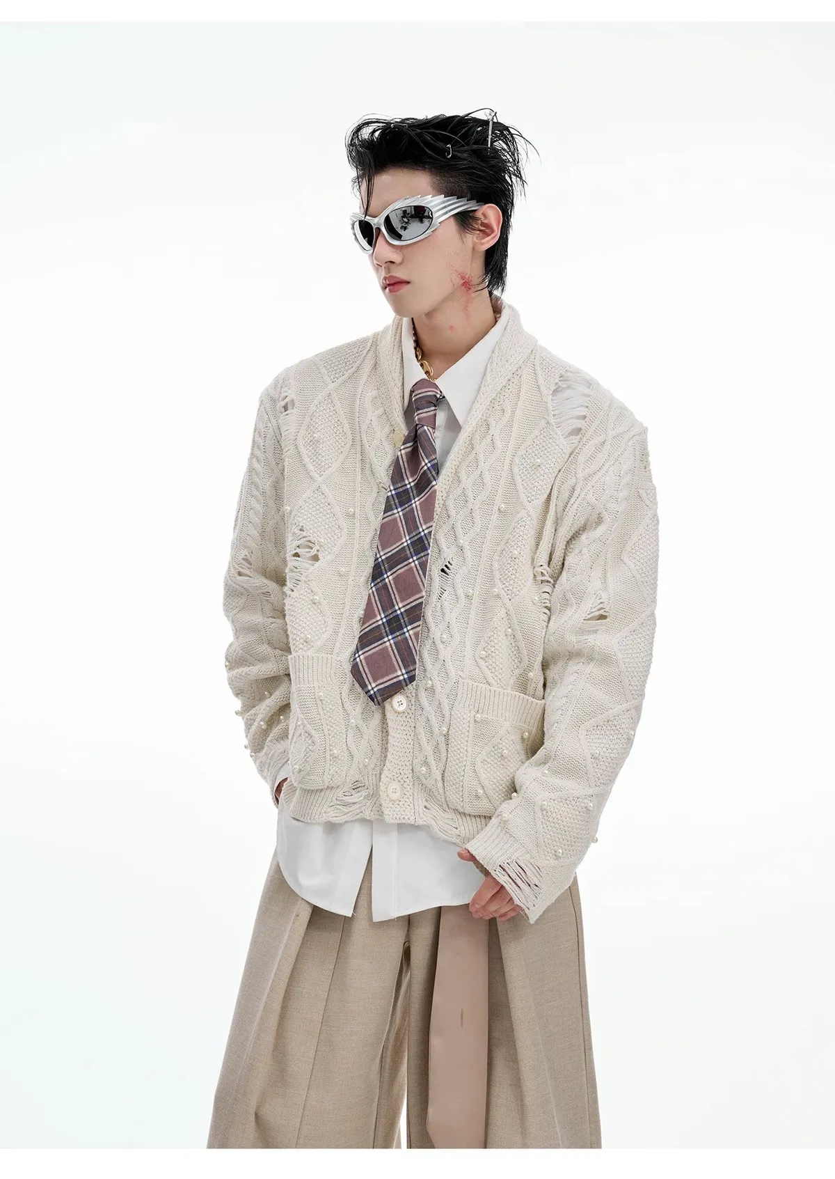 ARGUE 重工破壞 珍珠 針織外套(黑/白/灰)