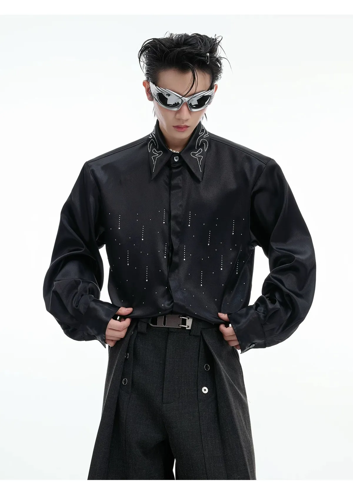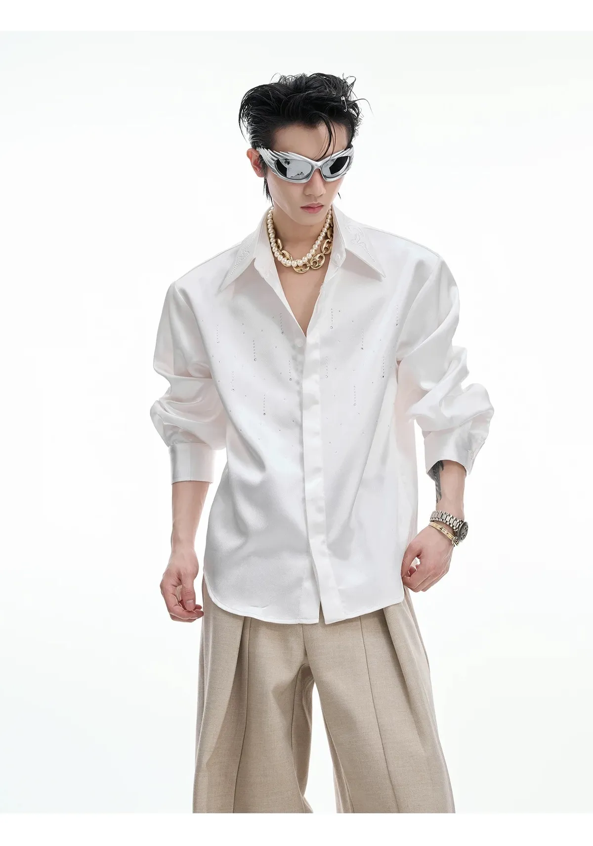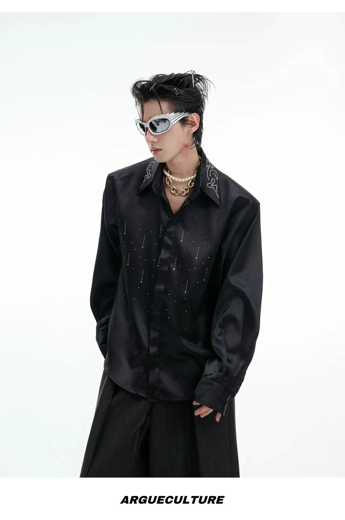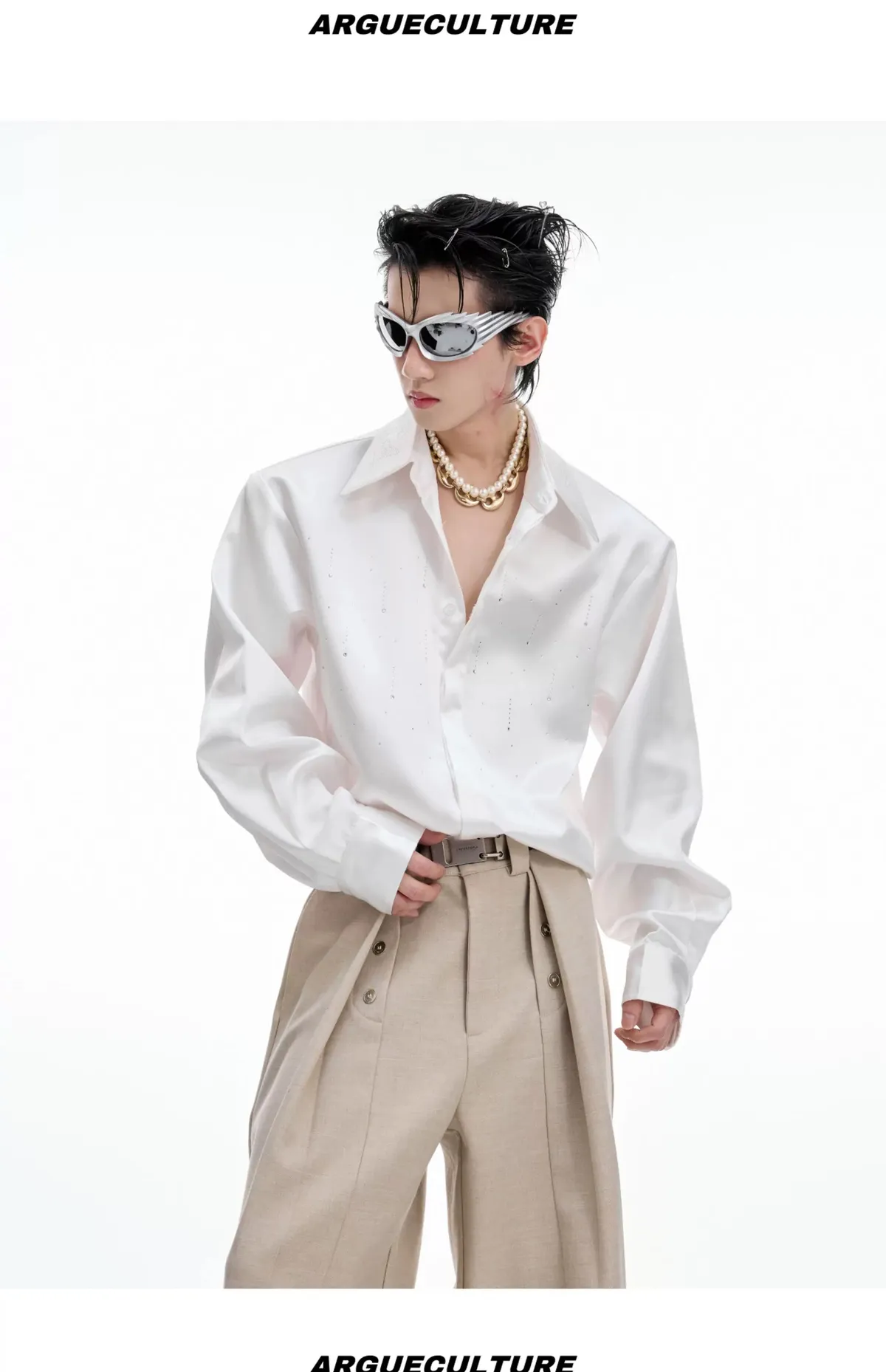 ARGUE 高級感 緞面閃鑽 襯衫(黑/白)
