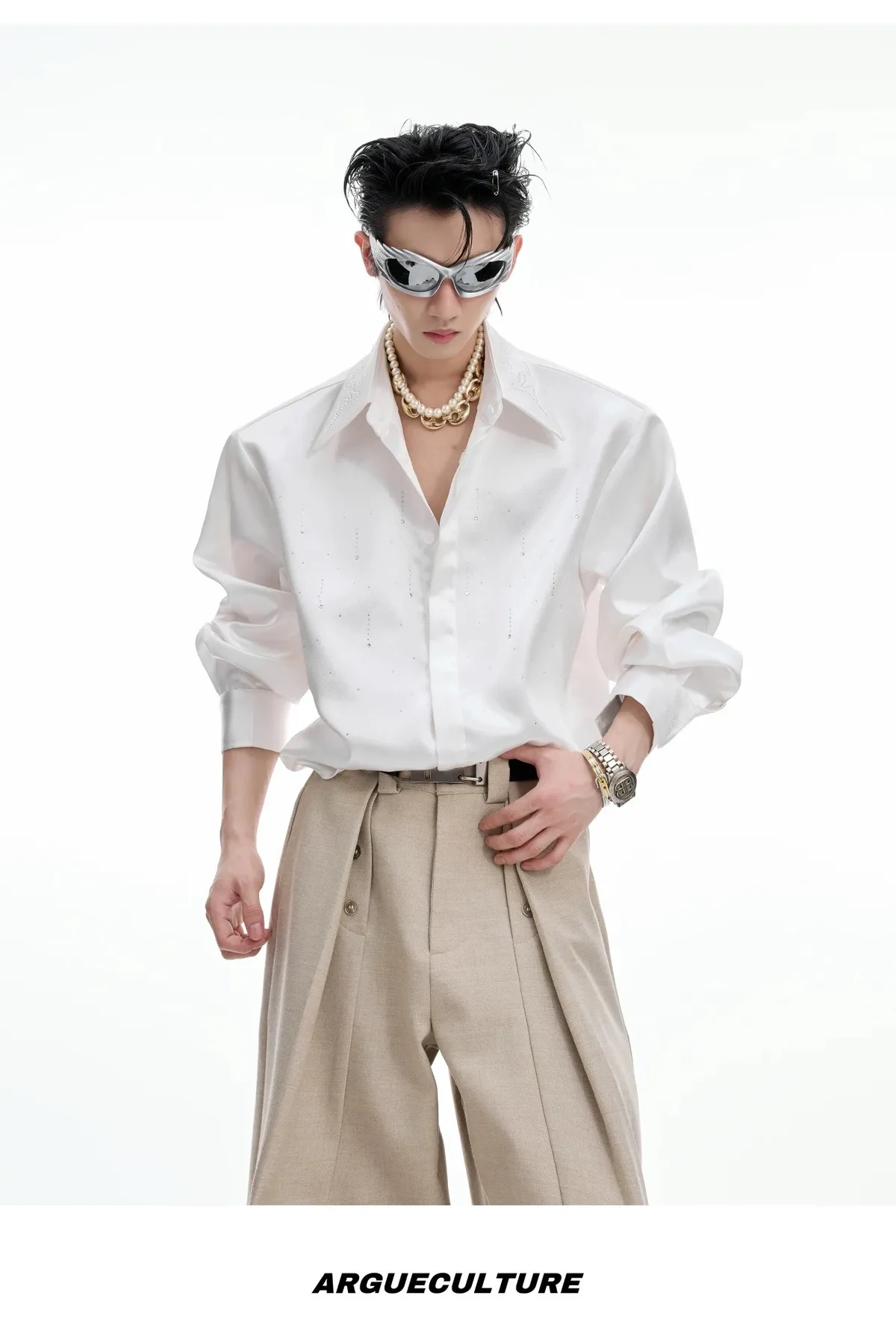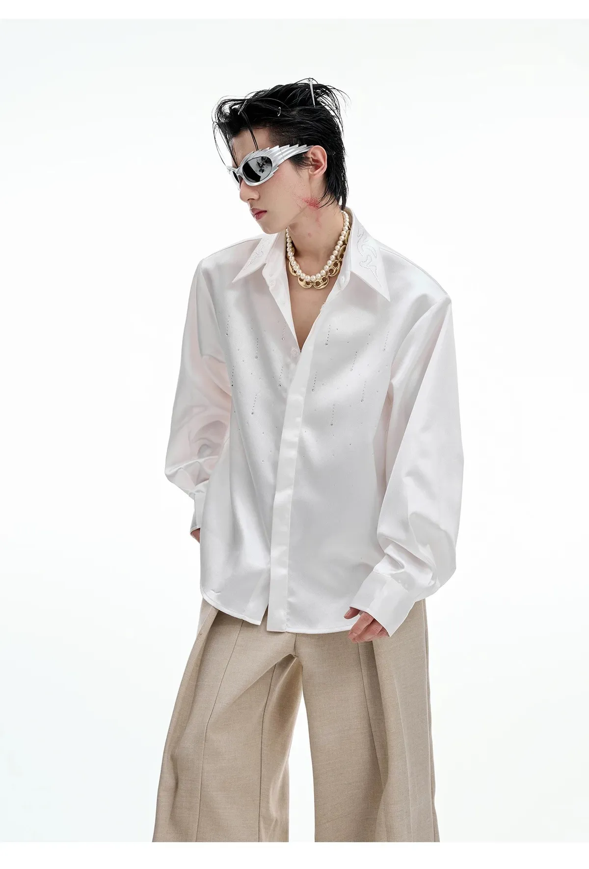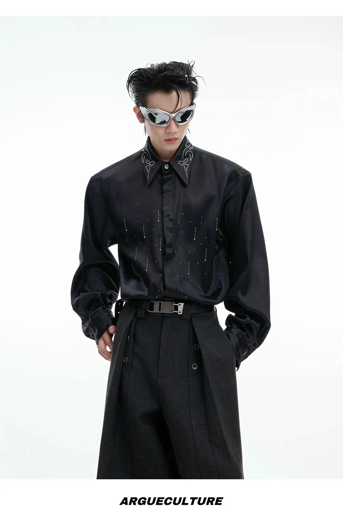ARGUE 高級感 緞面閃鑽 襯衫(黑/白)