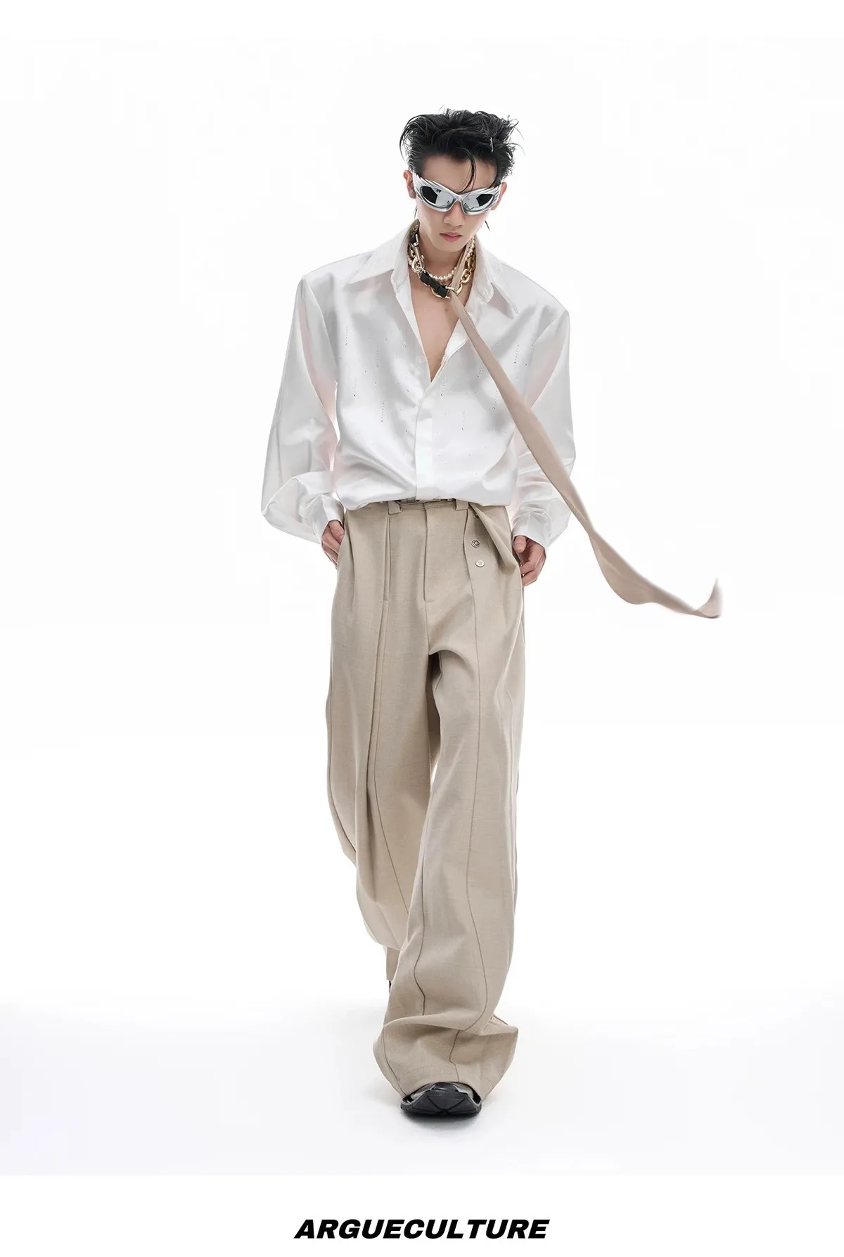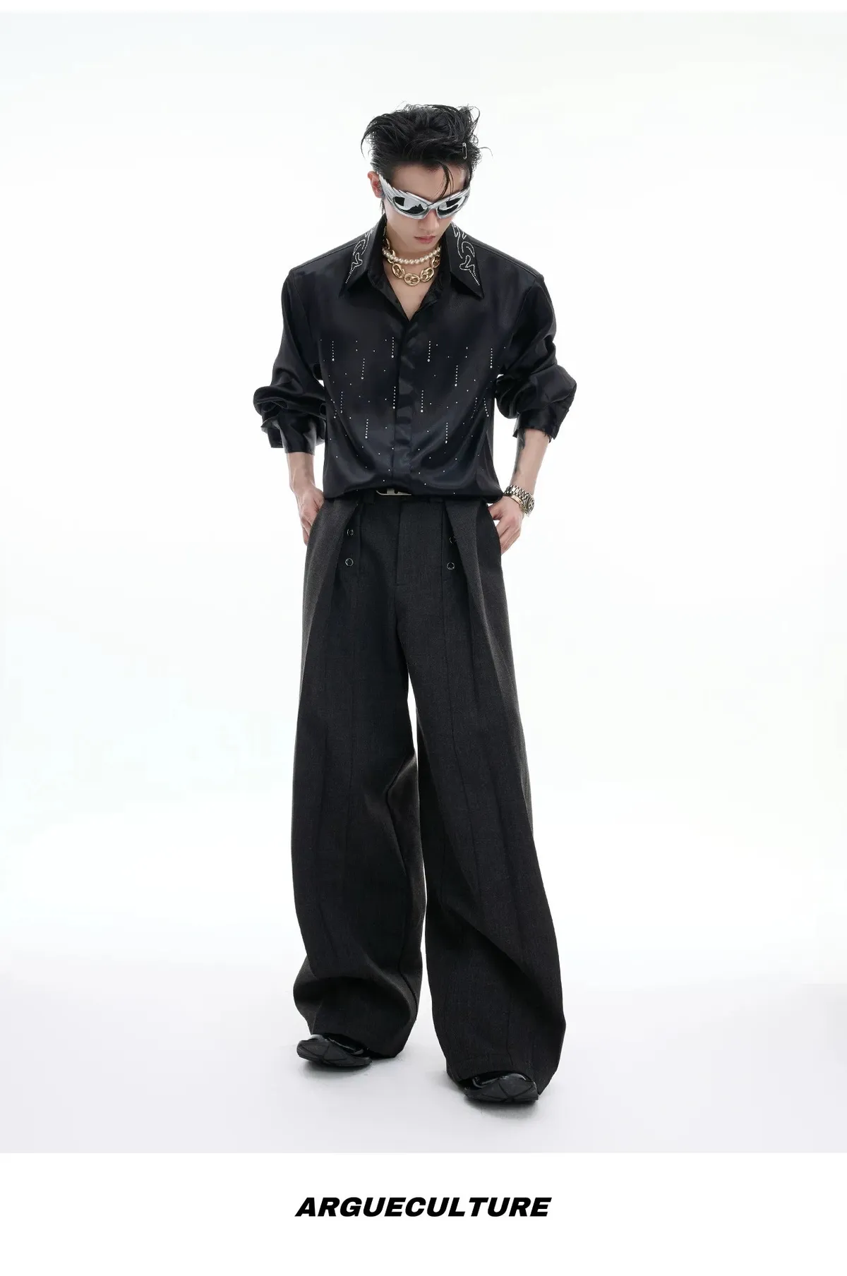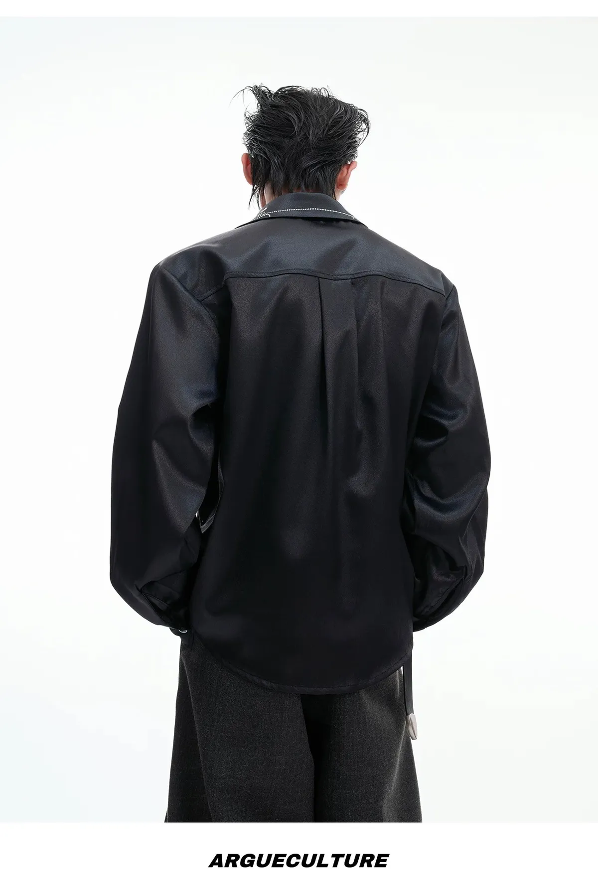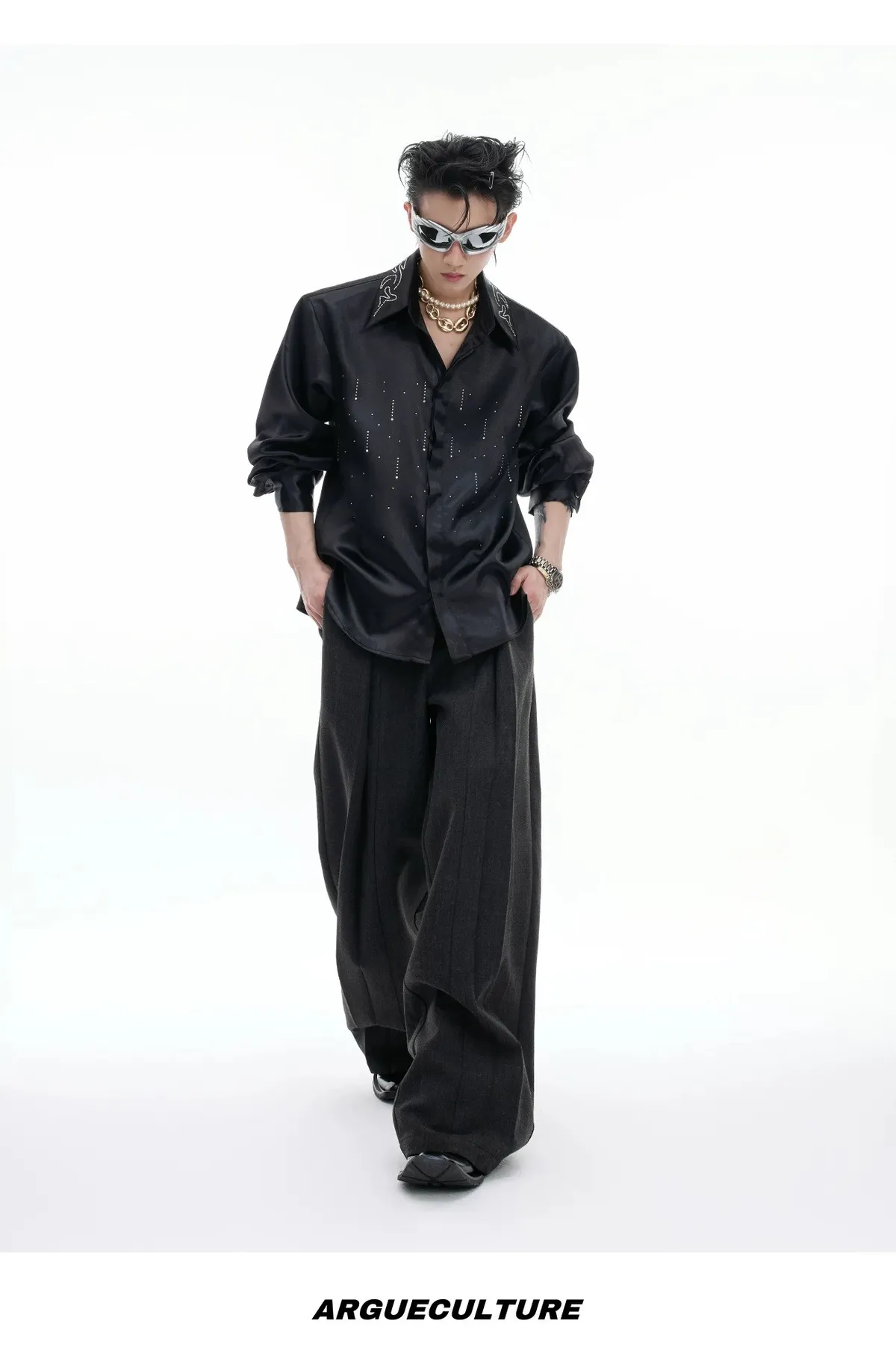 ARGUE 高級感 緞面閃鑽 襯衫(黑/白)