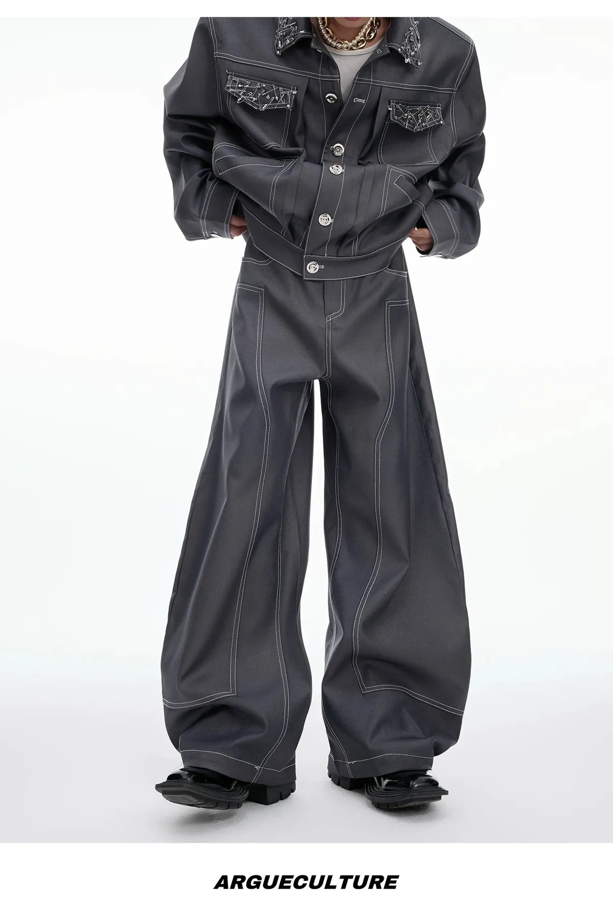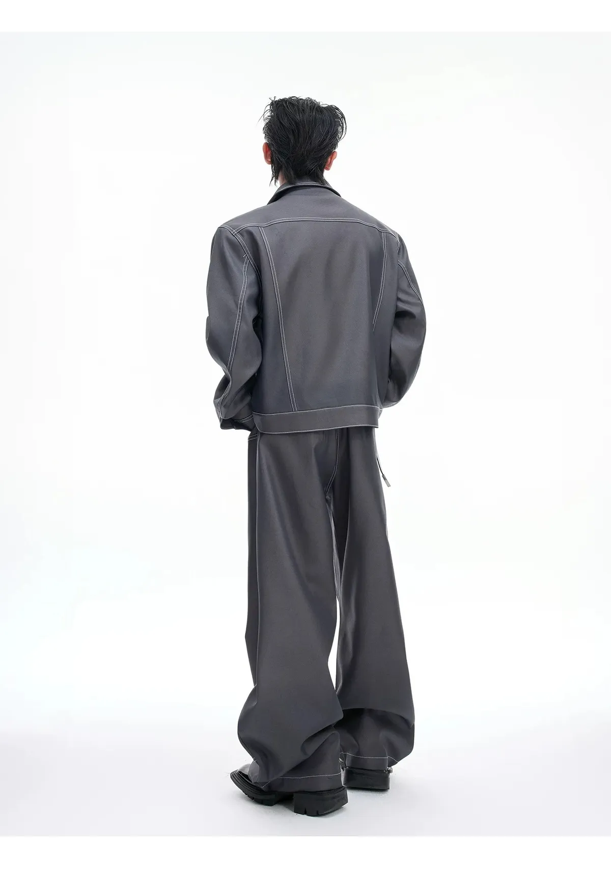 ARGUE 復古水洗 哈靈頓 水洗寬短 外套 解構 長褲 套裝(卡其/黑)