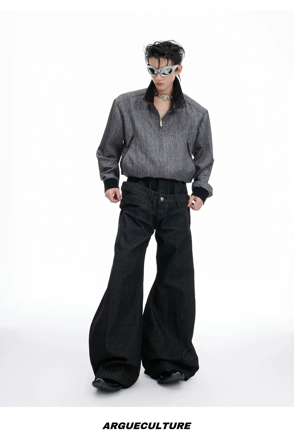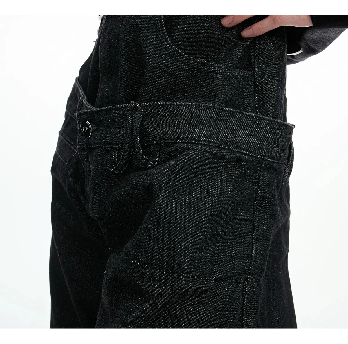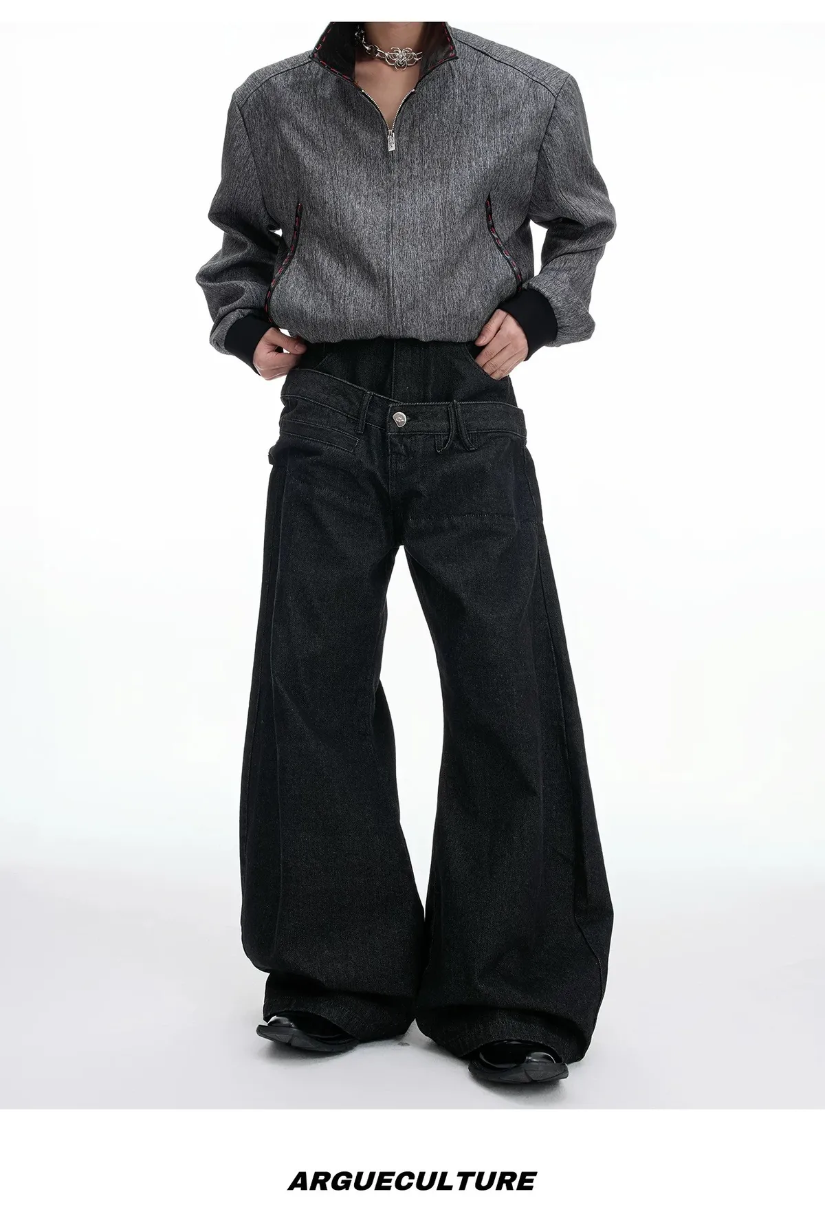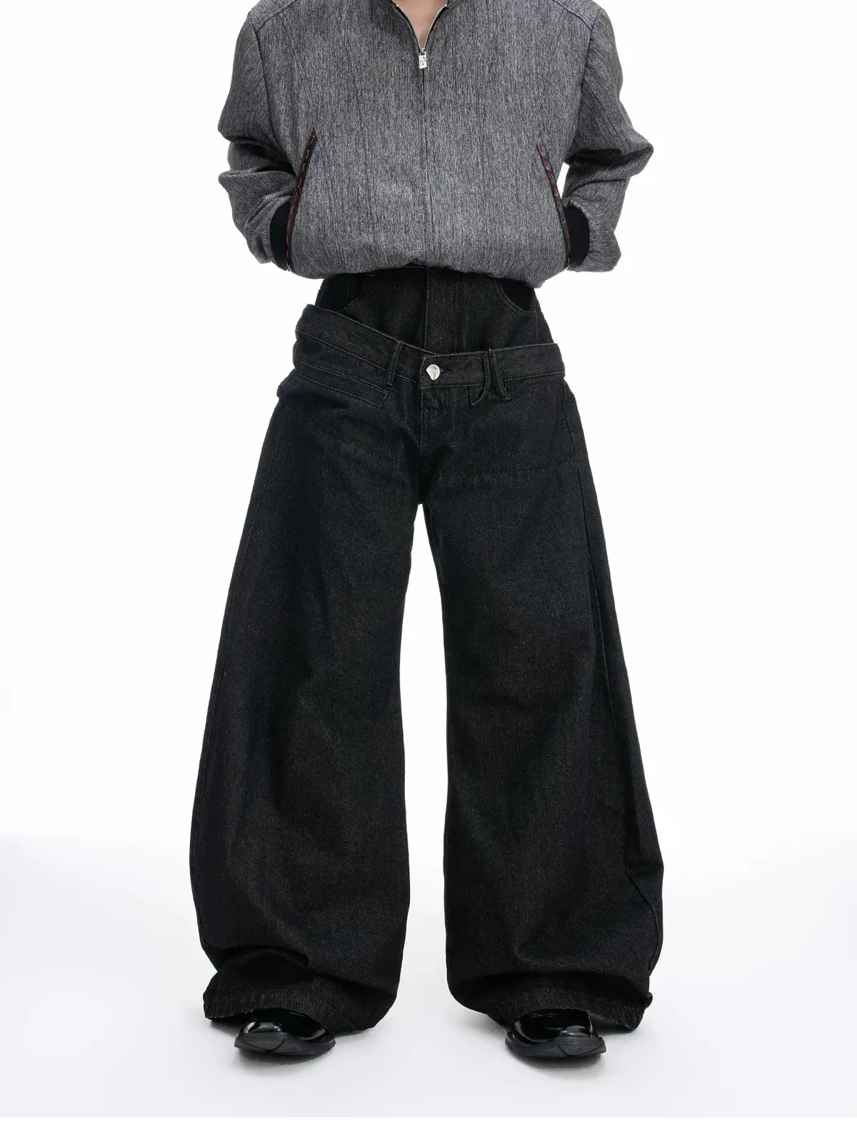 ARGUE 雙層褲頭 重磅闊腿 牛仔褲(黑色)