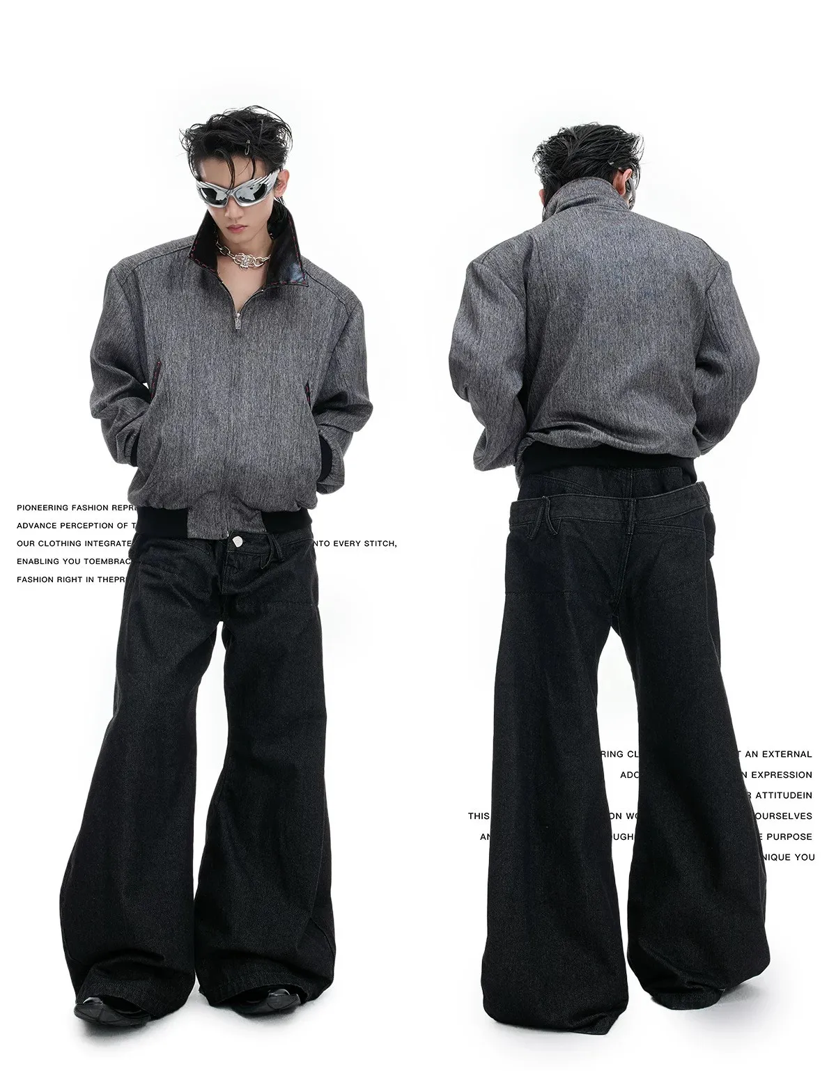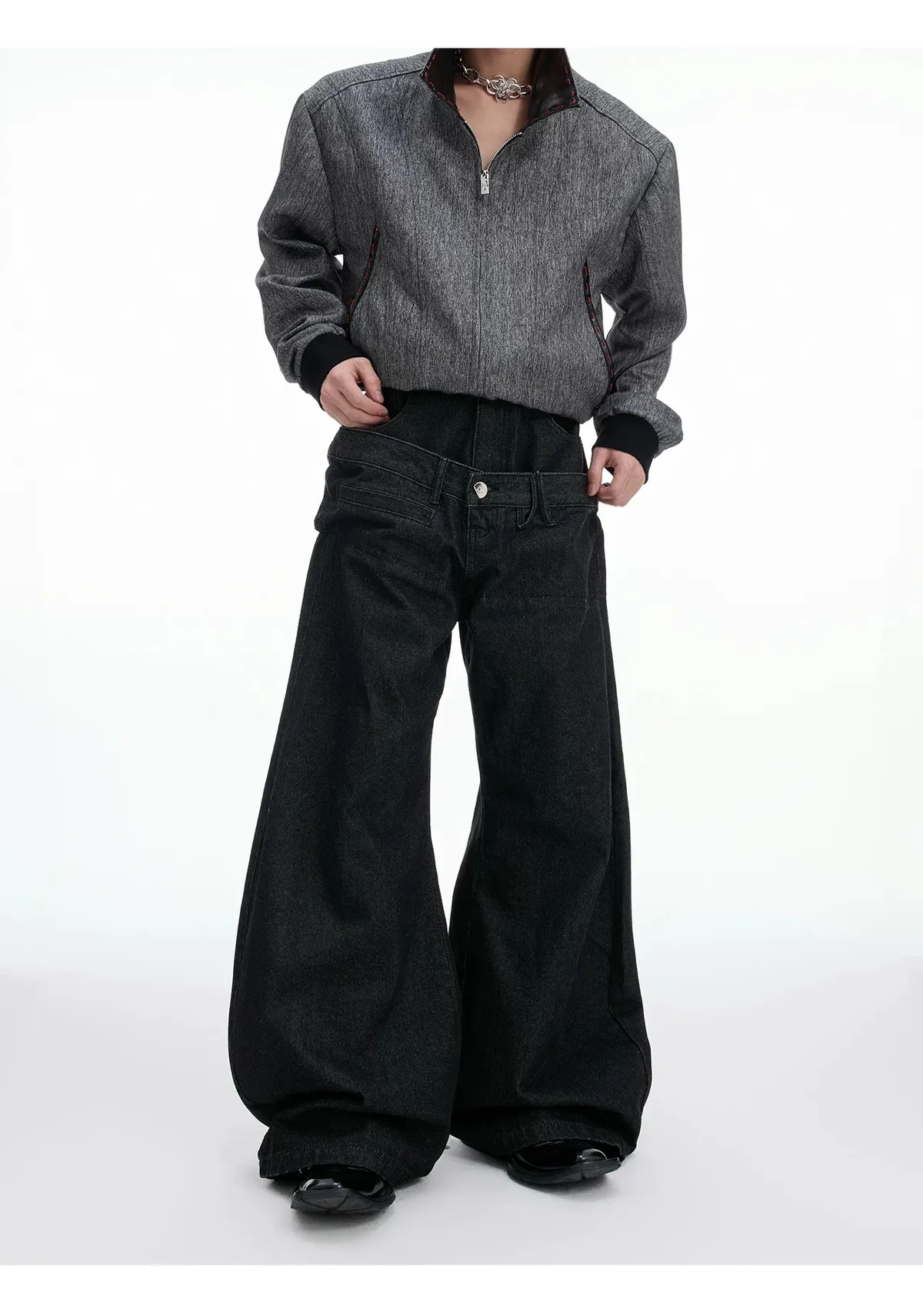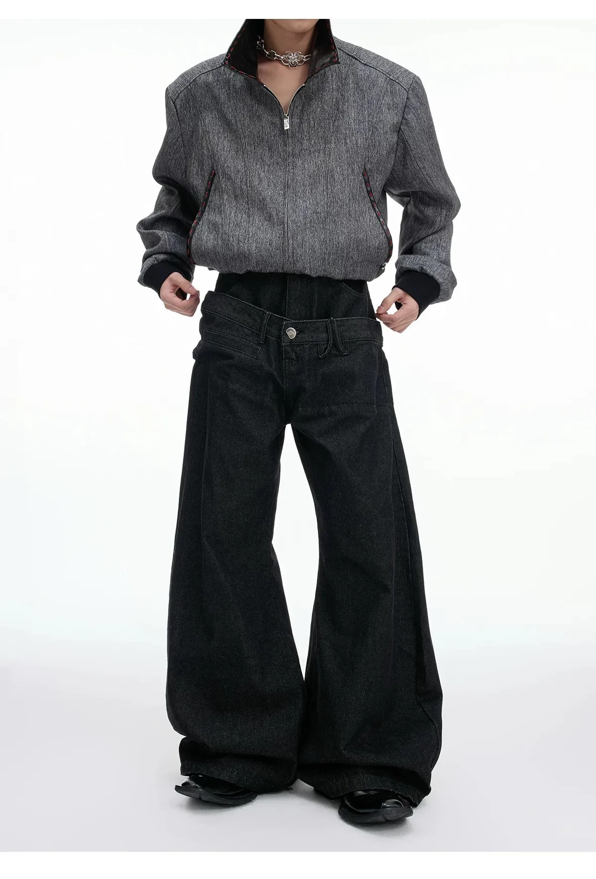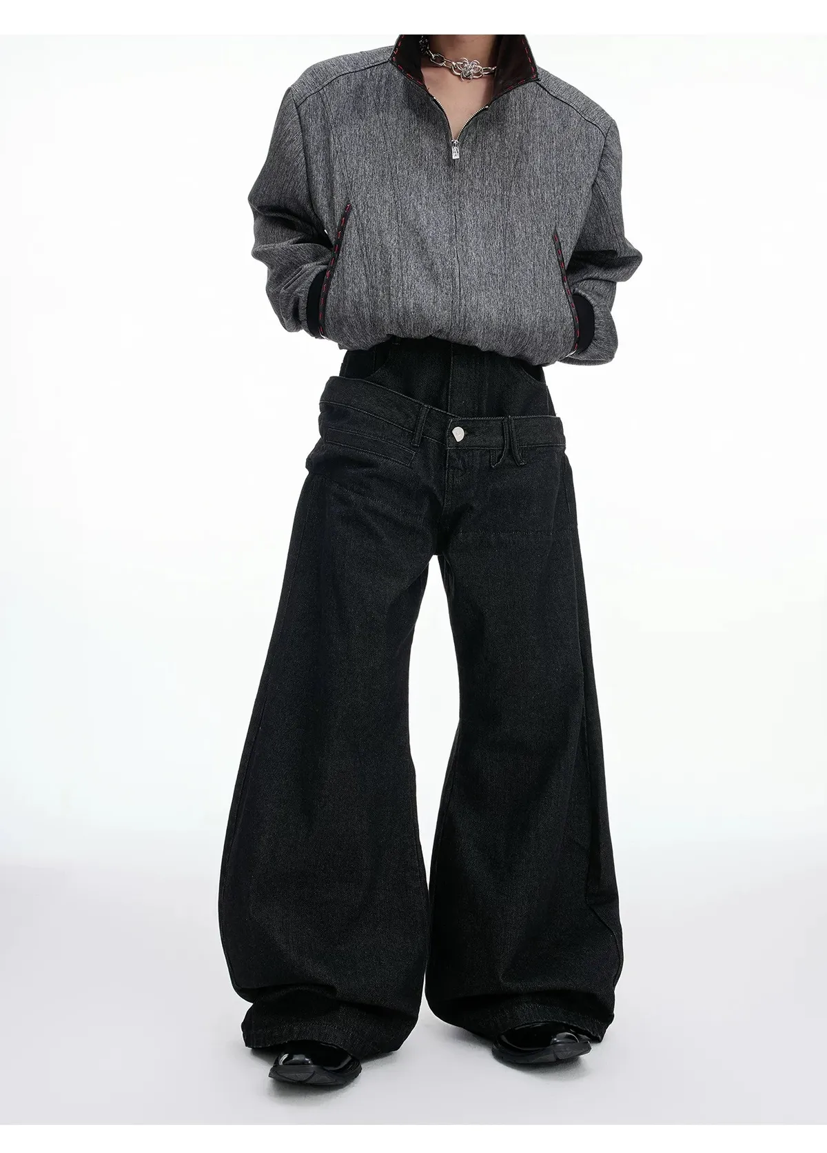 ARGUE 雙層褲頭 重磅闊腿 牛仔褲(黑色)