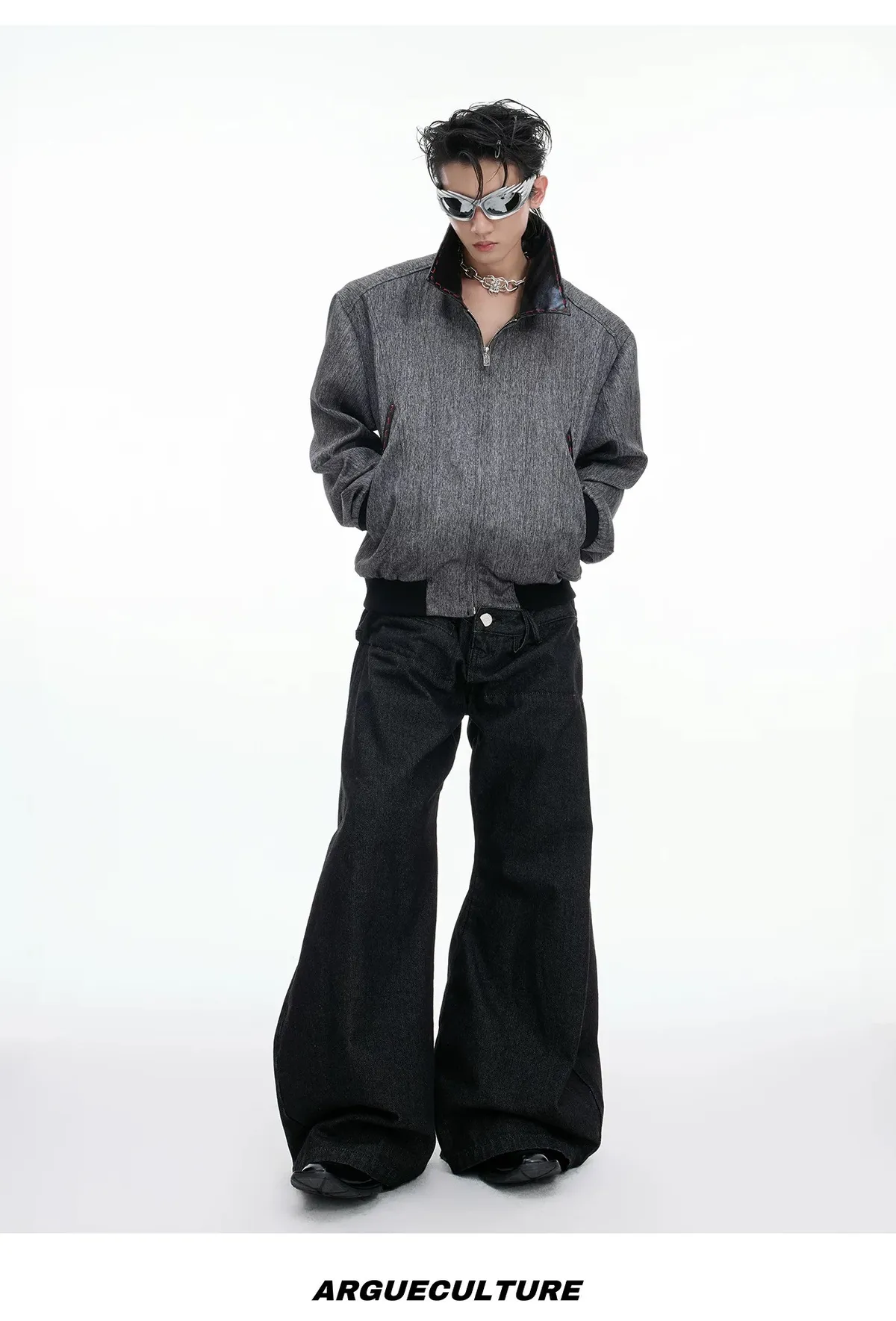 ARGUE 復古水洗 哈靈頓 水洗寬短 外套 解構 長褲 套裝(卡其/黑)