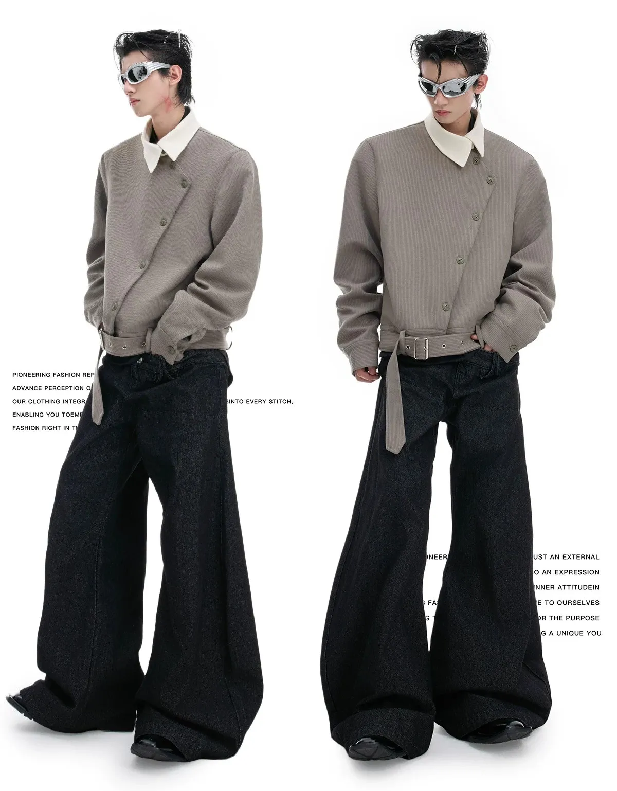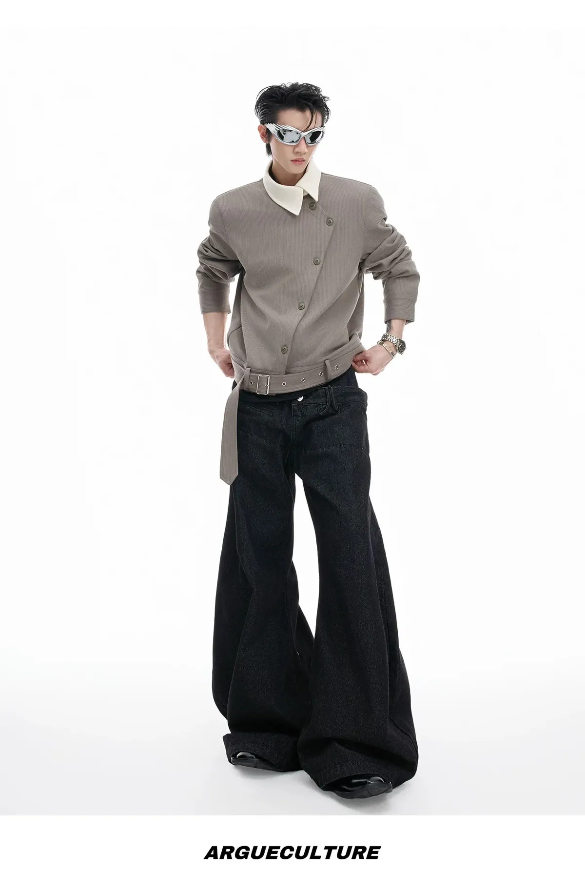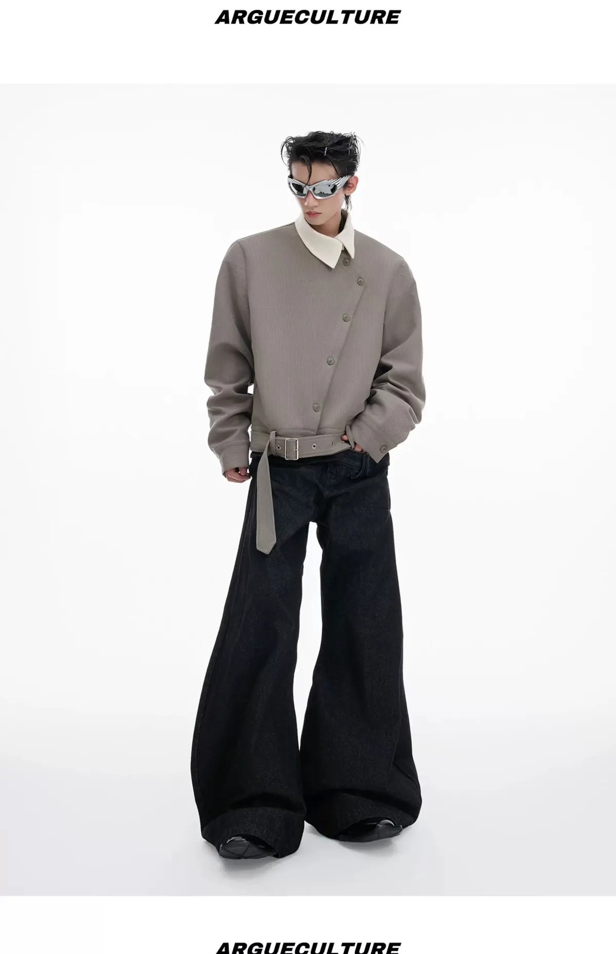 ARGUE 復古水洗 哈靈頓 水洗寬短 外套 解構 長褲 套裝(卡其/黑)