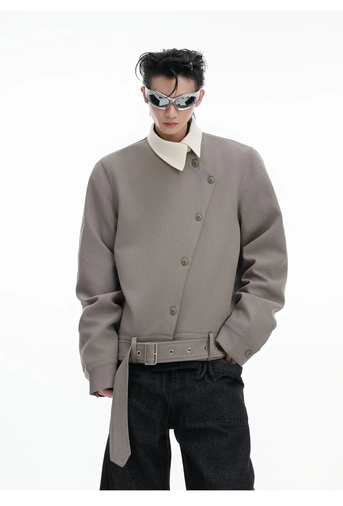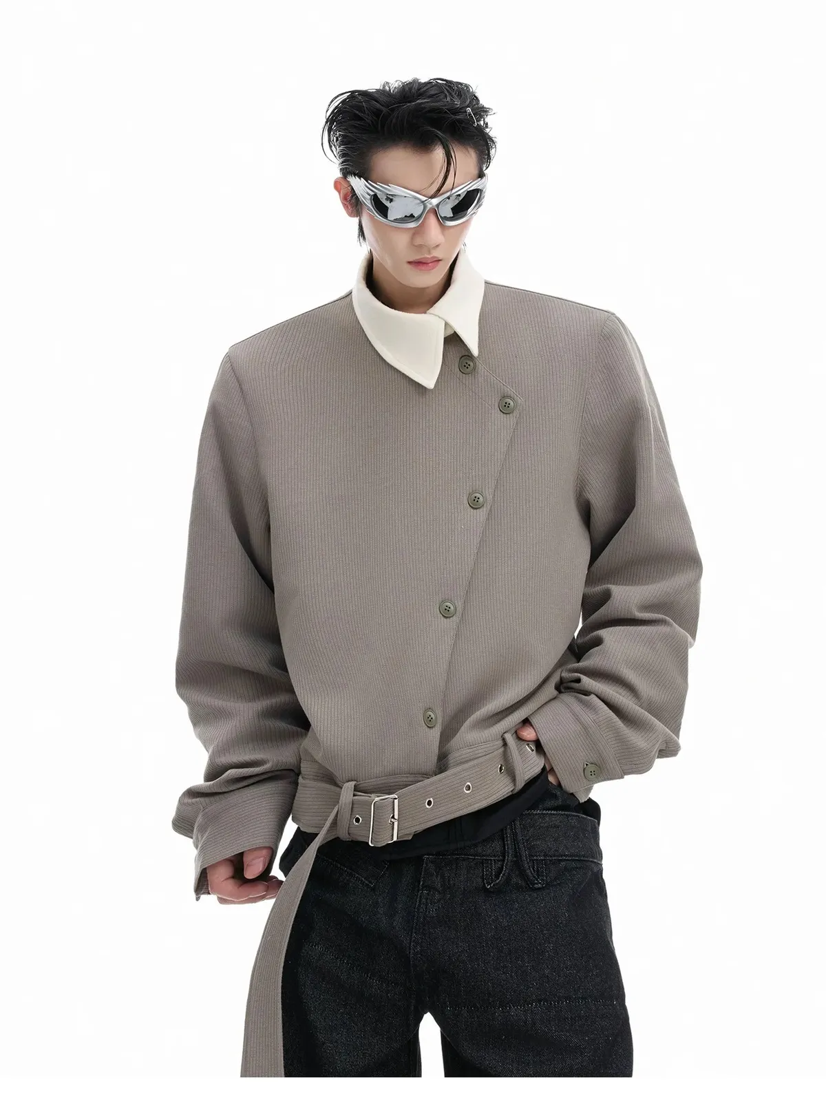 ARGUE 設計感 斜釦尖領 復古貴氣 外套(灰棕)