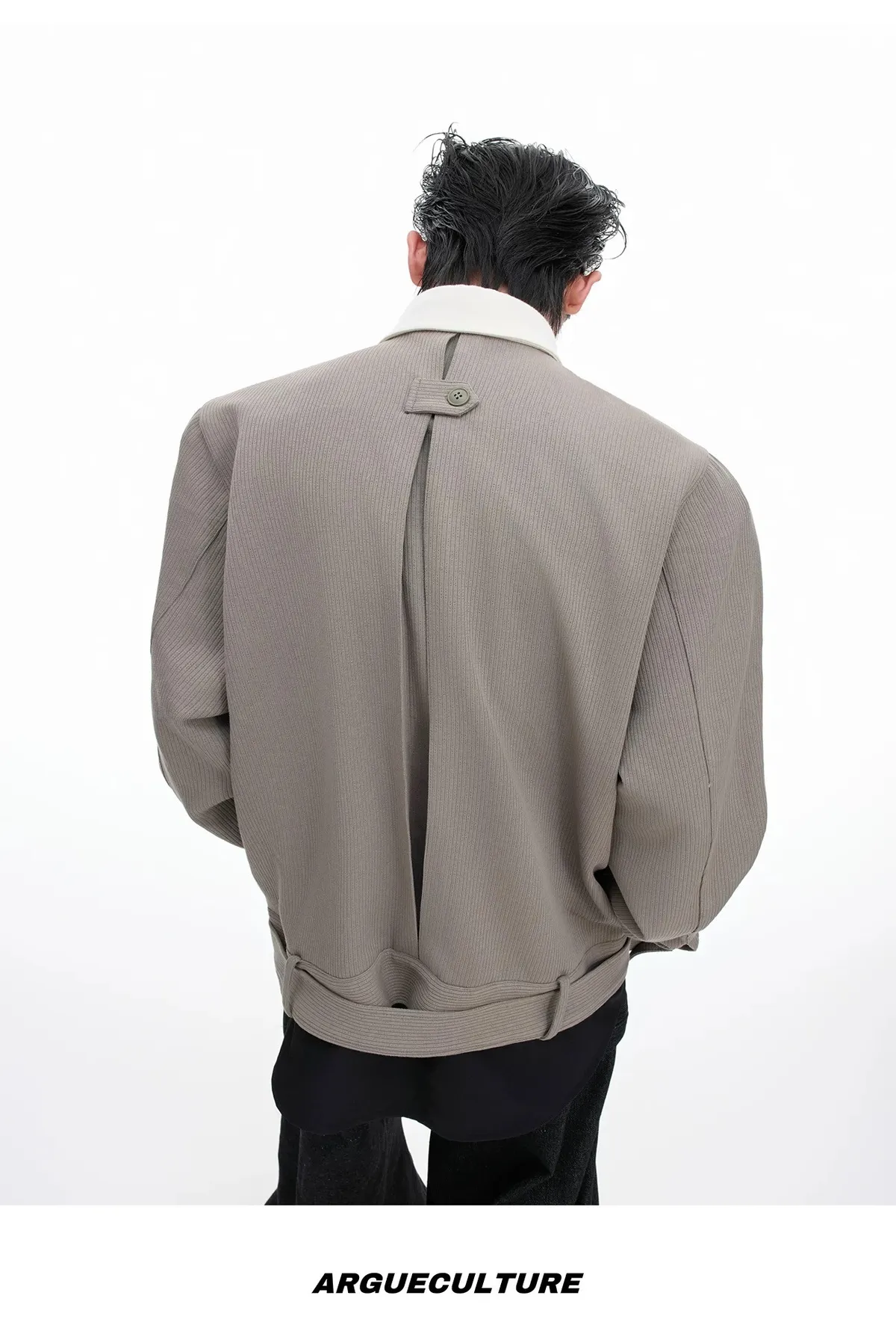 ARGUE 古典輪廓 撞色翻領 工裝 外套(黑/灰/杏)