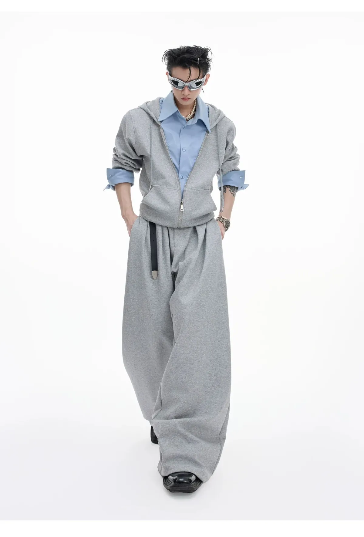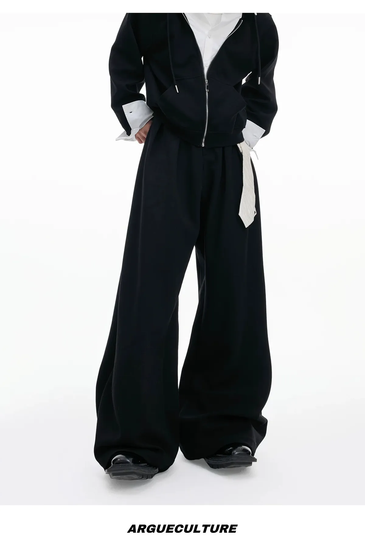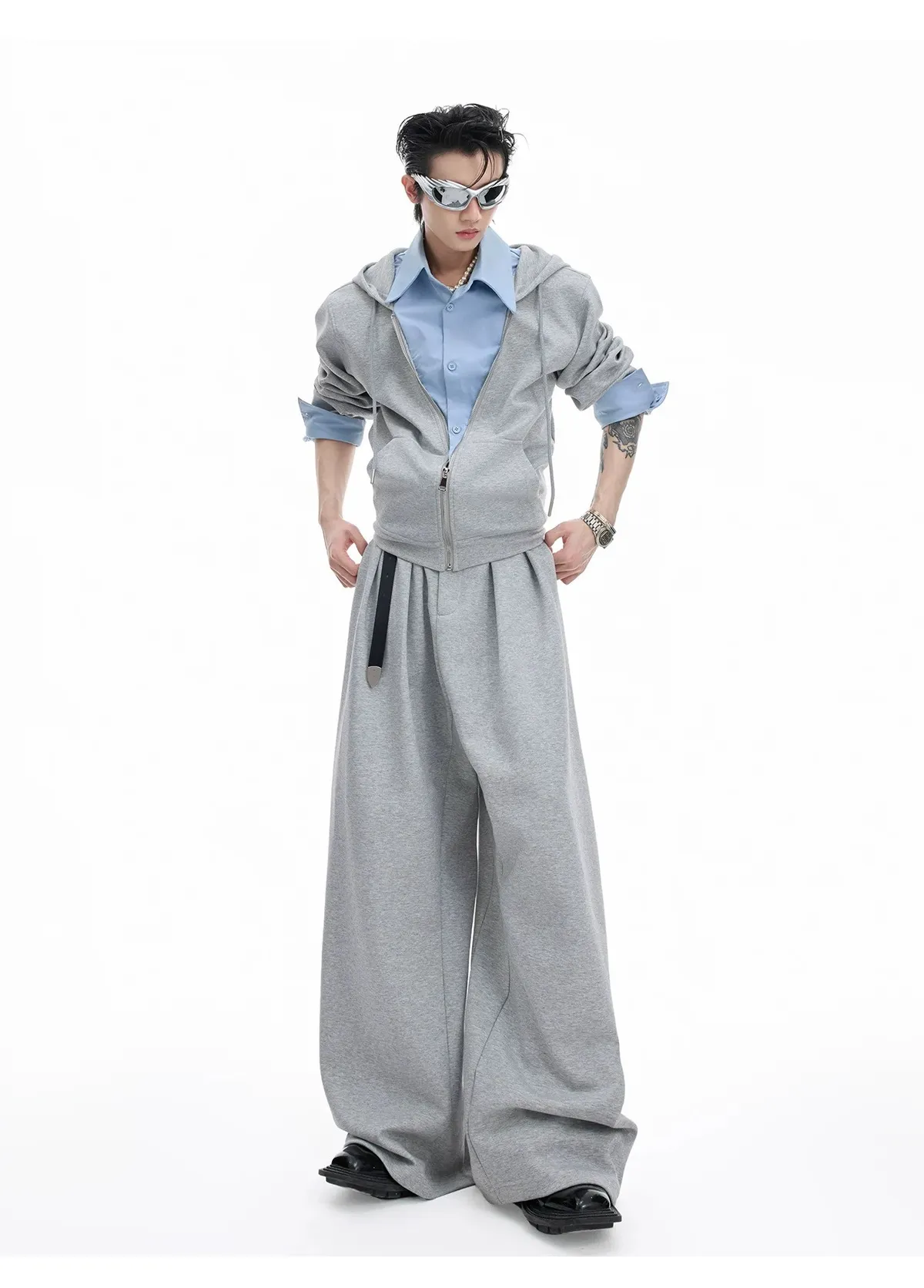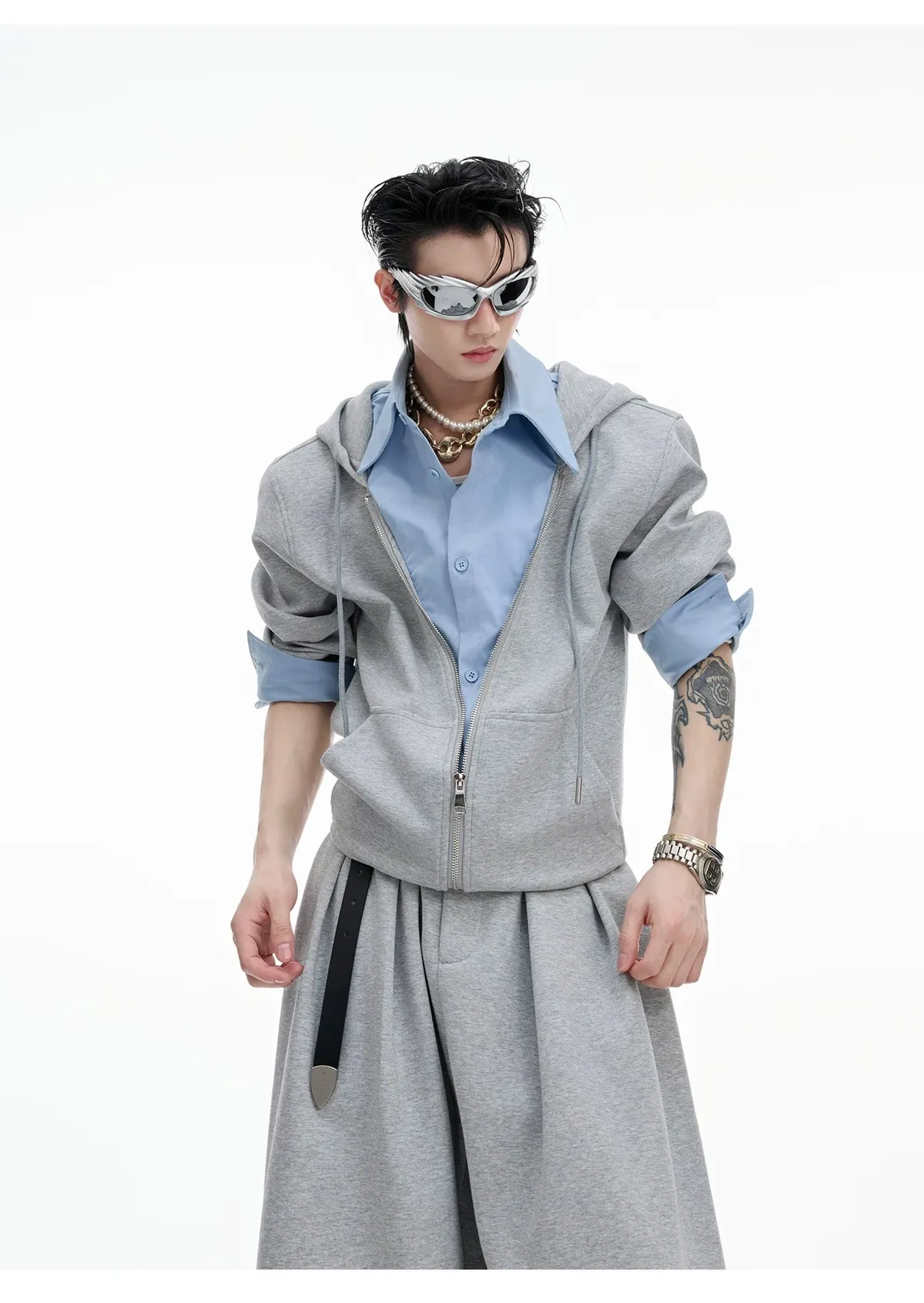 ARGUE 異材質拼接 連帽短袖 西裝褲 套裝(黑/灰)