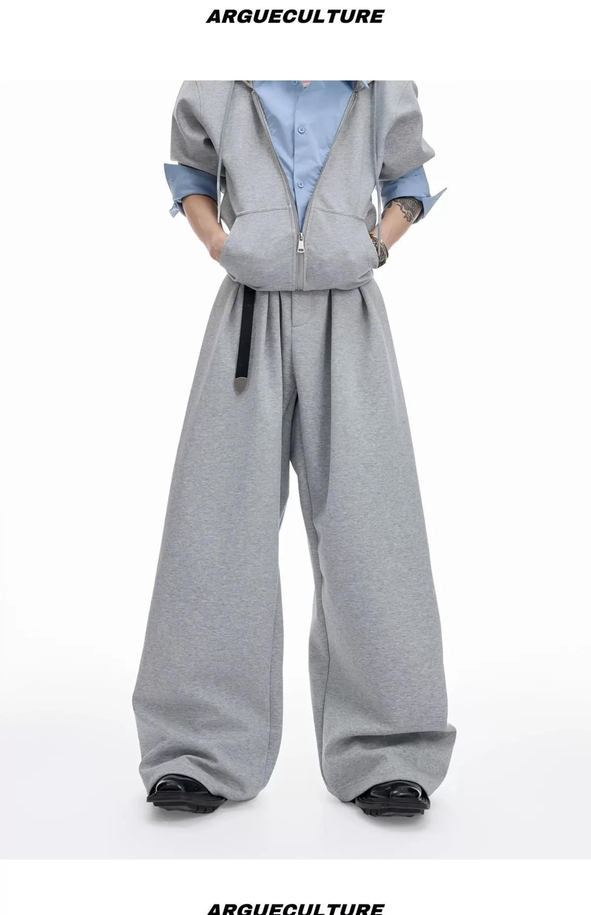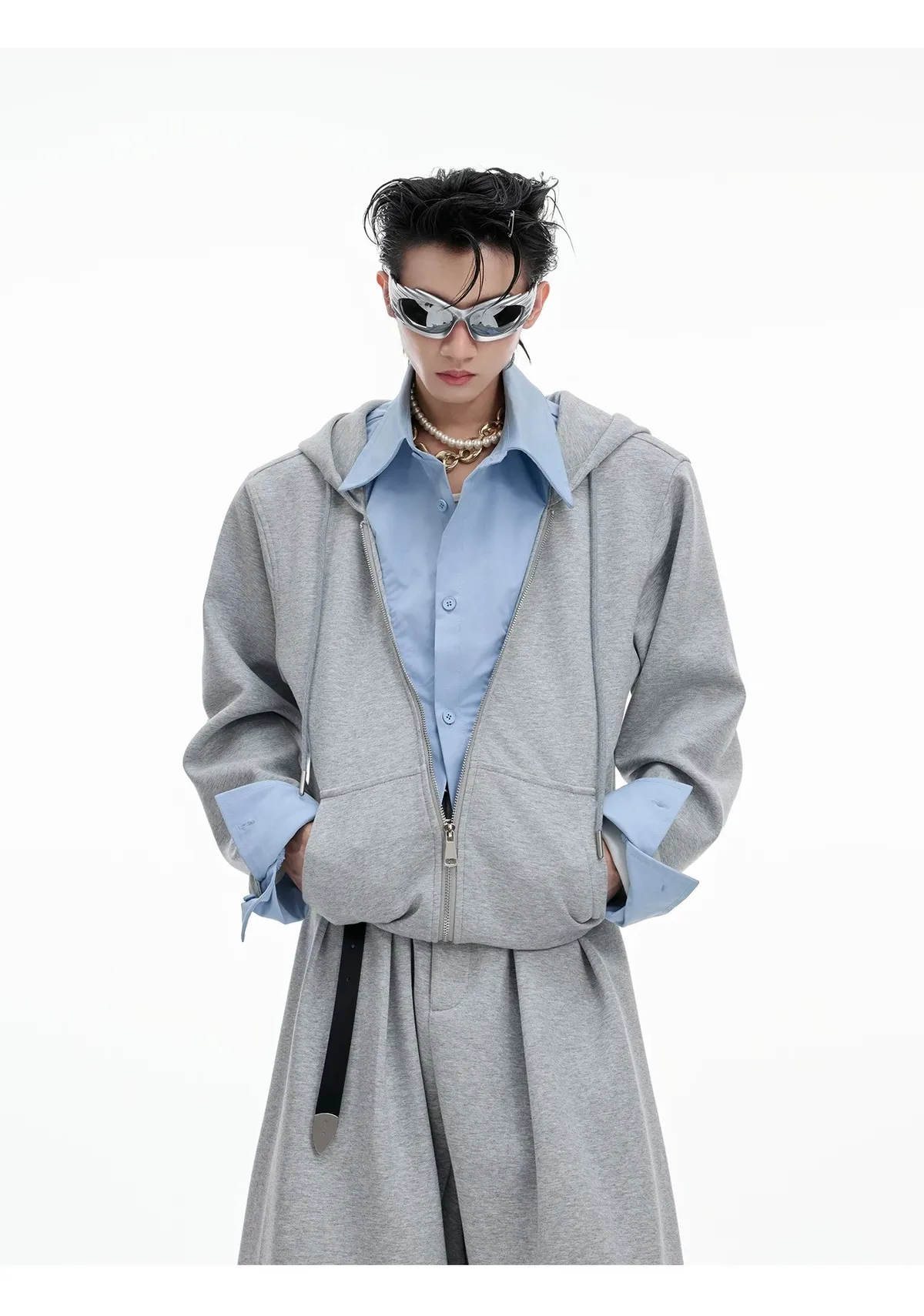 ARGUE 襯衫拼接 連帽外套 棉褲 套裝(黑/灰)