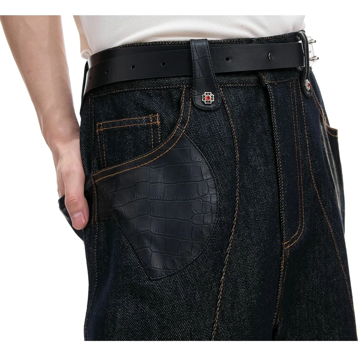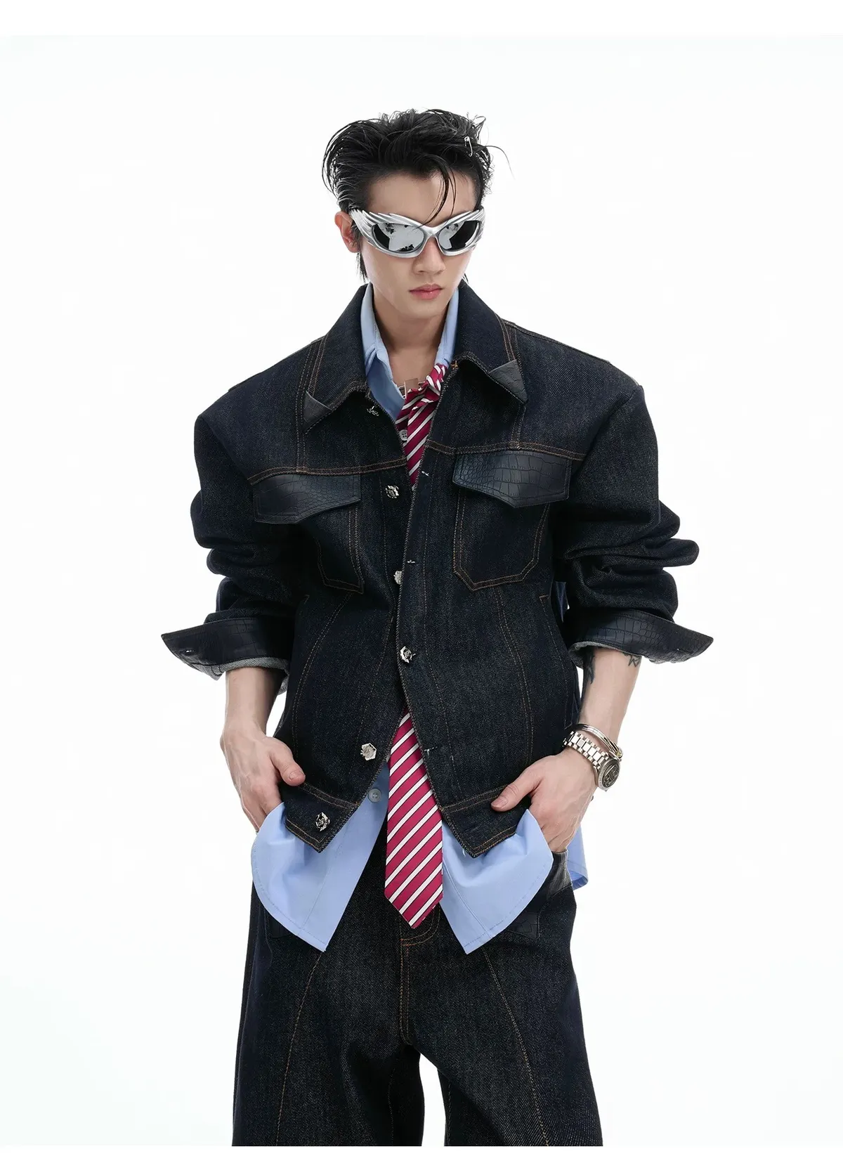 ARGUE 原牛丹寧 鱷魚皮拼接 牛仔外套 牛仔褲 套裝(原牛色)