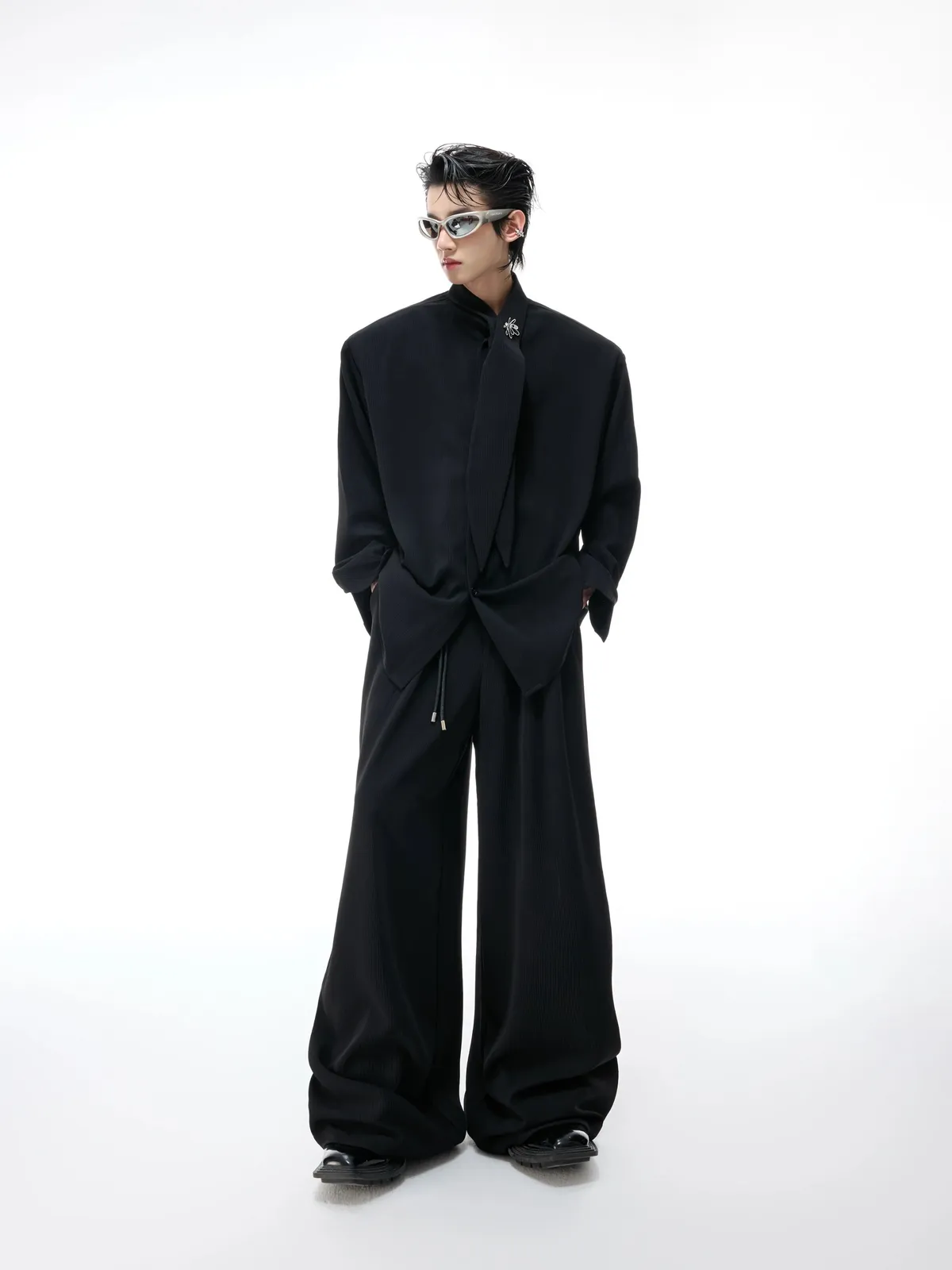 ARGUE 飄帶領巾 胸花別針 襯衫 西裝褲 套裝(黑/棕/白)
