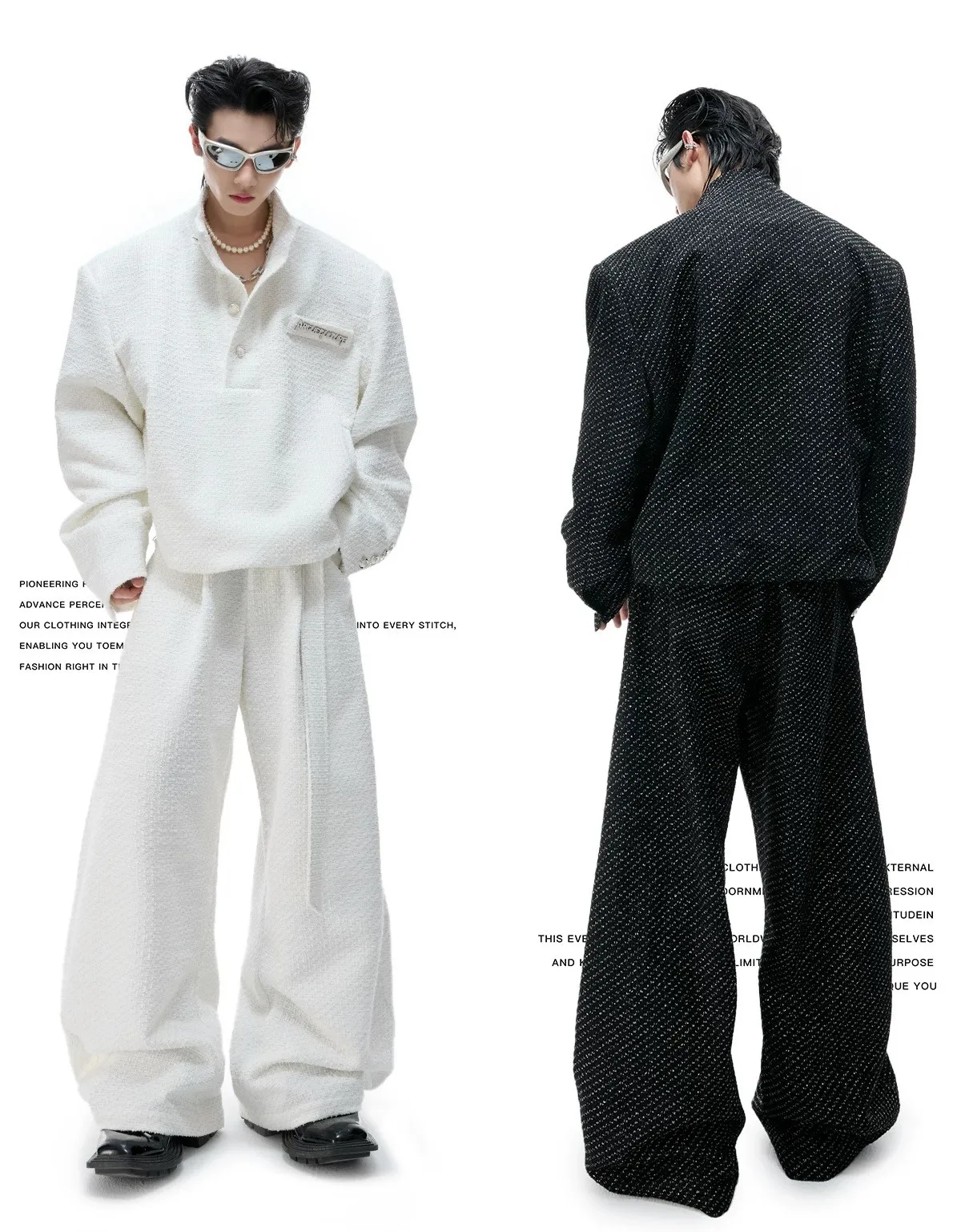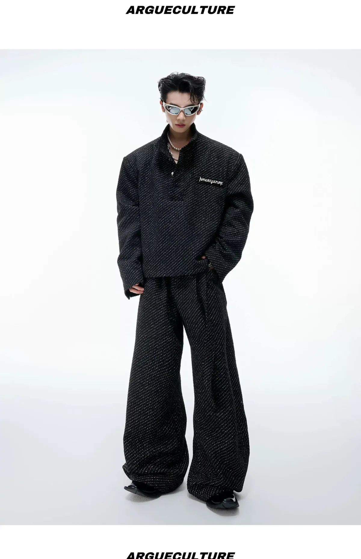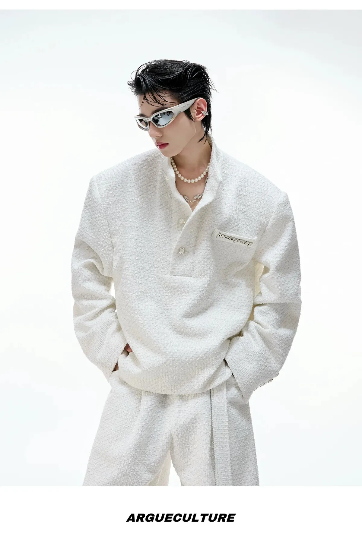 ARGUE 小香風 重磅紋理 POLO衫 長褲 套裝(黑/白)