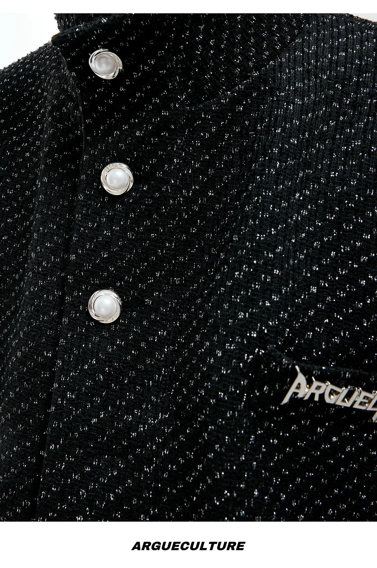 ARGUE 小香風 珍珠別針 外套(黑/灰)