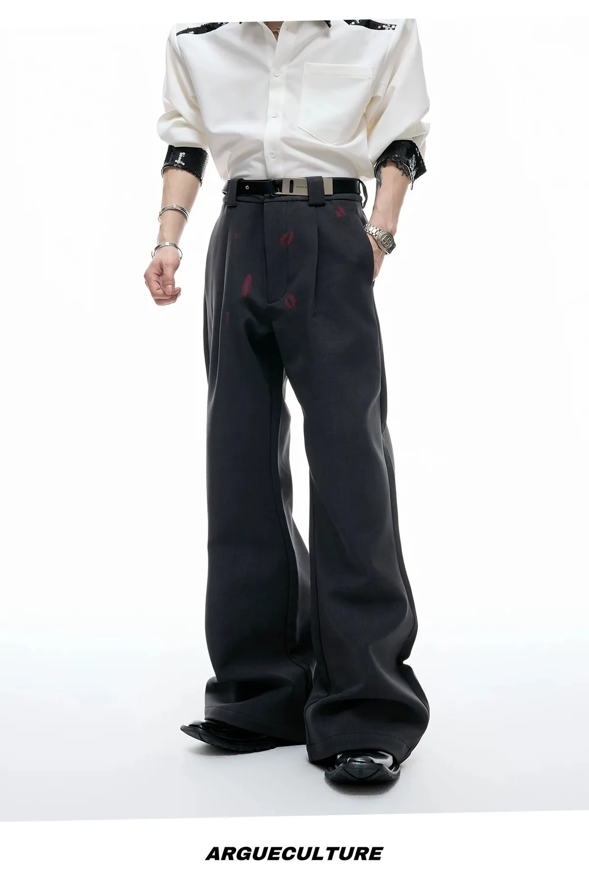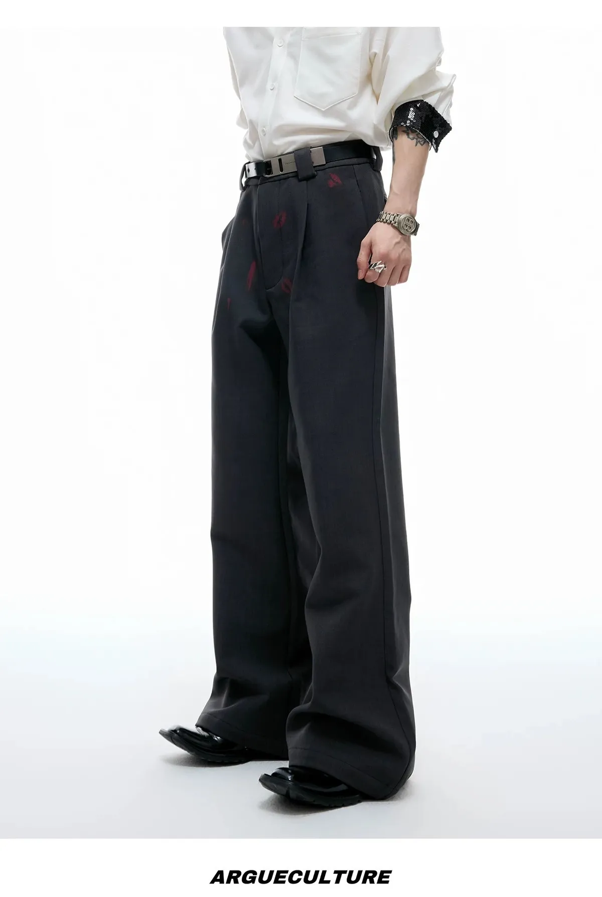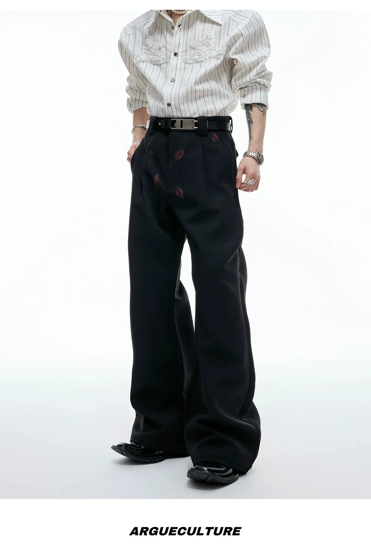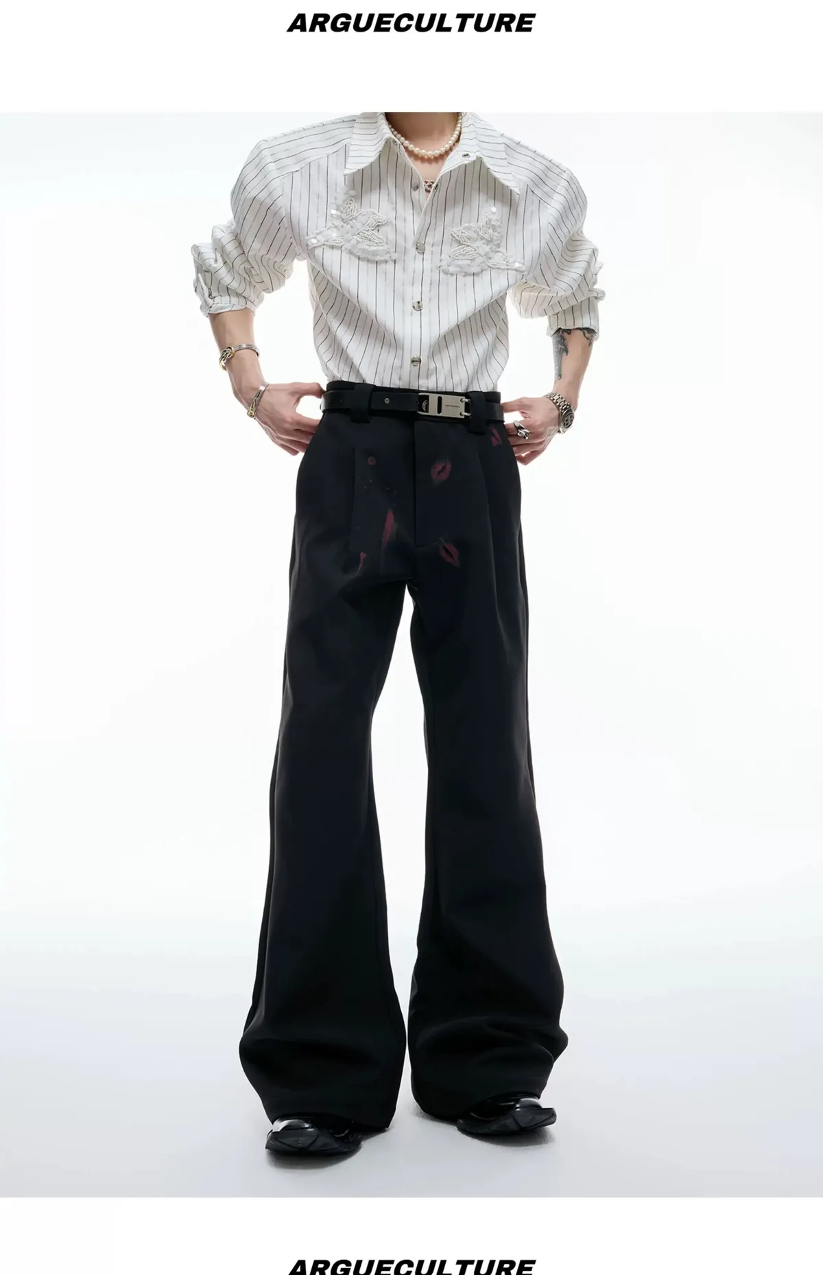 ARGUE 唇印 打褶微喇叭 西裝褲(黑/灰)