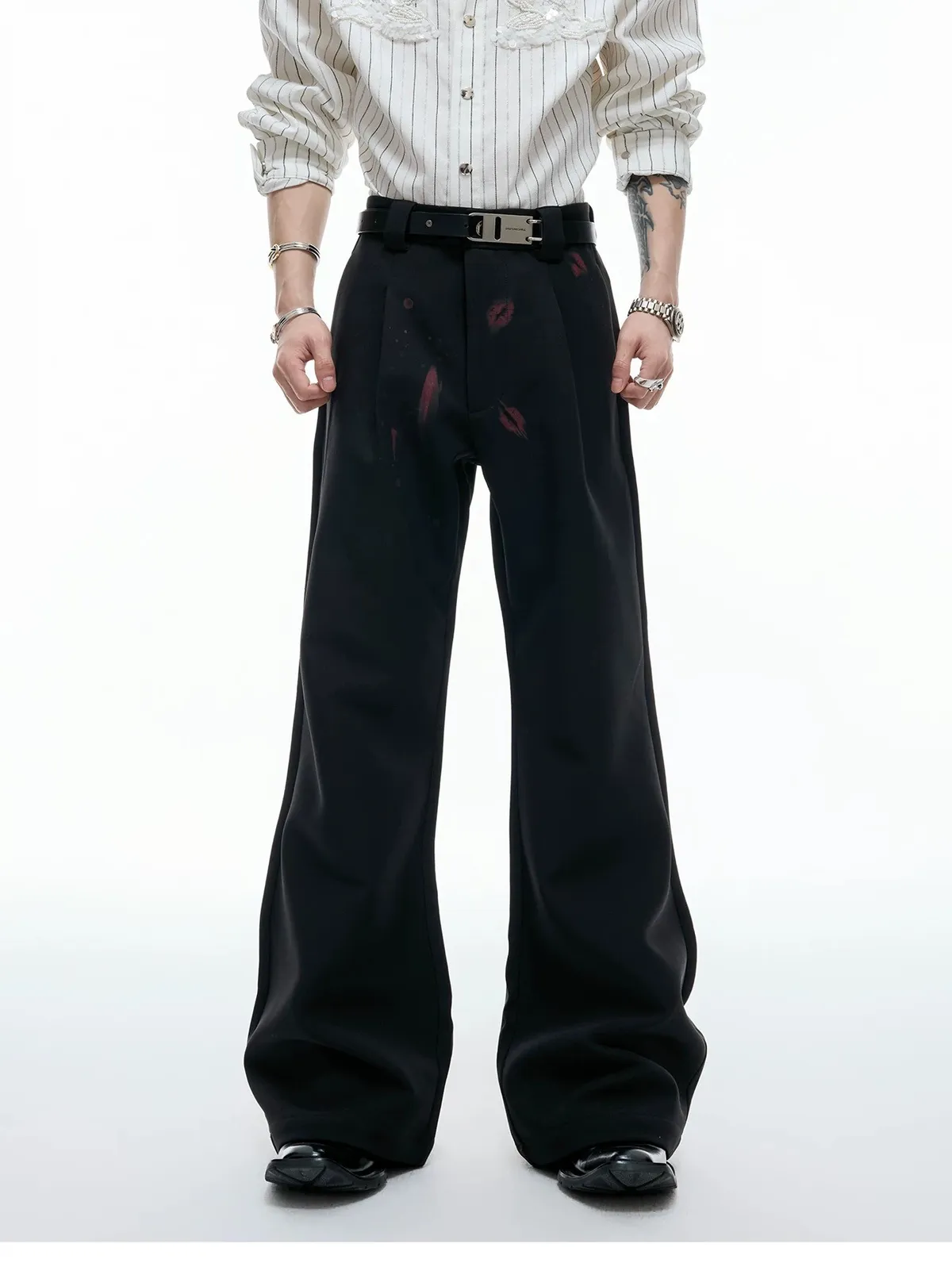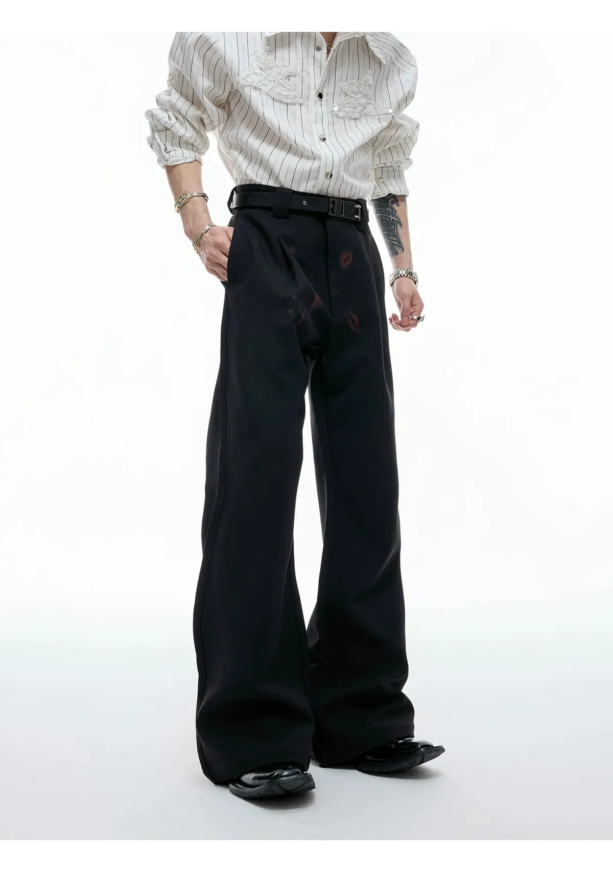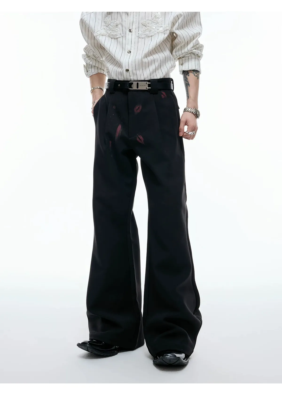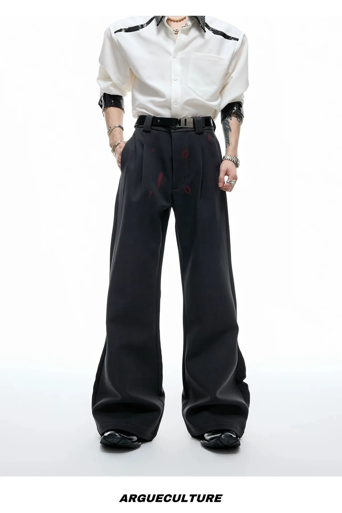 ARGUE 唇印 打褶微喇叭 西裝褲(黑/灰)