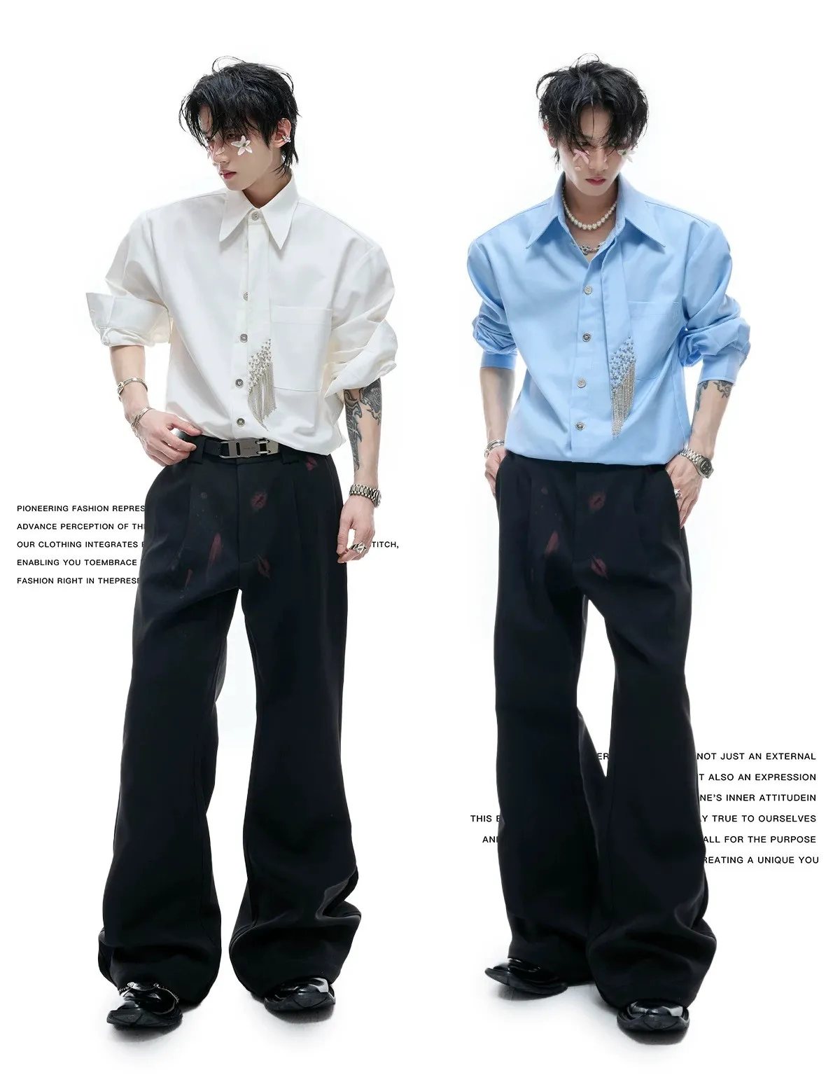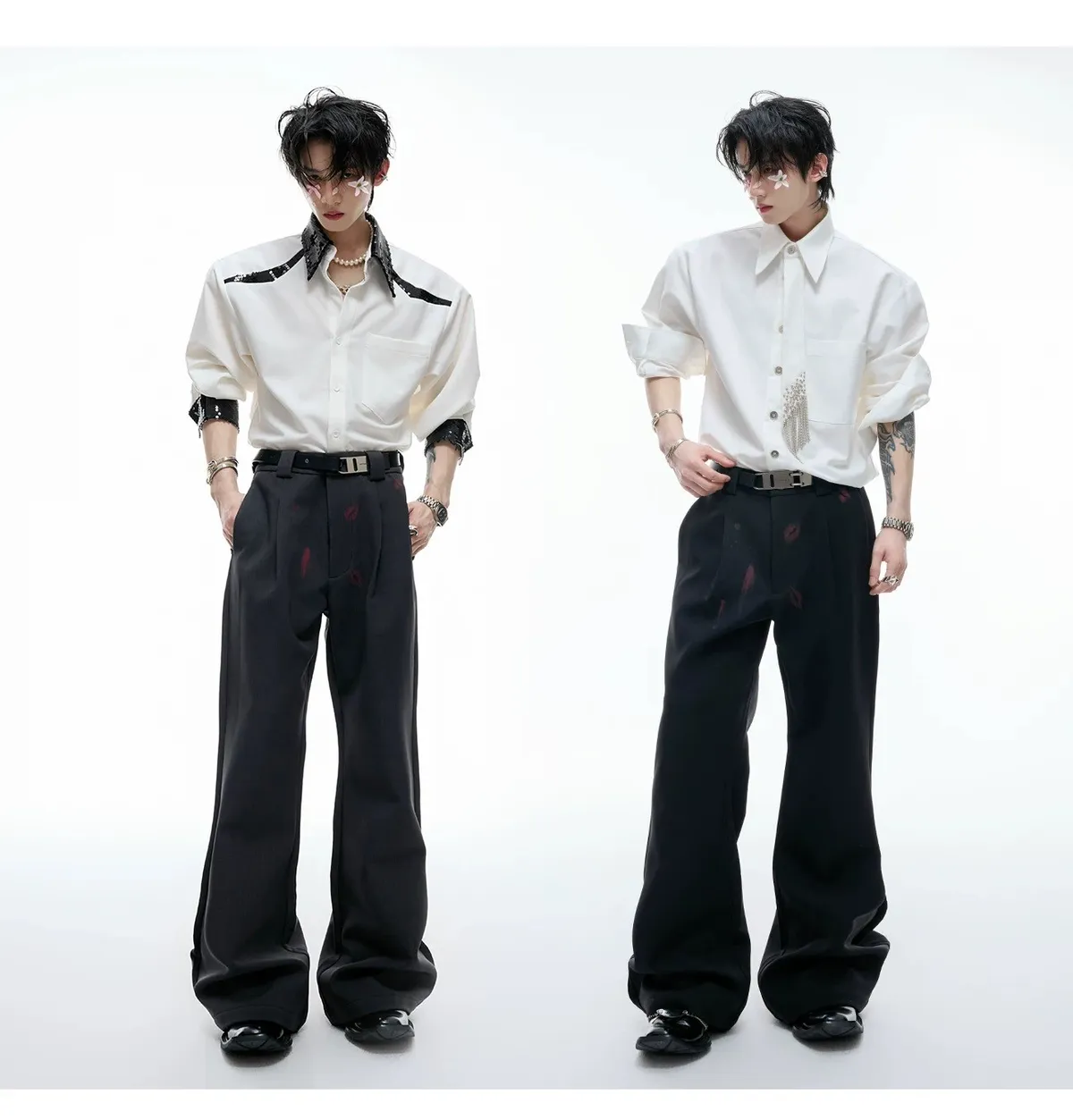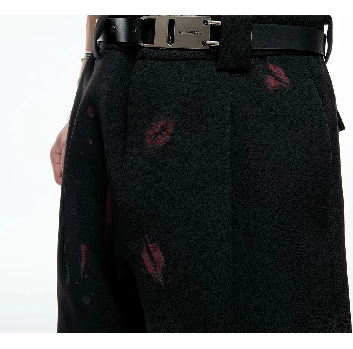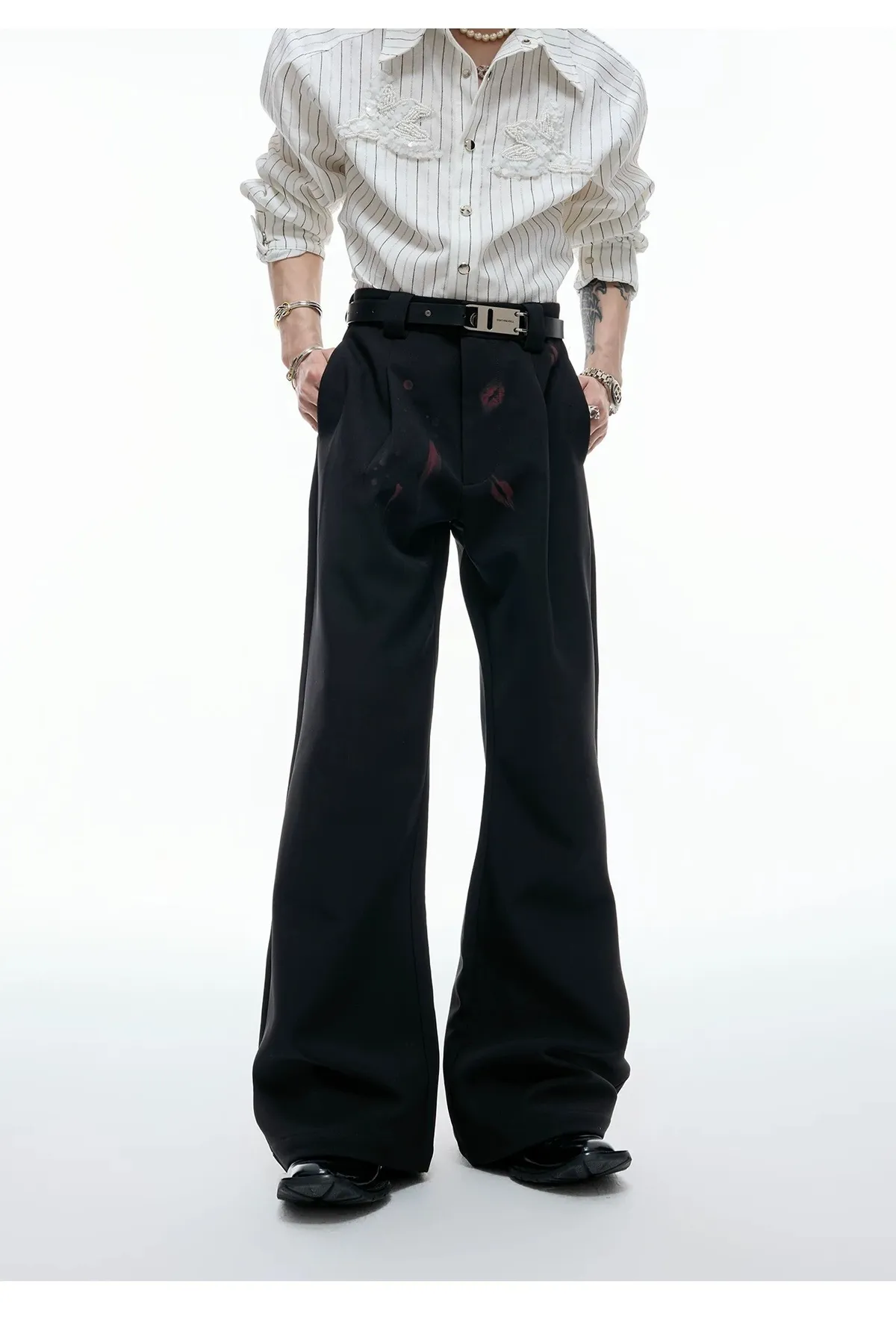 ARGUE 唇印 打褶微喇叭 西裝褲(黑/灰)