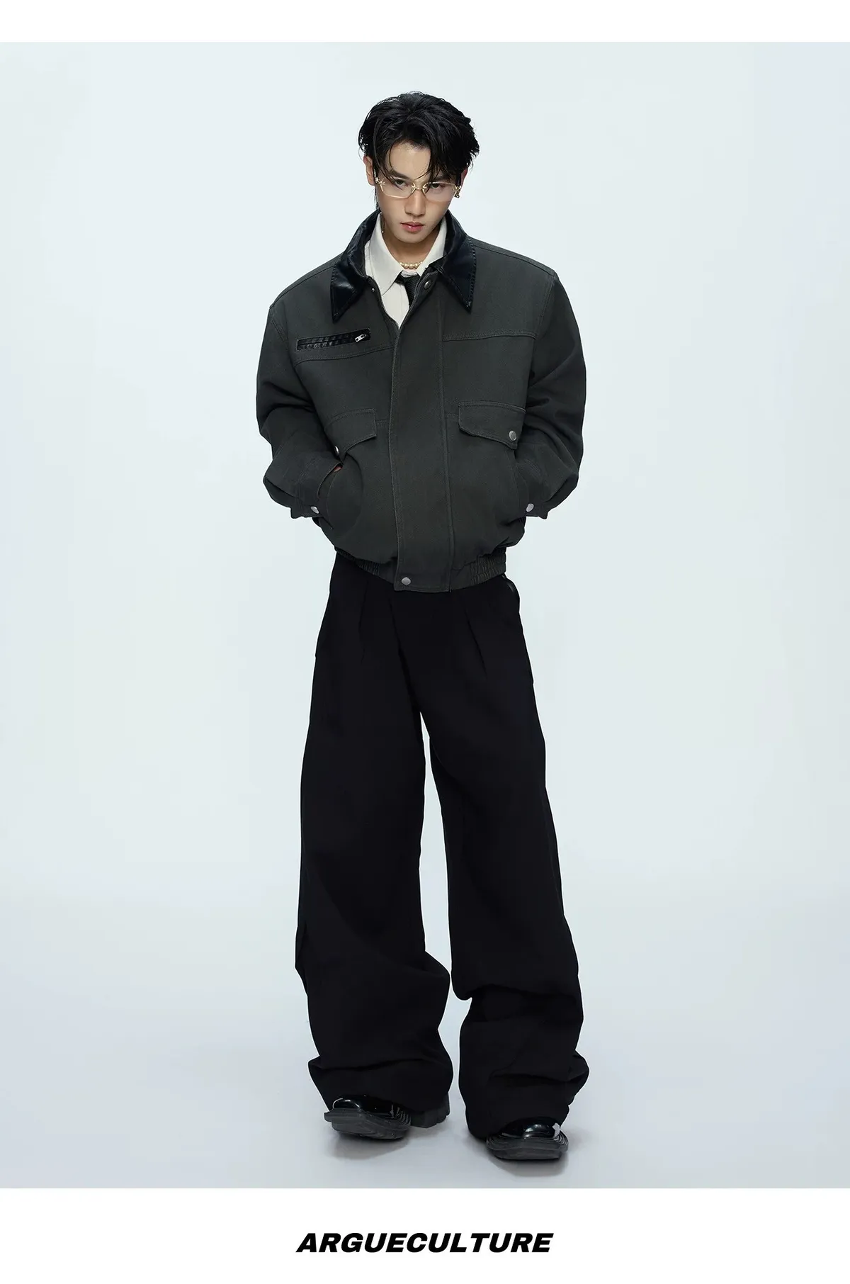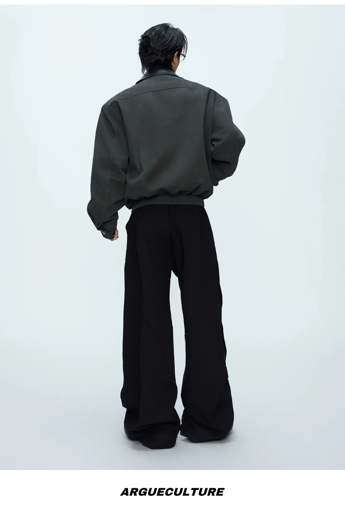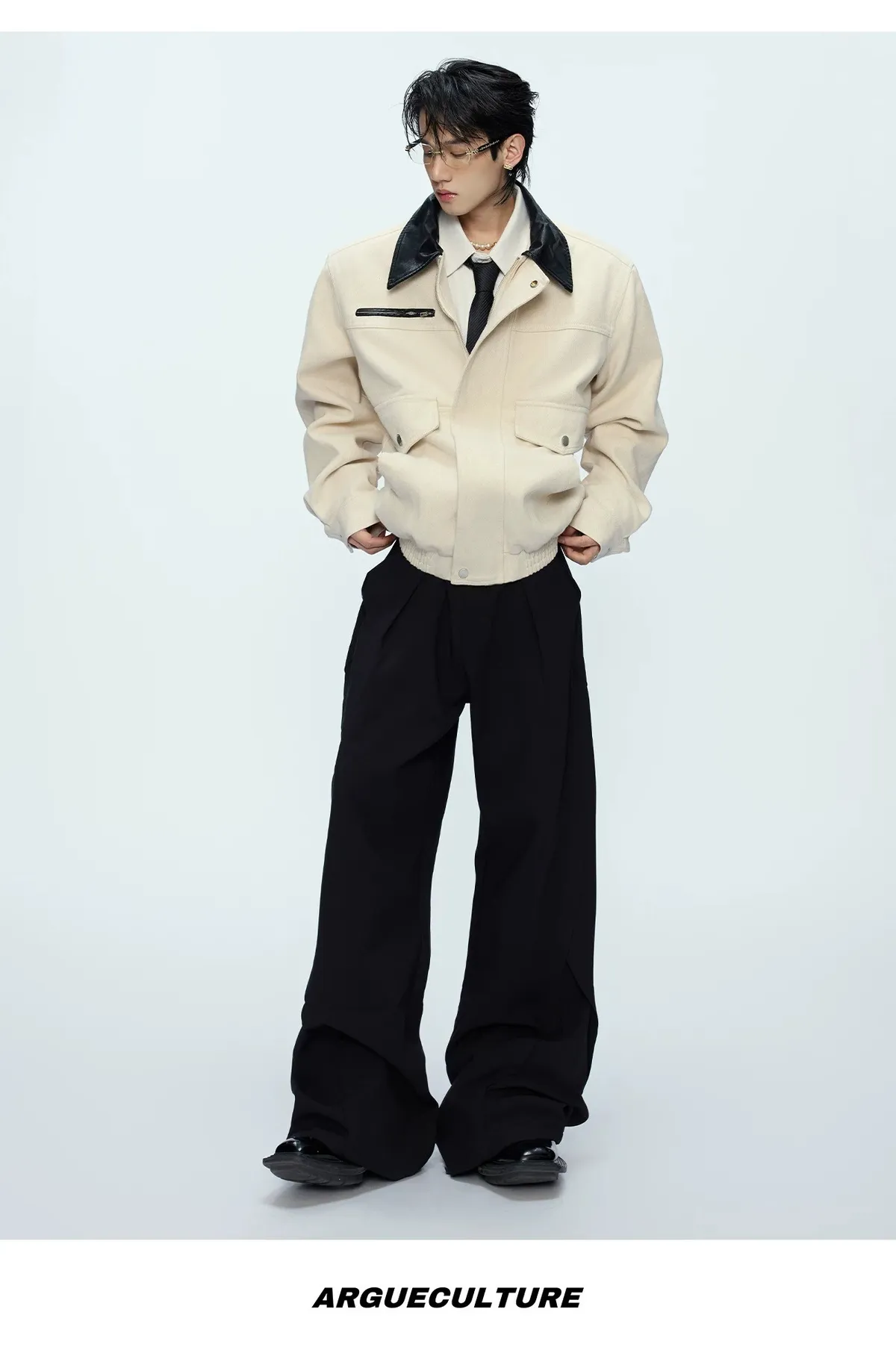 ARGUE 解構壓褶 闊腿 西裝褲(黑/杏)