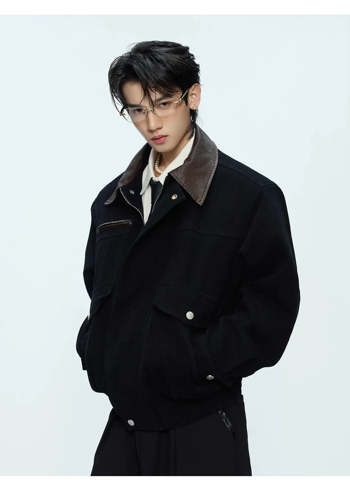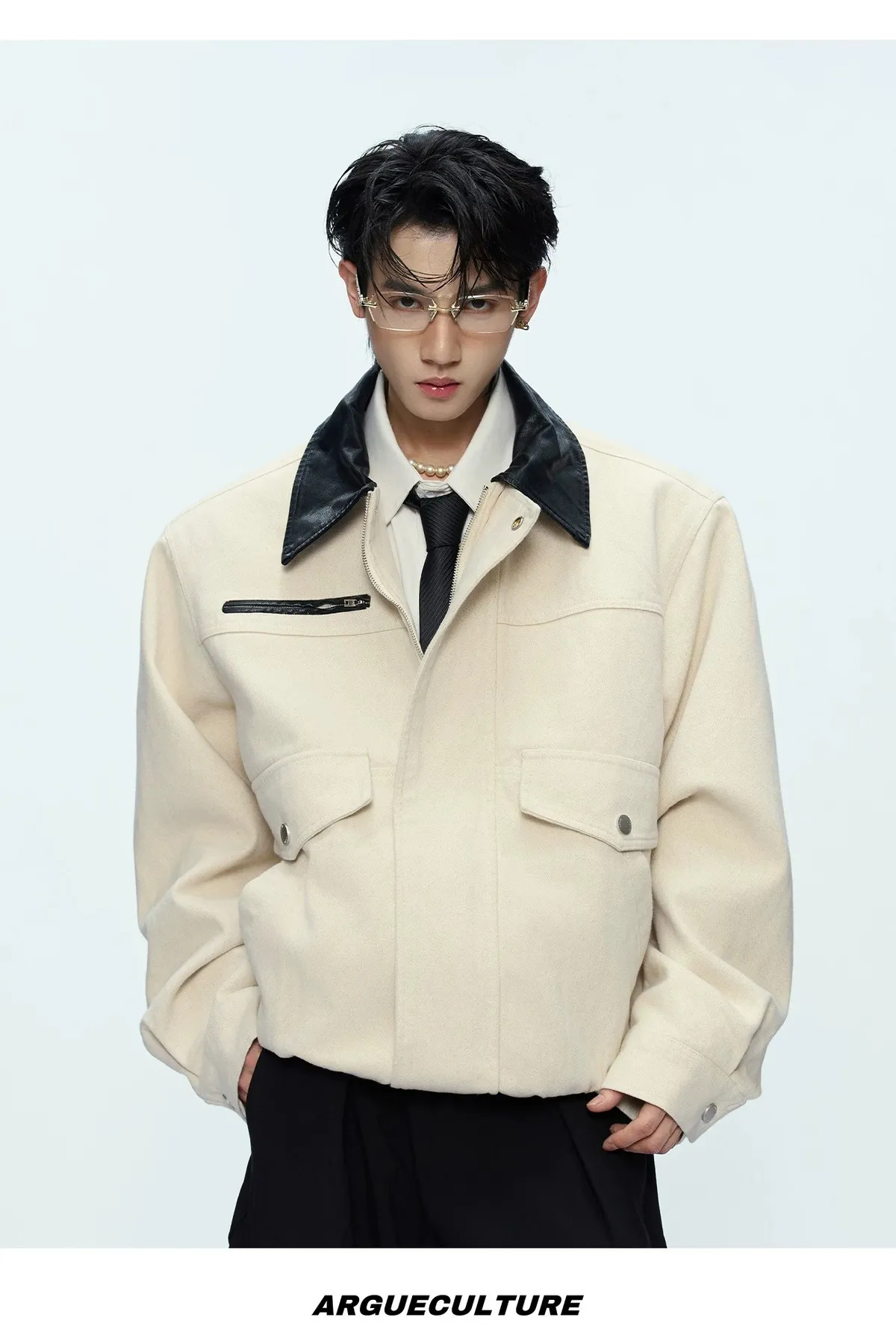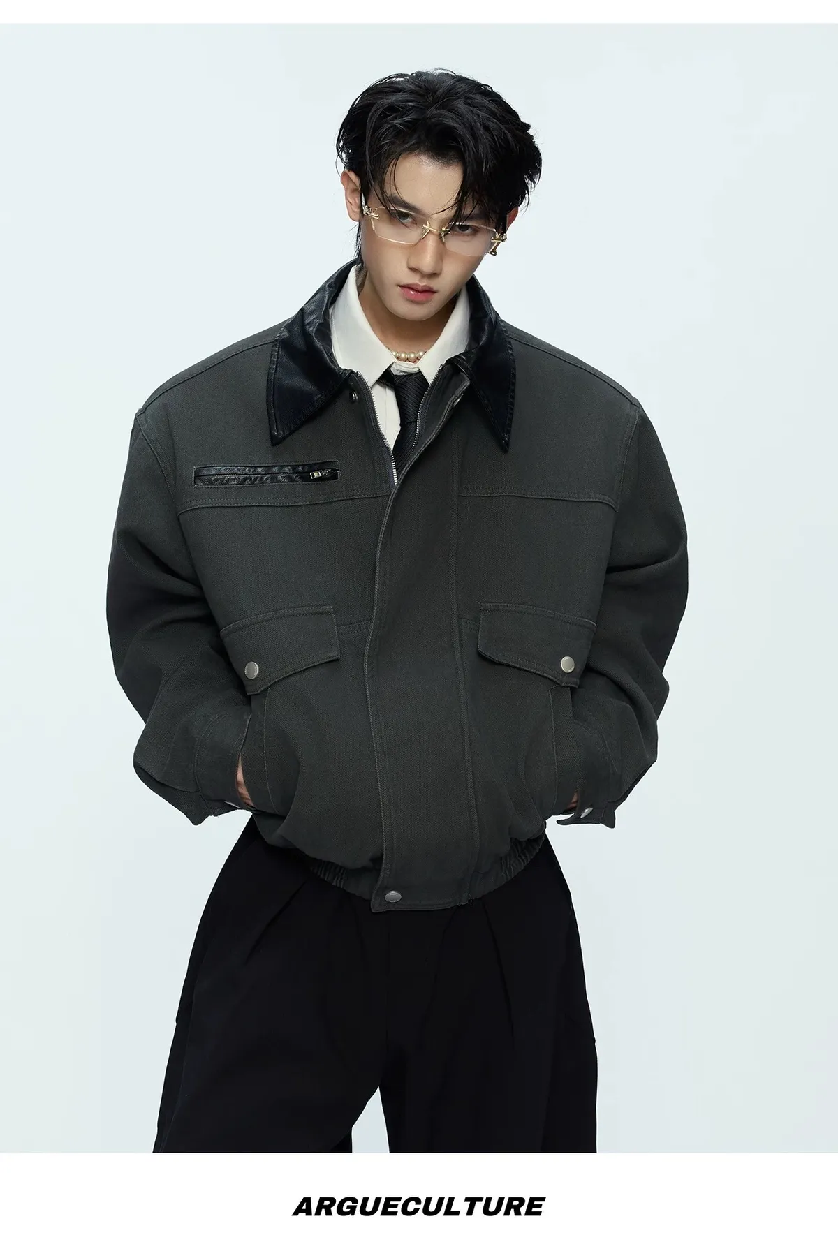 ARGUE 古典輪廓 撞色翻領 工裝 外套(黑/灰/杏)