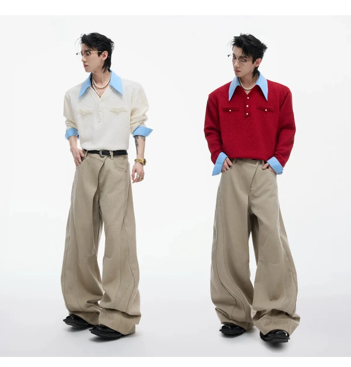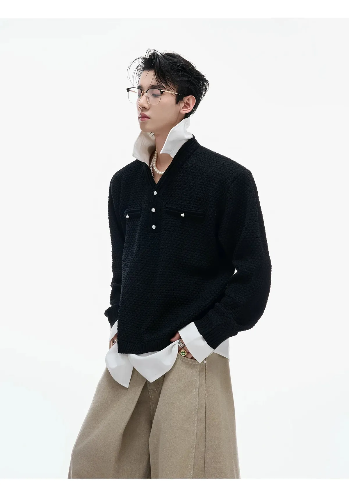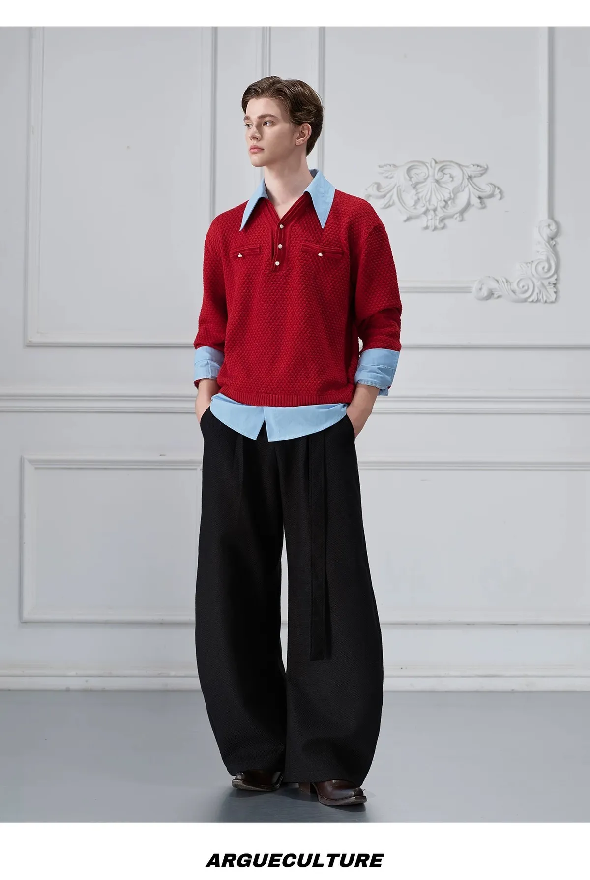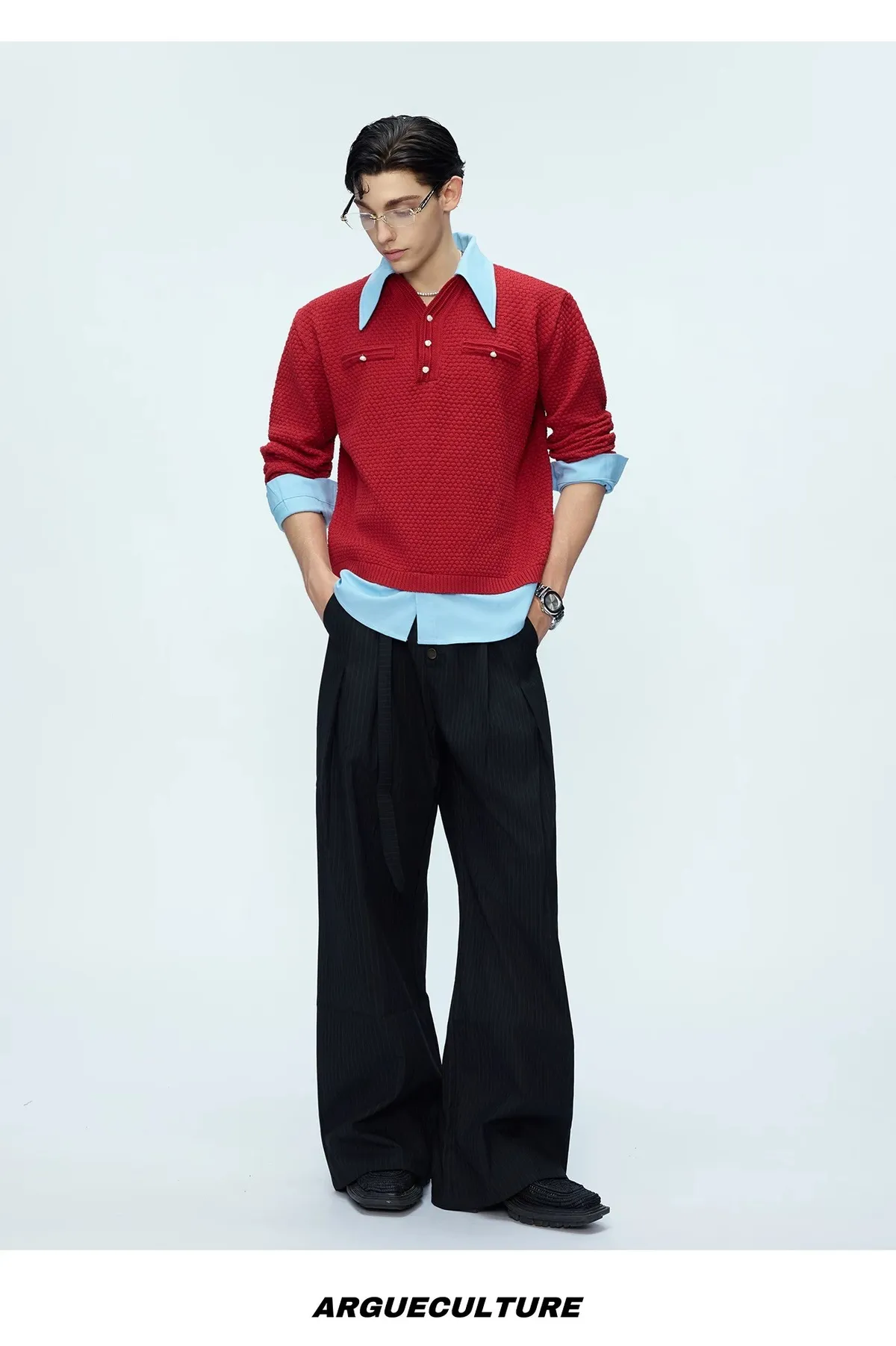 ARGUE 肌理感假兩件 撞色拼接 針織 POLO(黑/白/紅)