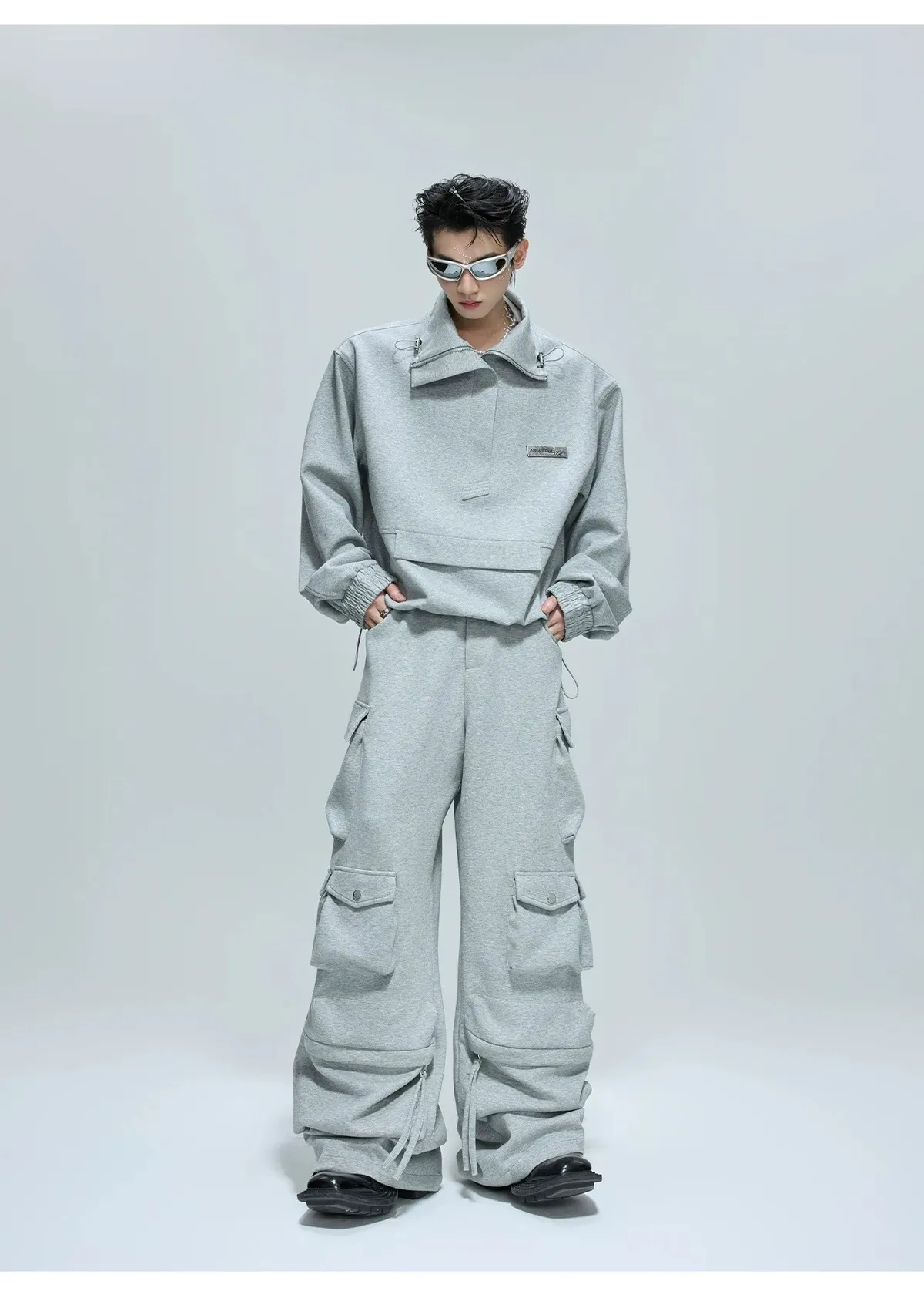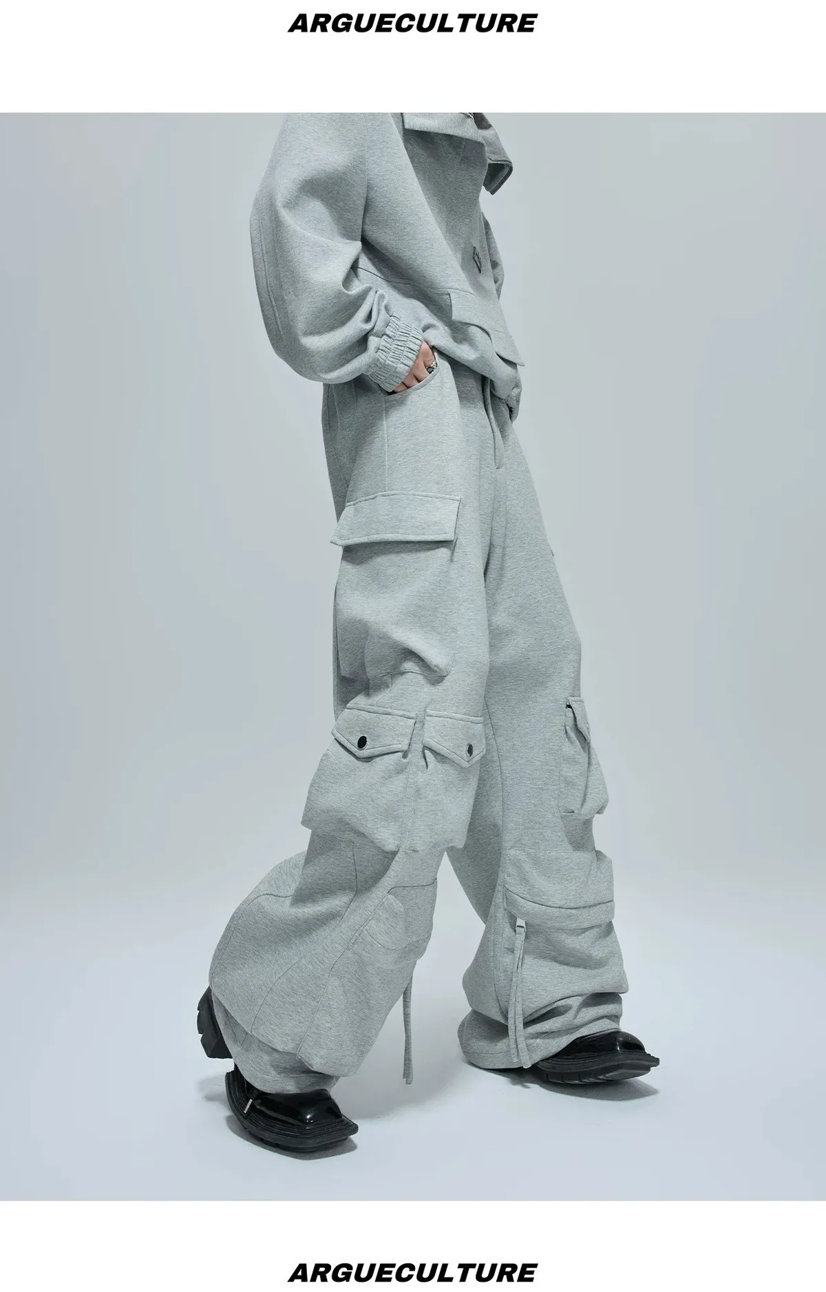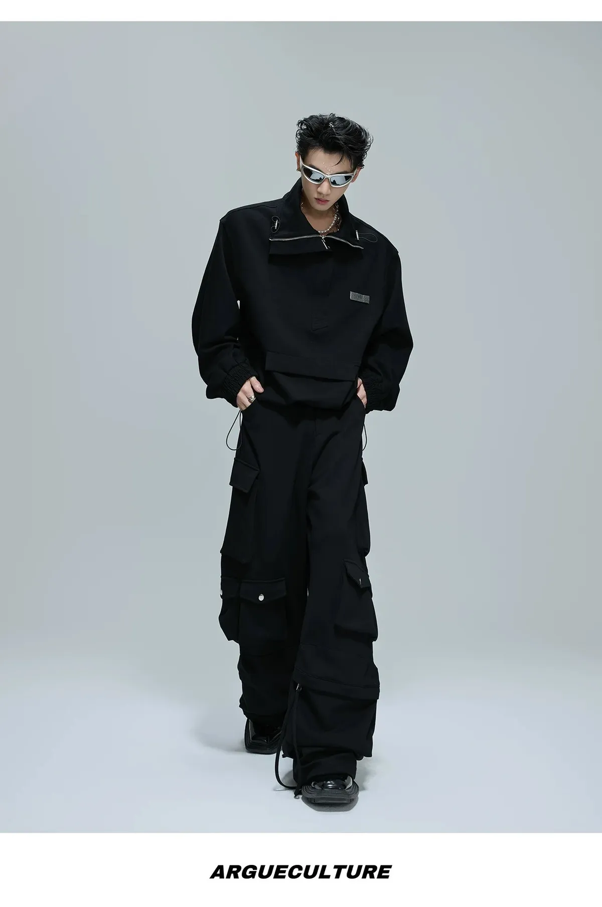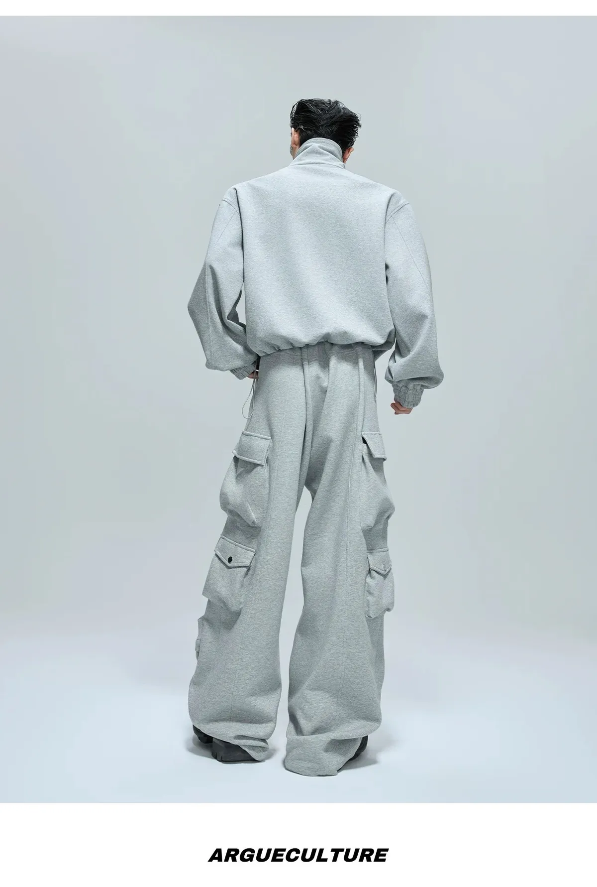 ARGUE 短版大學踢 口袋棉褲 套裝(黑/灰)