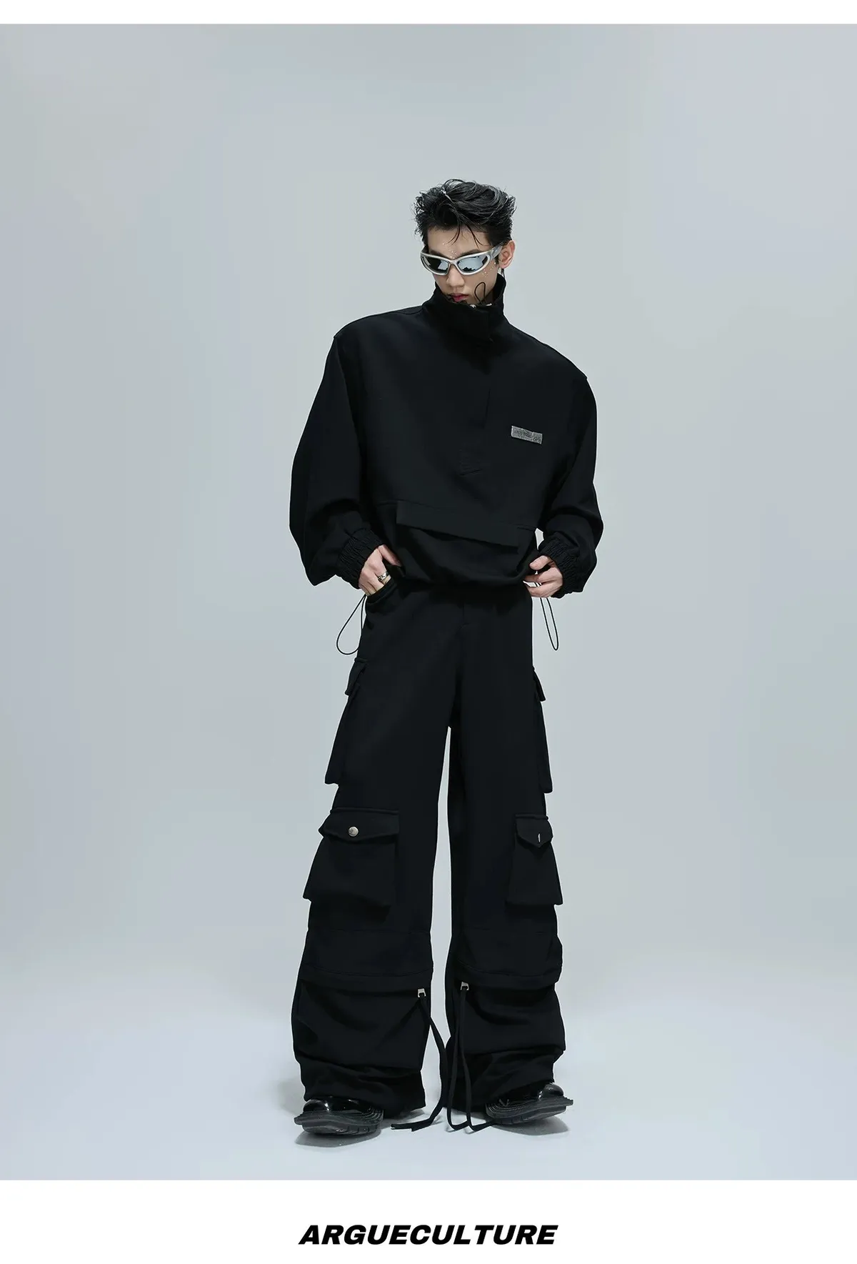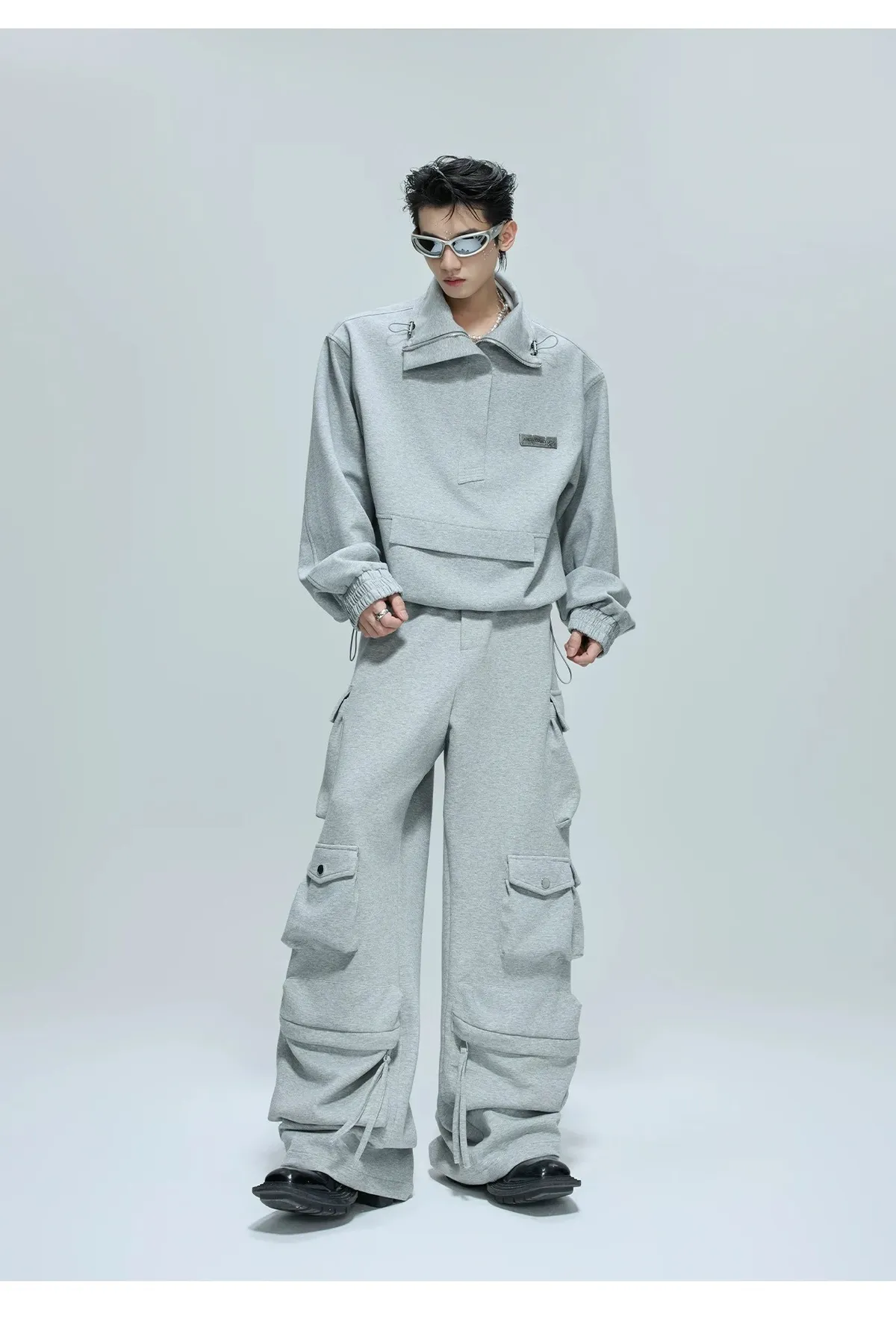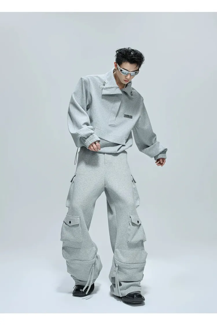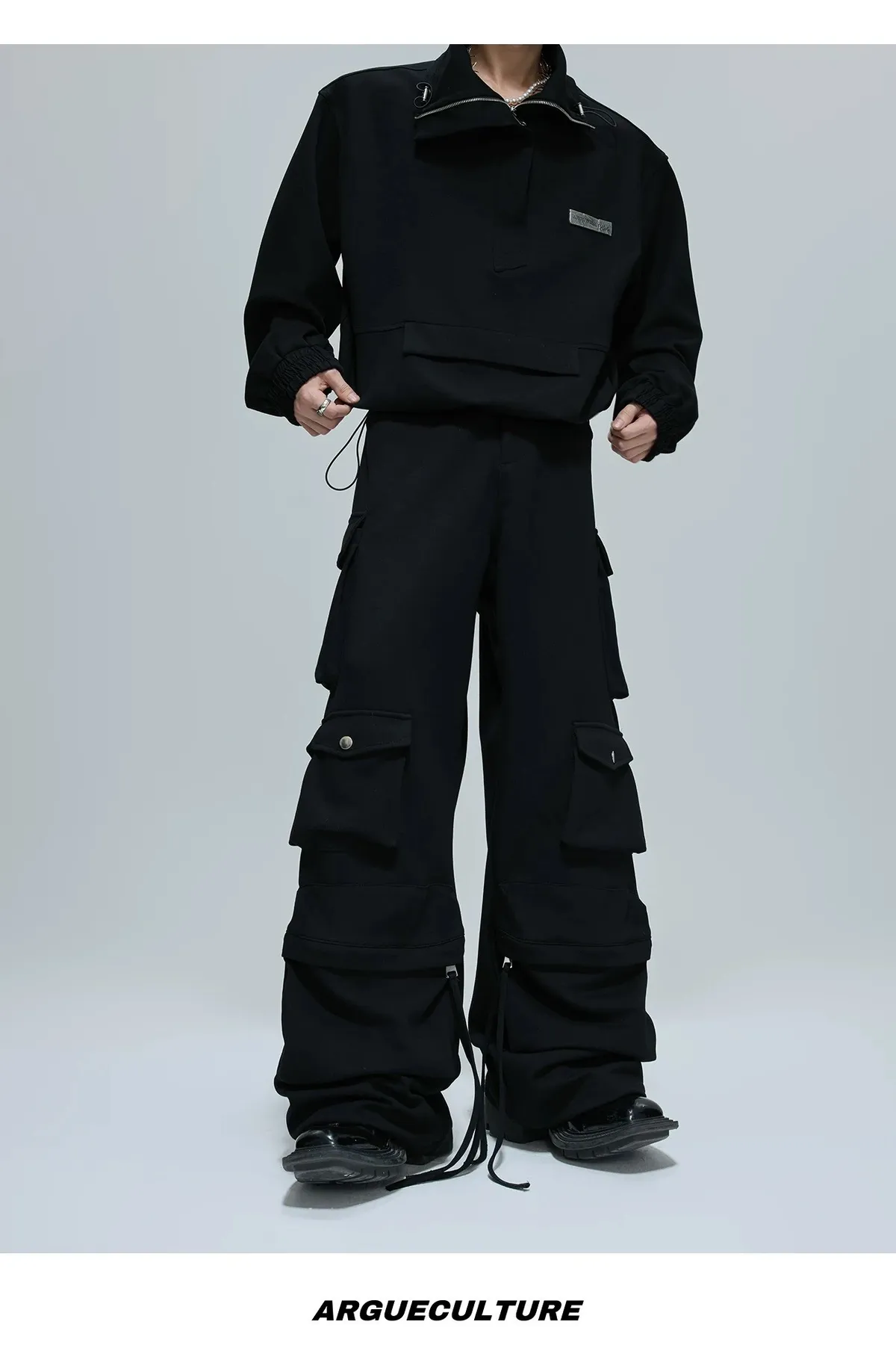 ARGUE 短版大學踢 口袋棉褲 套裝(黑/灰)