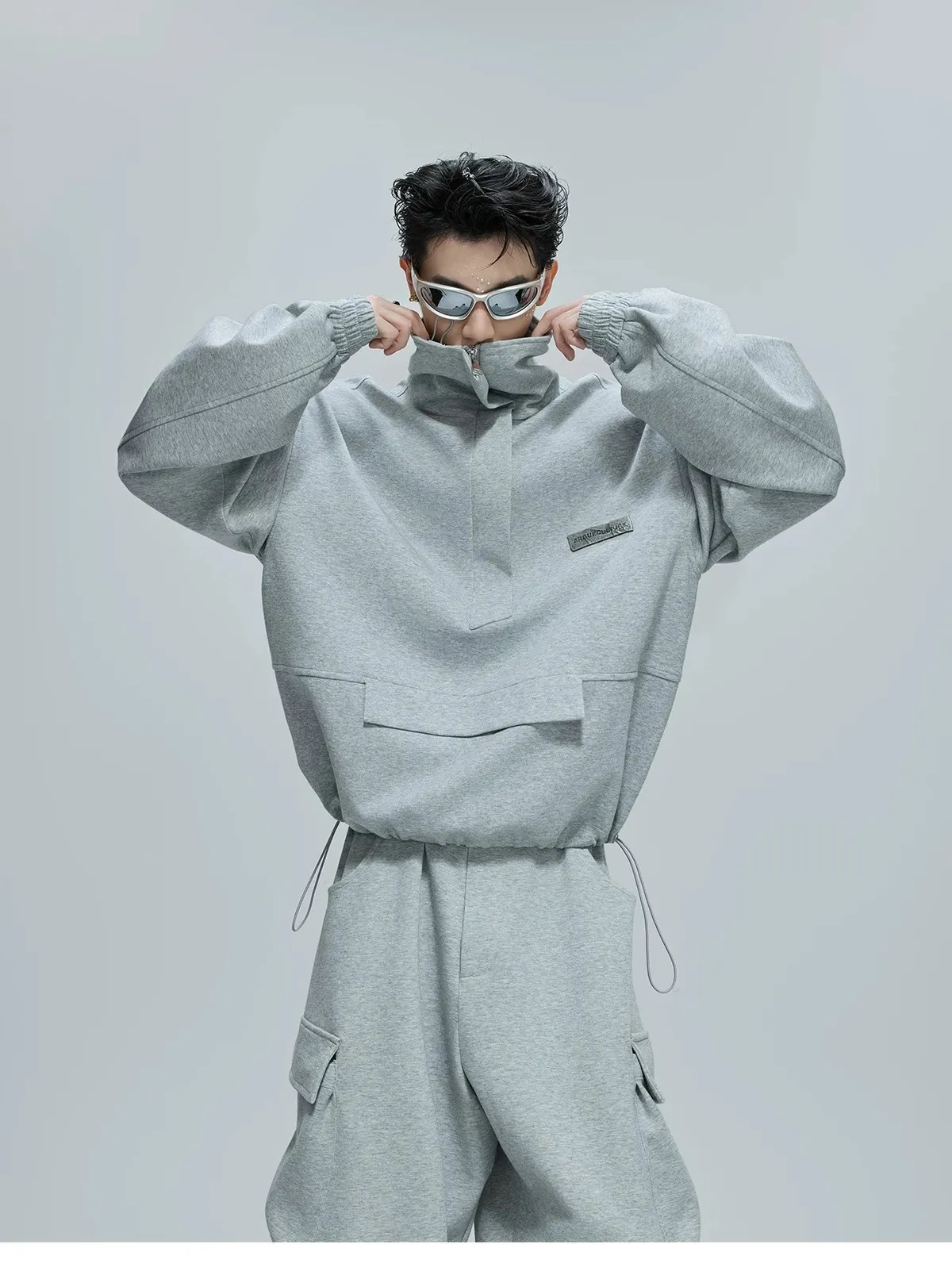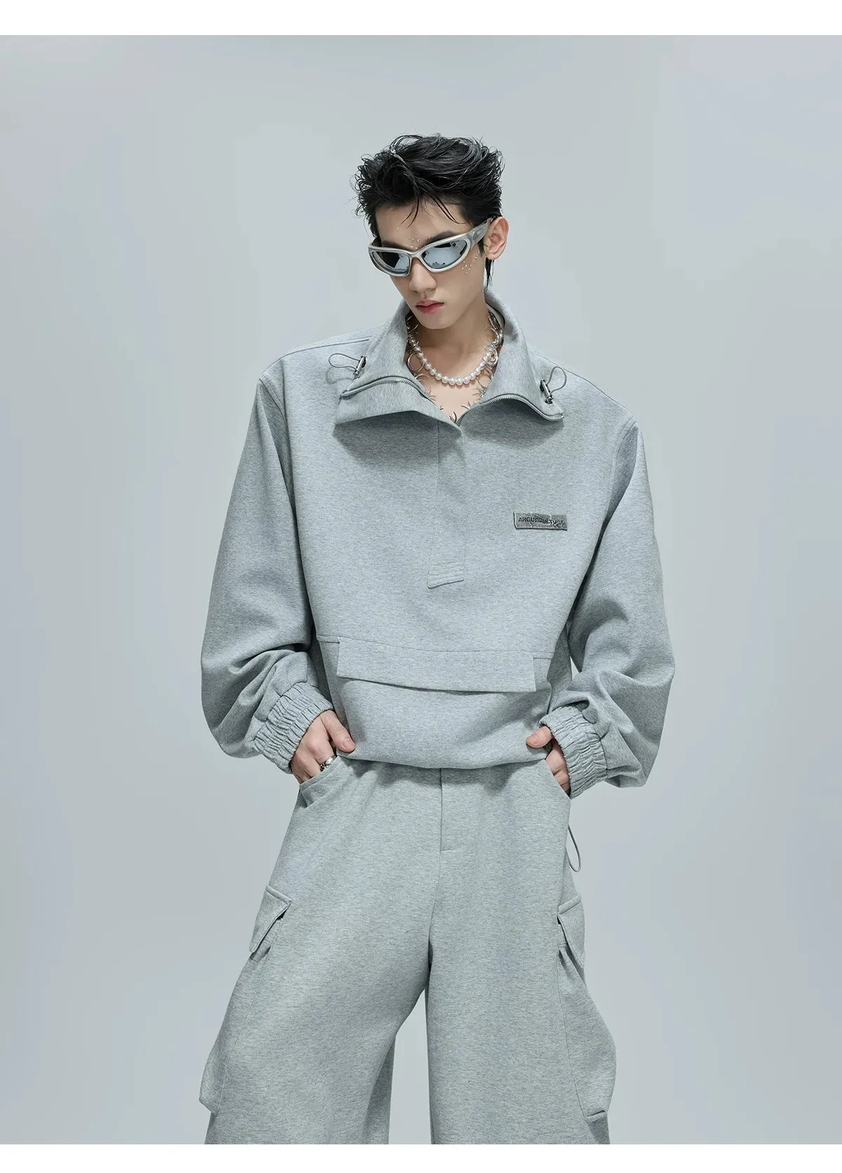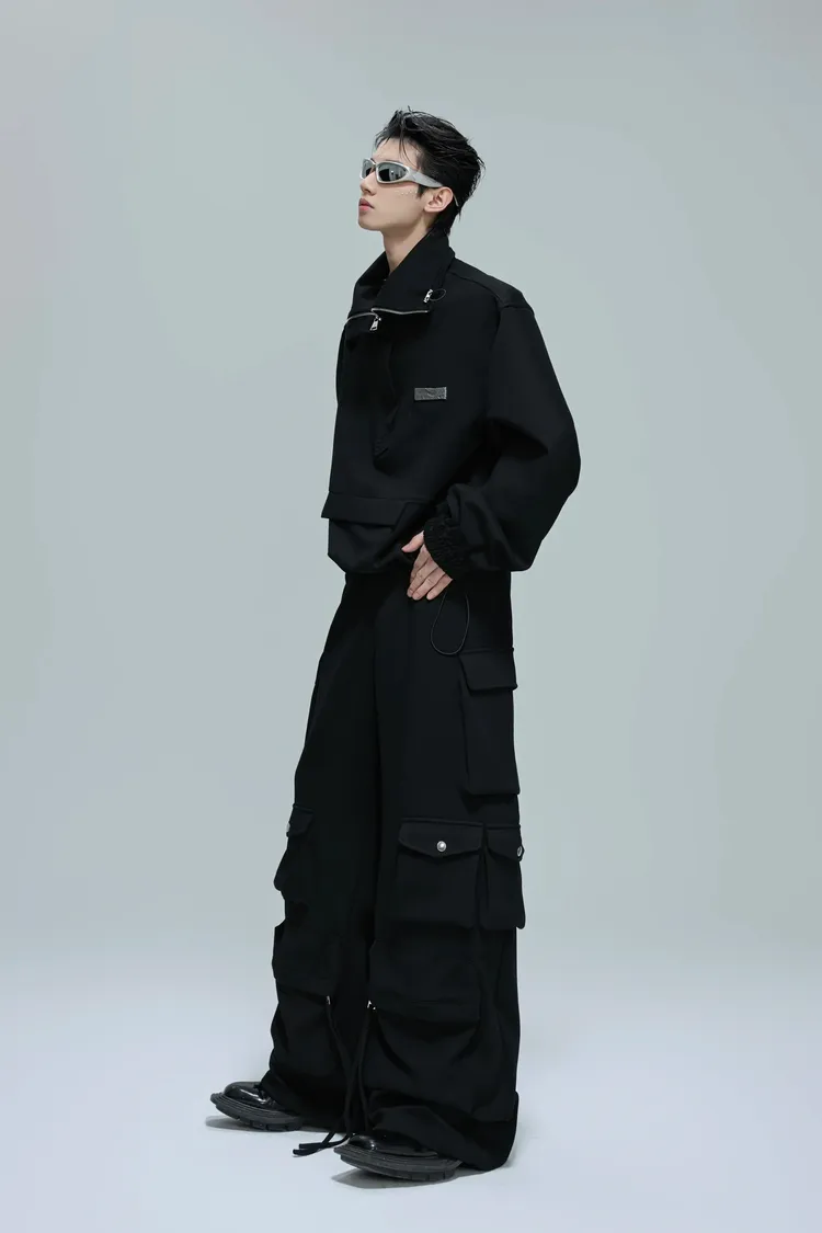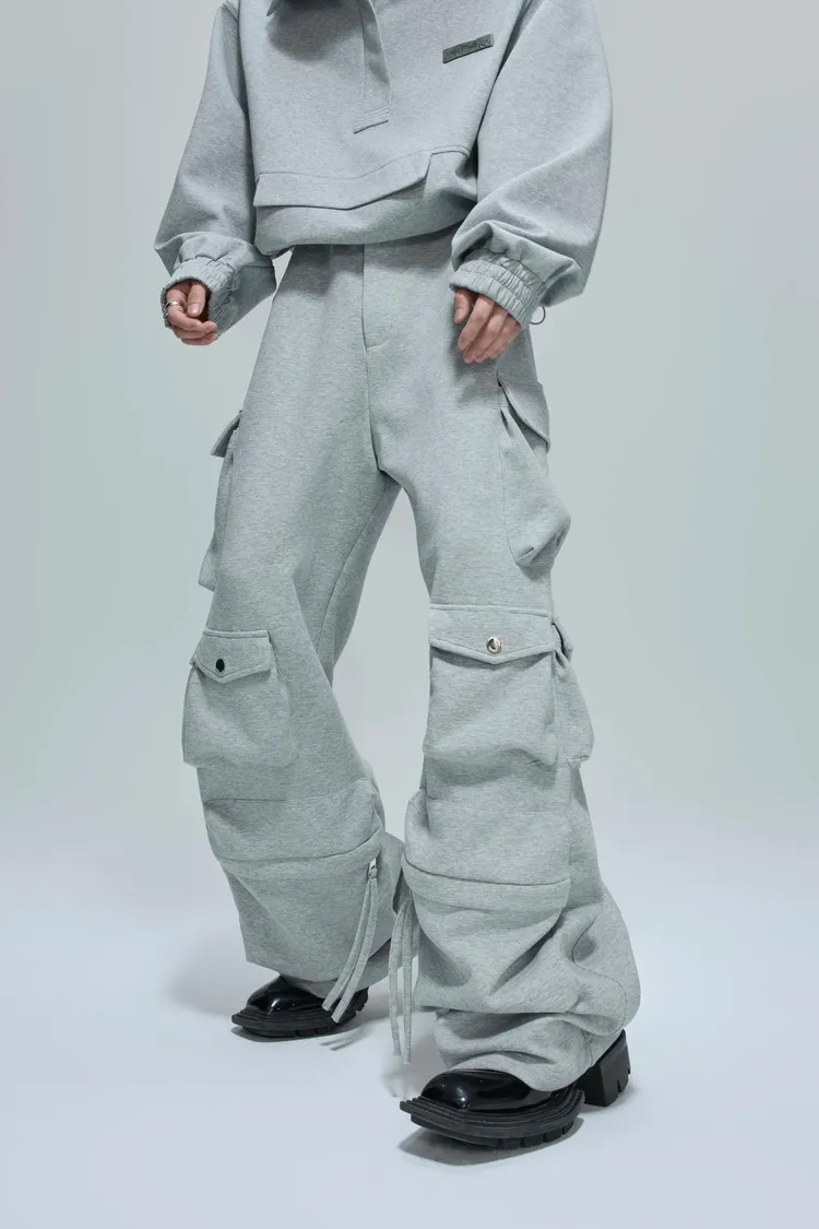ARGUE 短版大學踢 口袋棉褲 套裝(黑/灰)