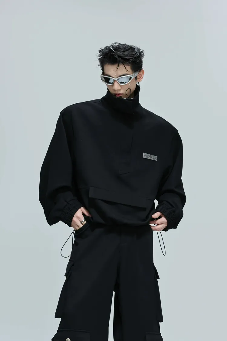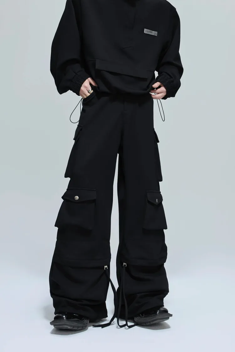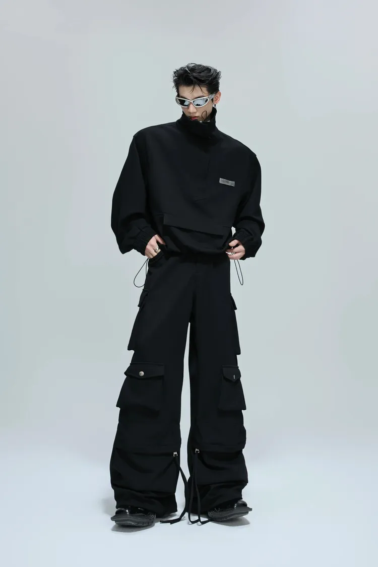 做舊水洗 雙層拼接 帽踢 Taped 棉褲 套裝(水洗黑)