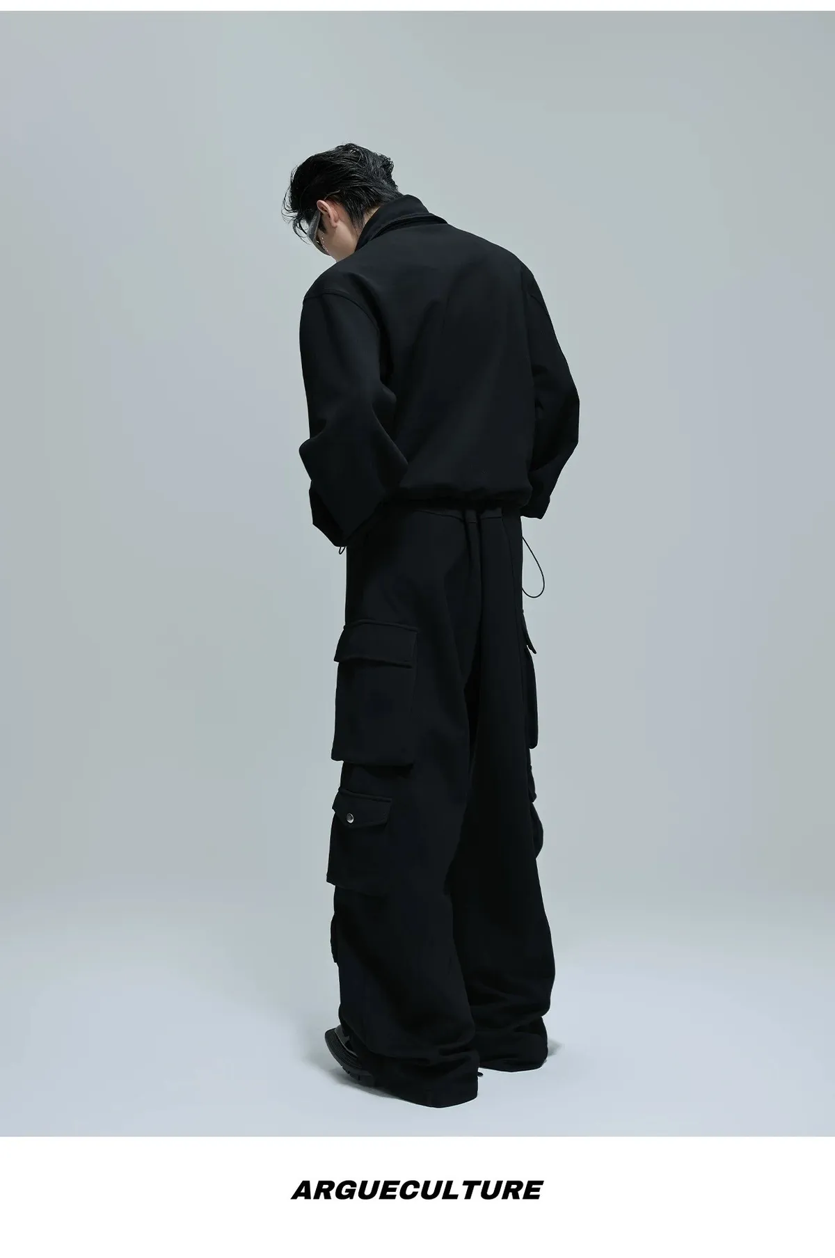 ARGUE 復古水洗 哈靈頓 水洗寬短 外套 解構 長褲 套裝(卡其/黑)