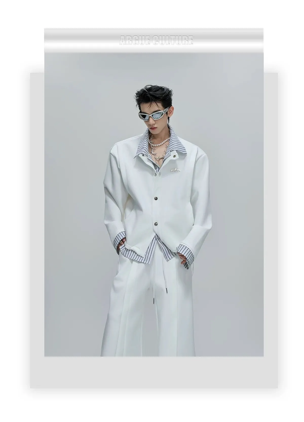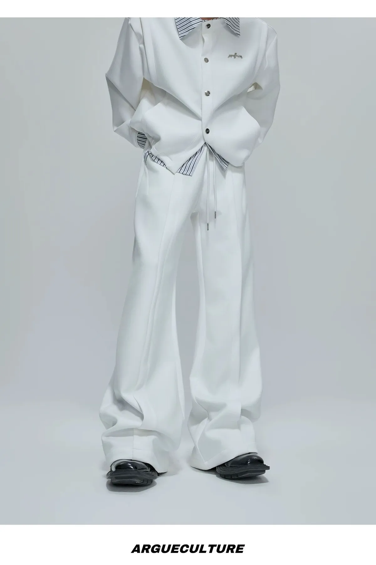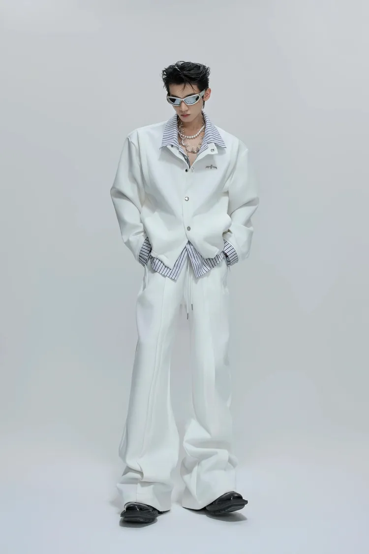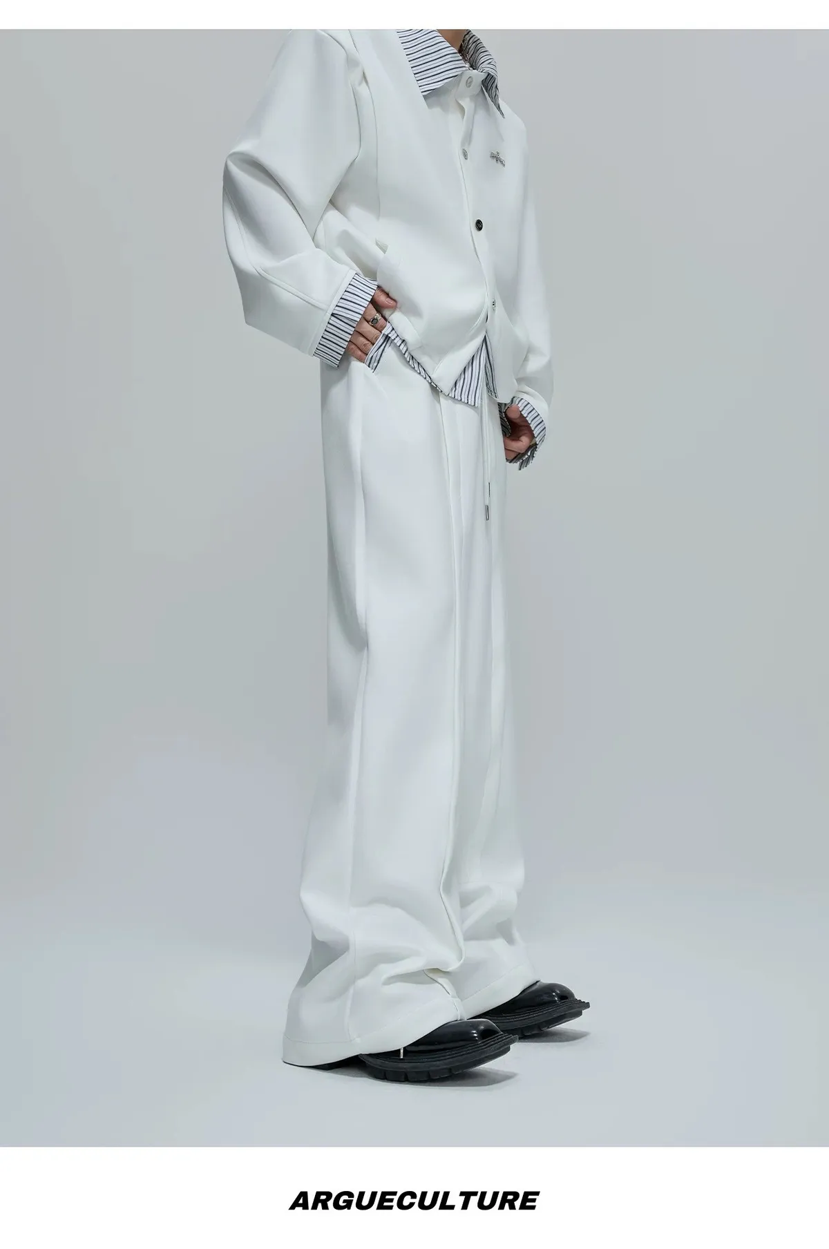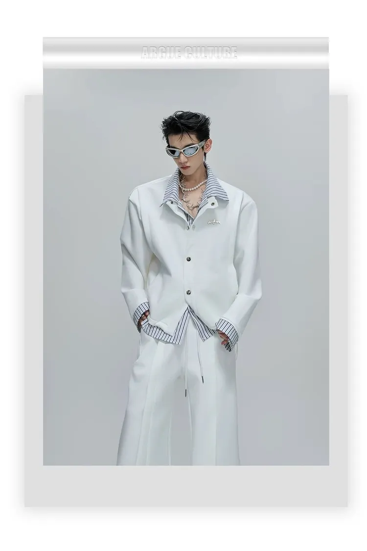 ARGUE 襯衫拼接 假兩件 西裝褲 套裝(白/卡其)