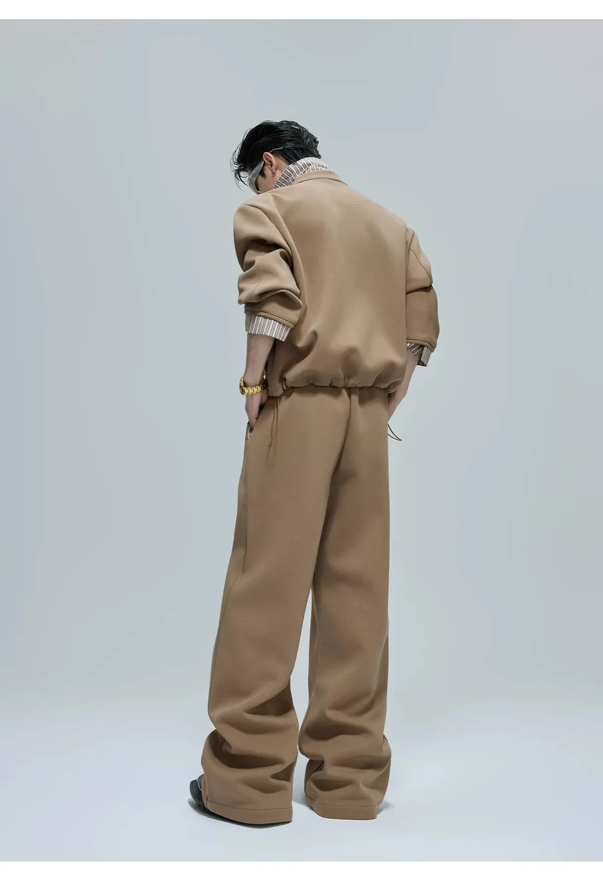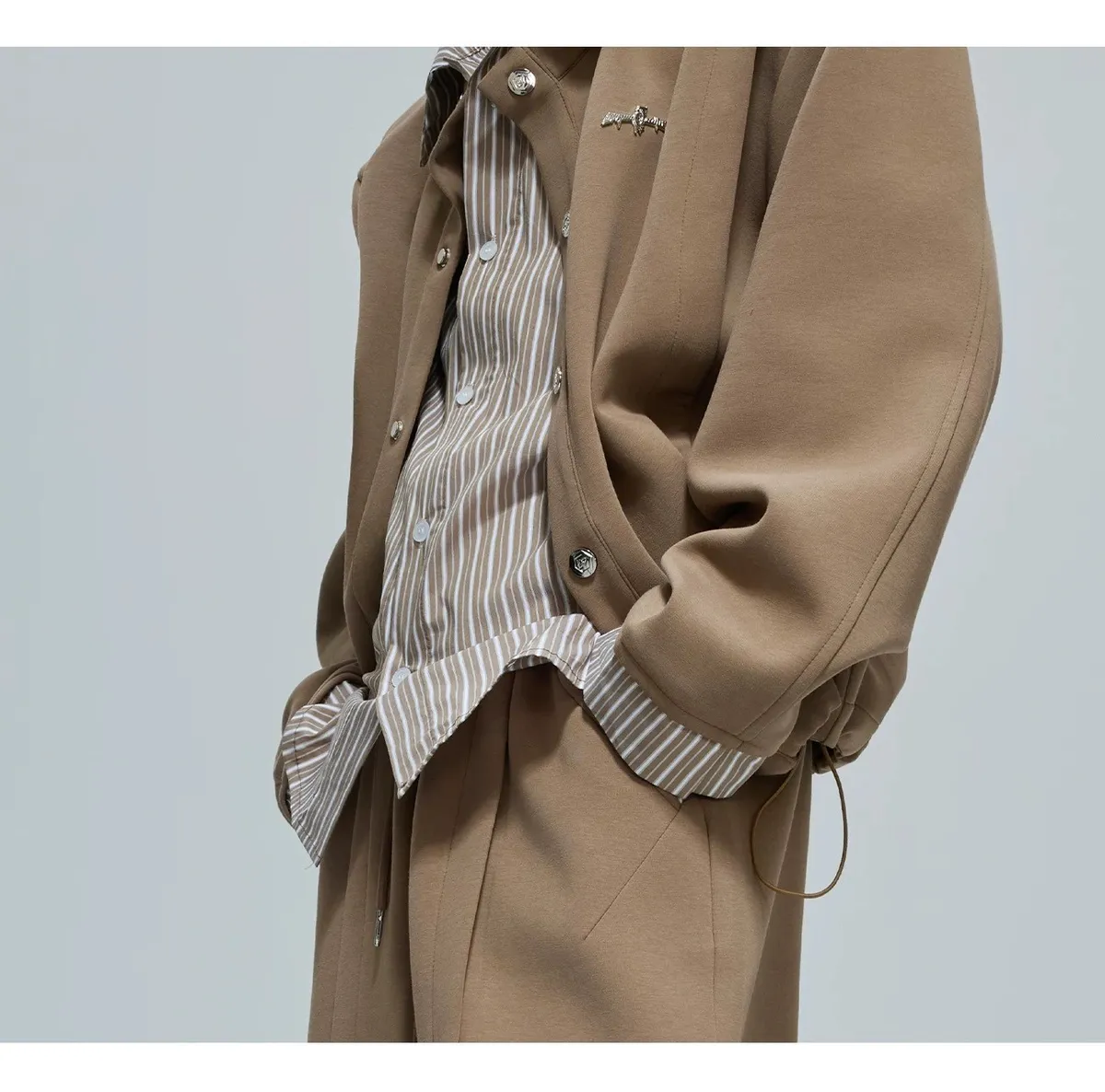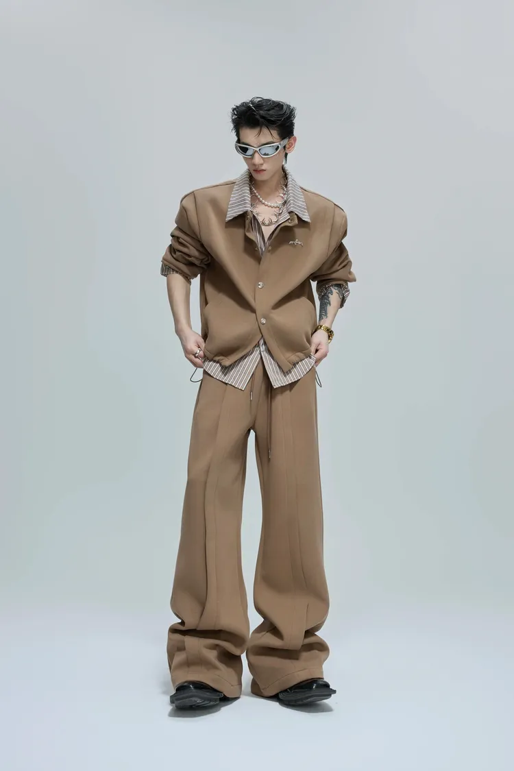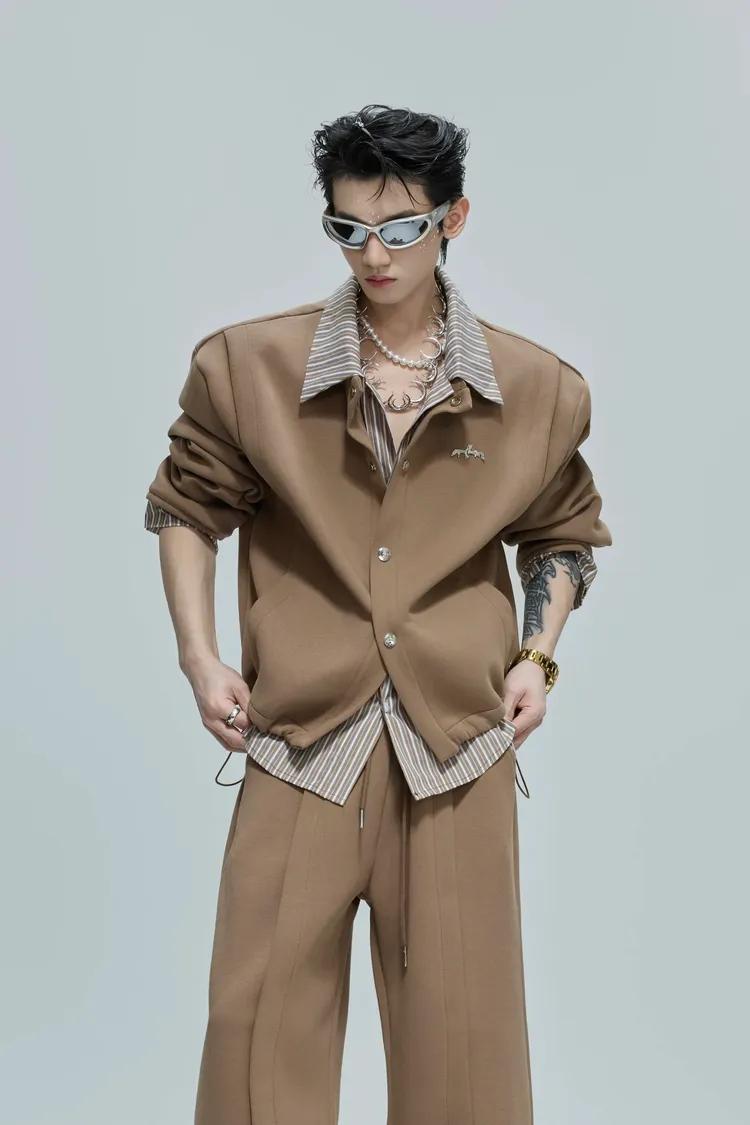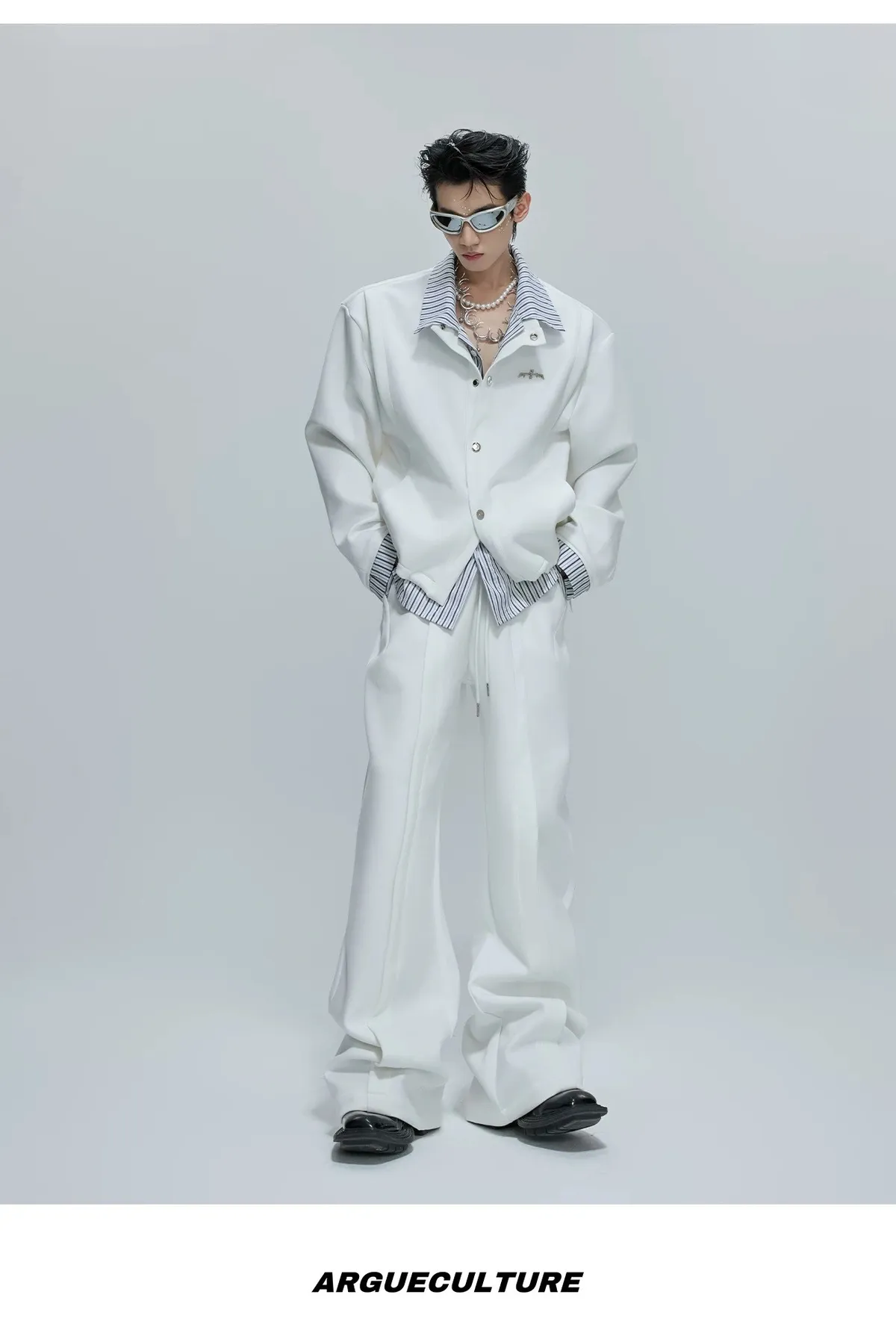 ARGUE 襯衫拼接 假兩件 西裝褲 套裝(白/卡其)