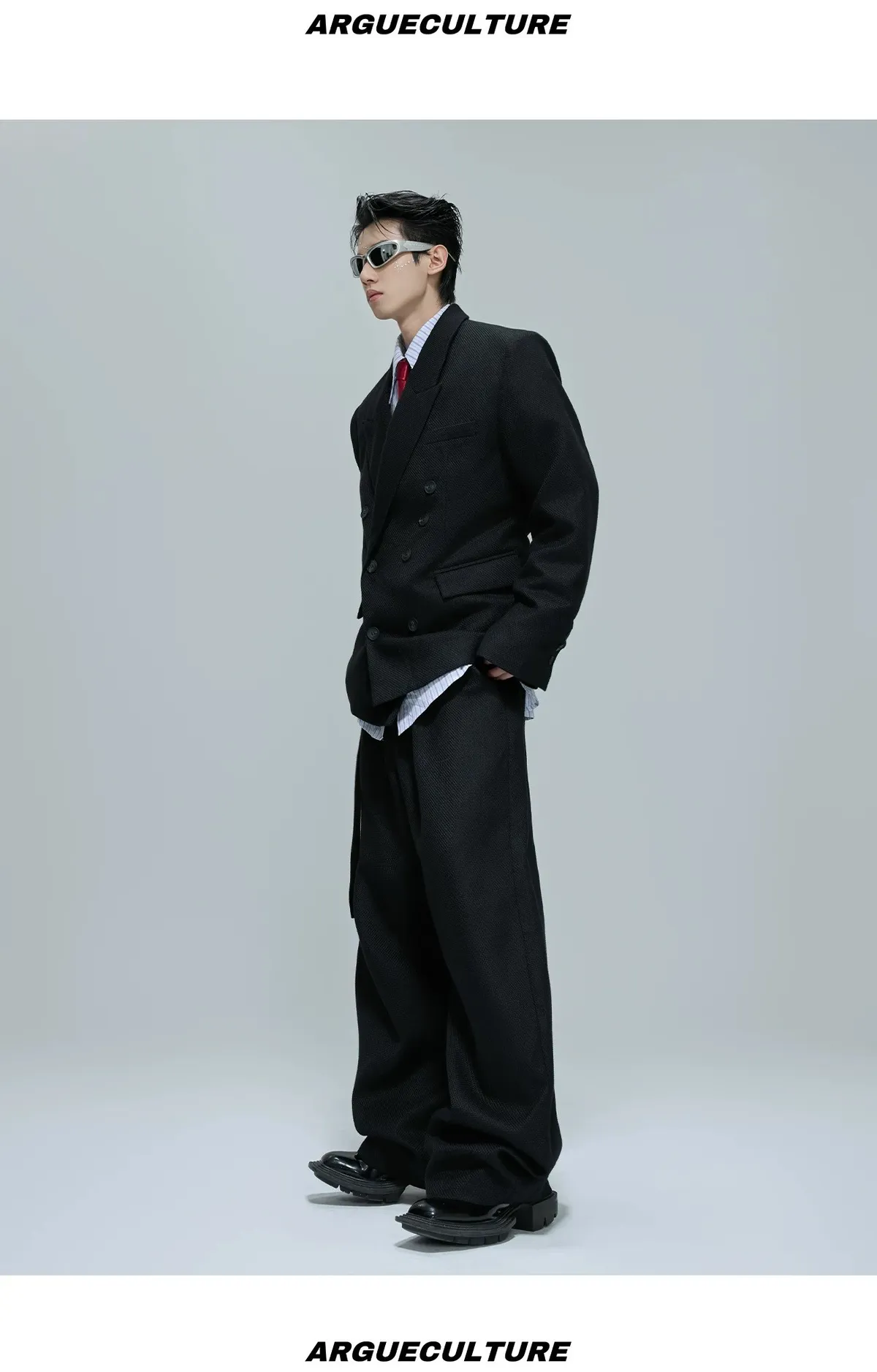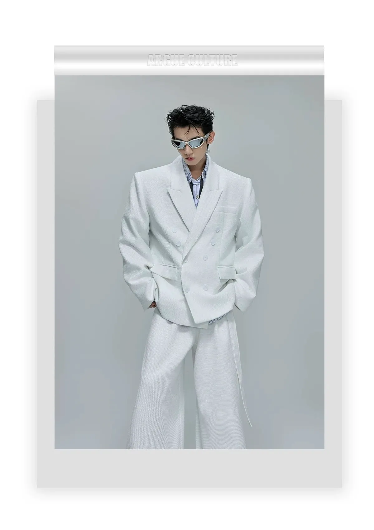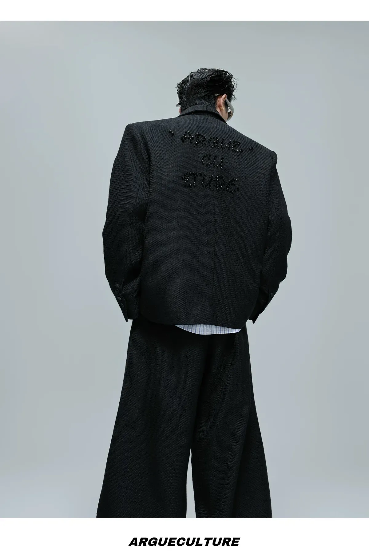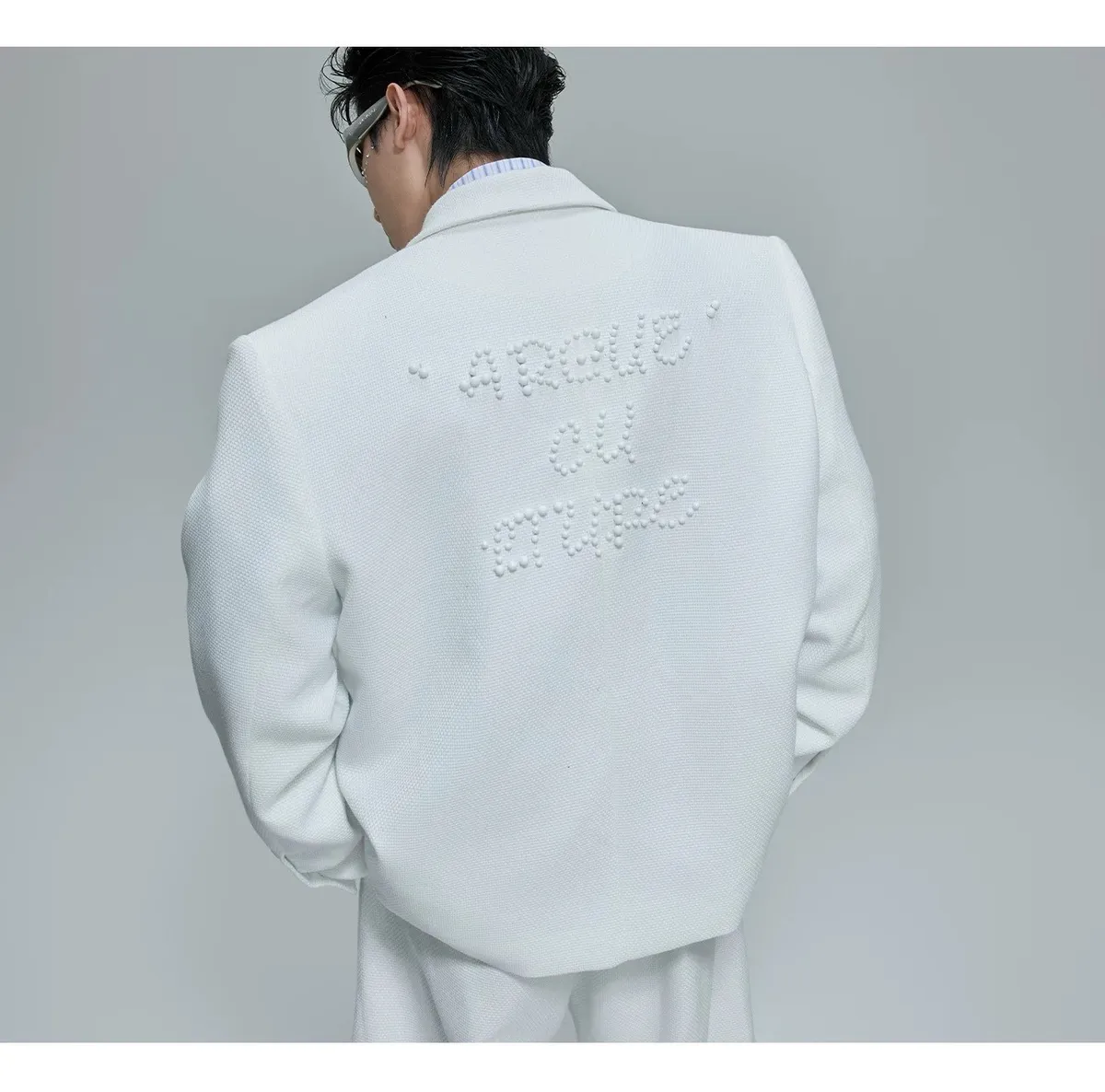 ARGUE 華夫格 珍珠點綴 收腰 西裝外套 西裝褲 套裝(黑/白)