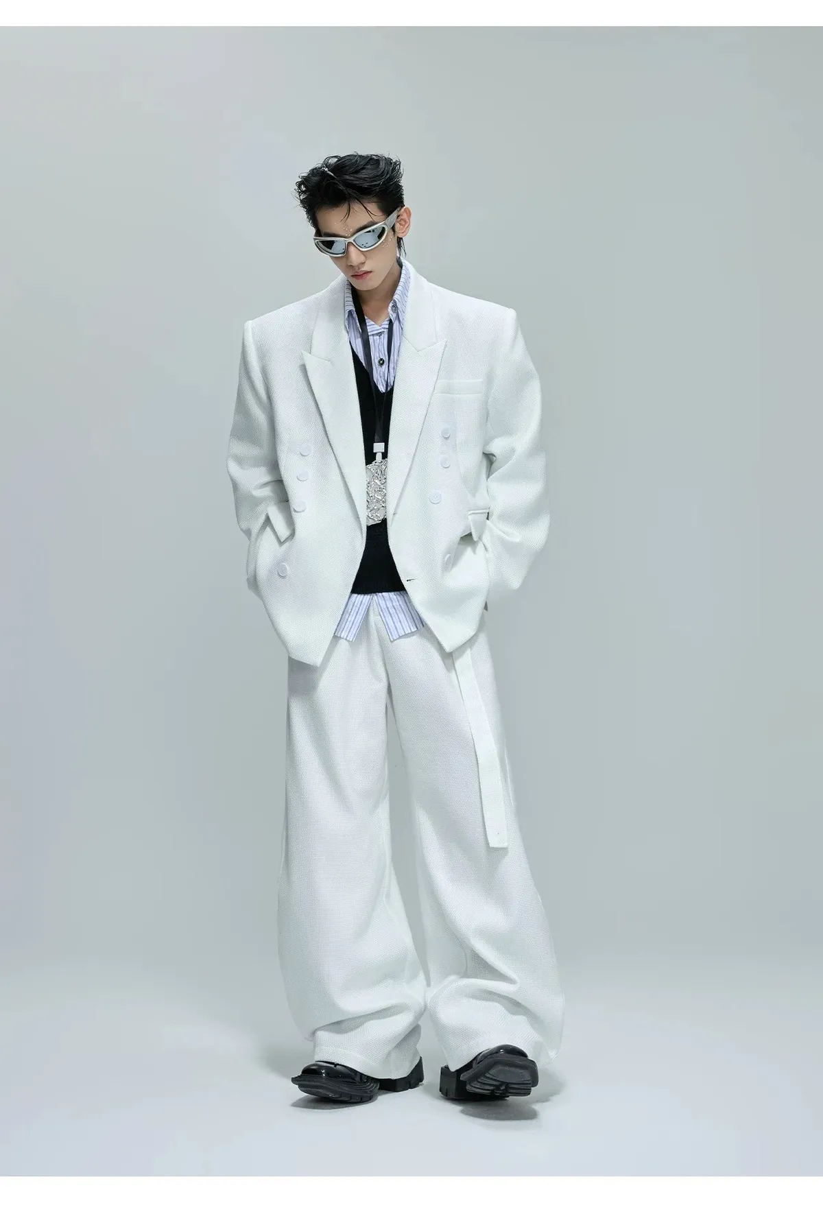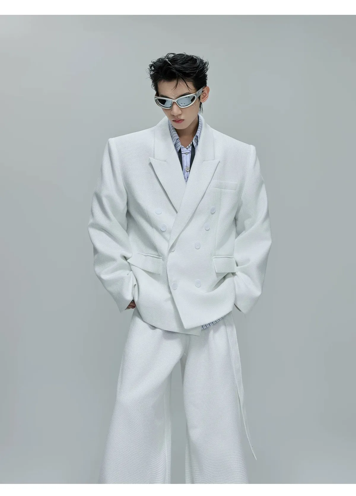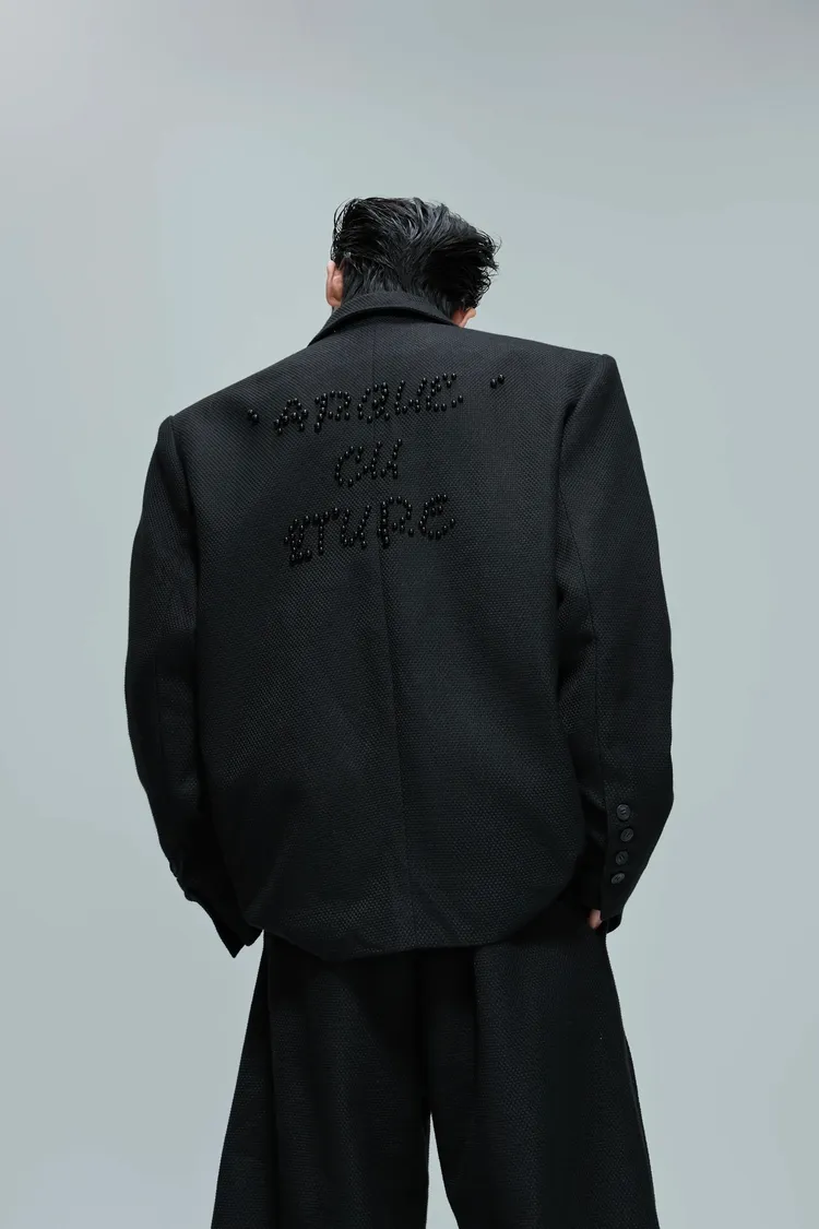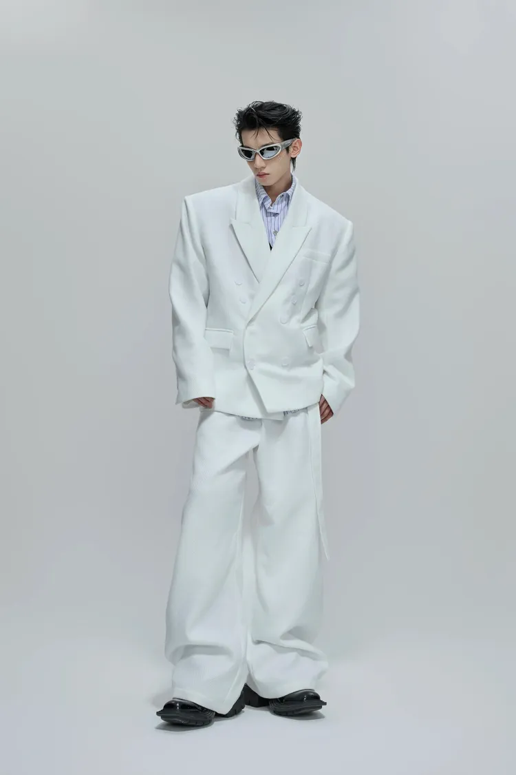ARGUE 華夫格 珍珠點綴 收腰 西裝外套 西裝褲 套裝(黑/白)
