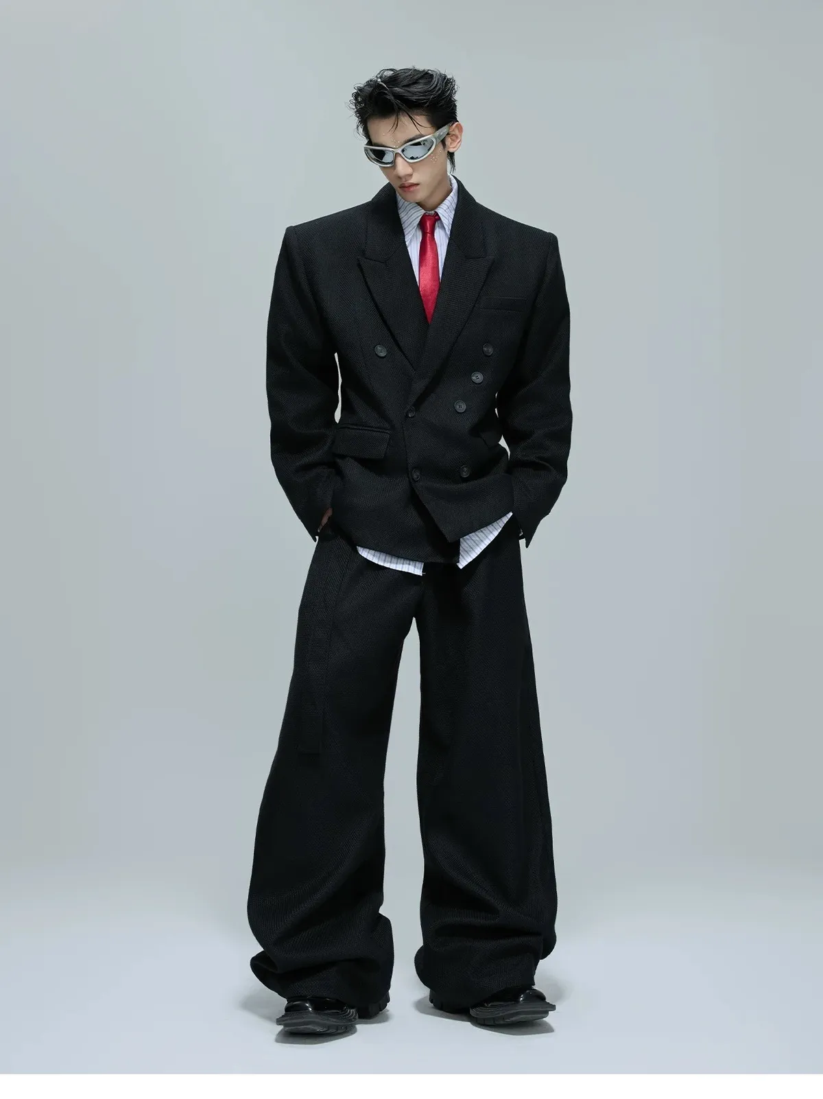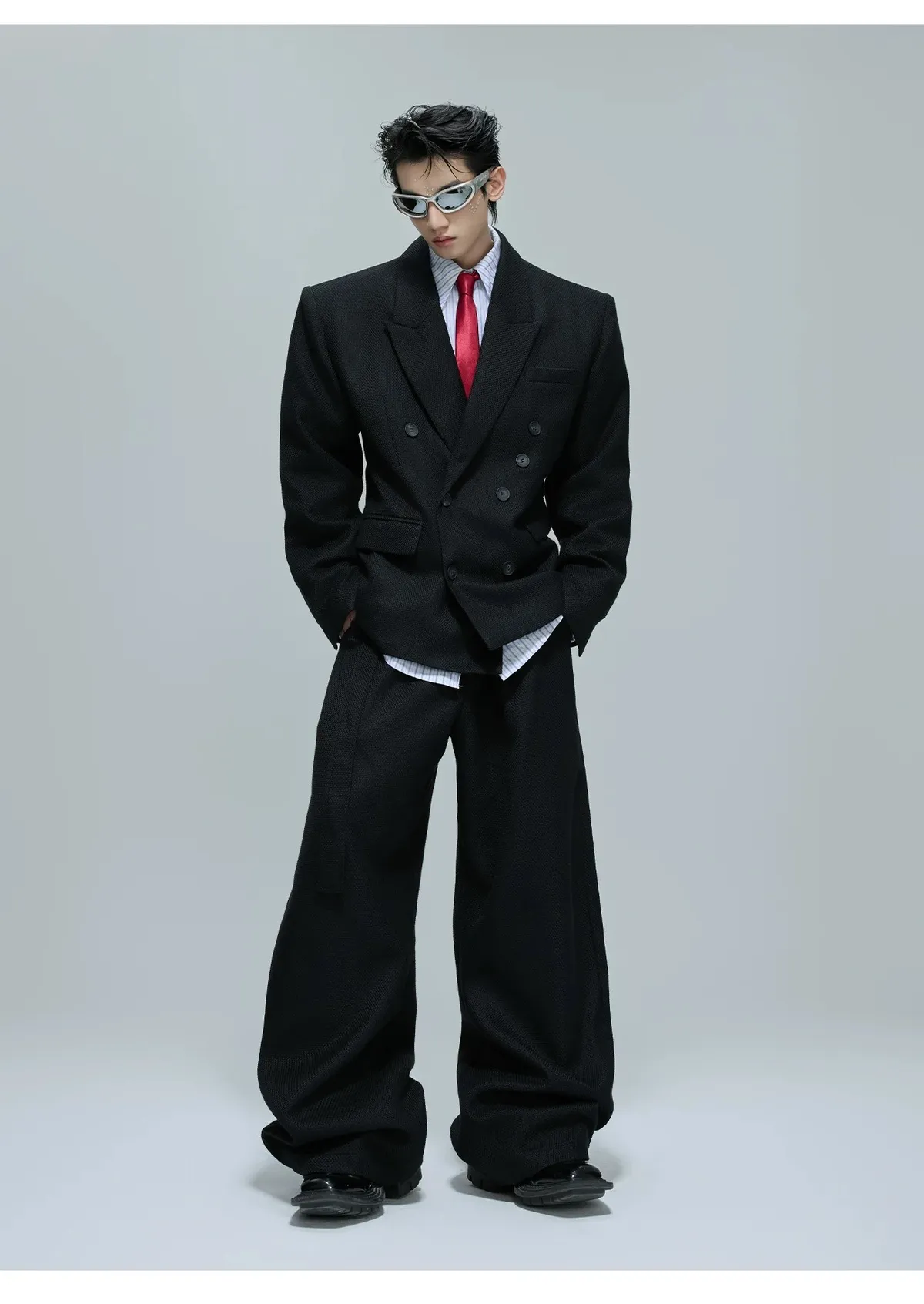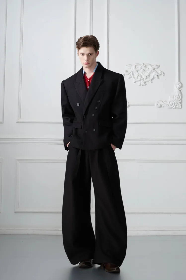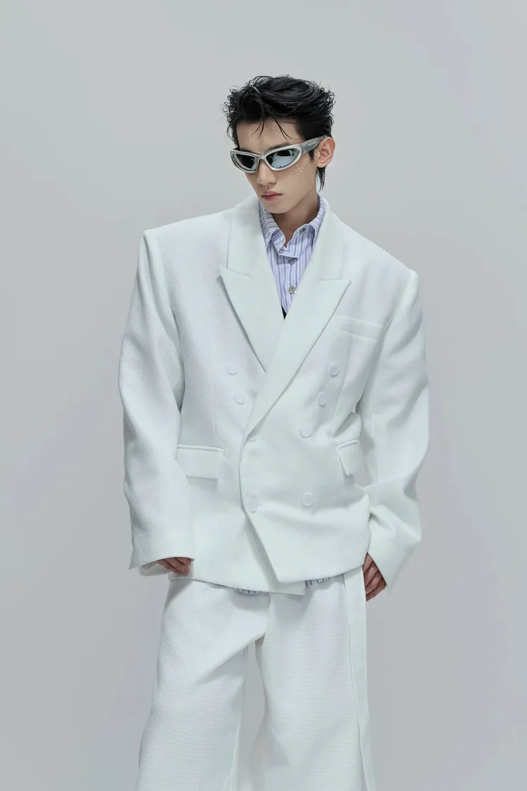 ARGUE 華夫格 珍珠點綴 收腰 西裝外套 西裝褲 套裝(黑/白)